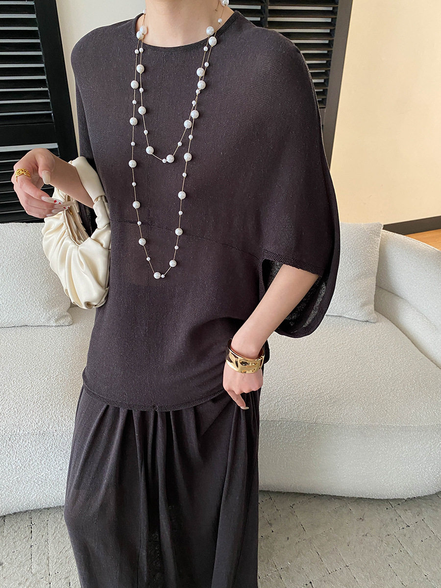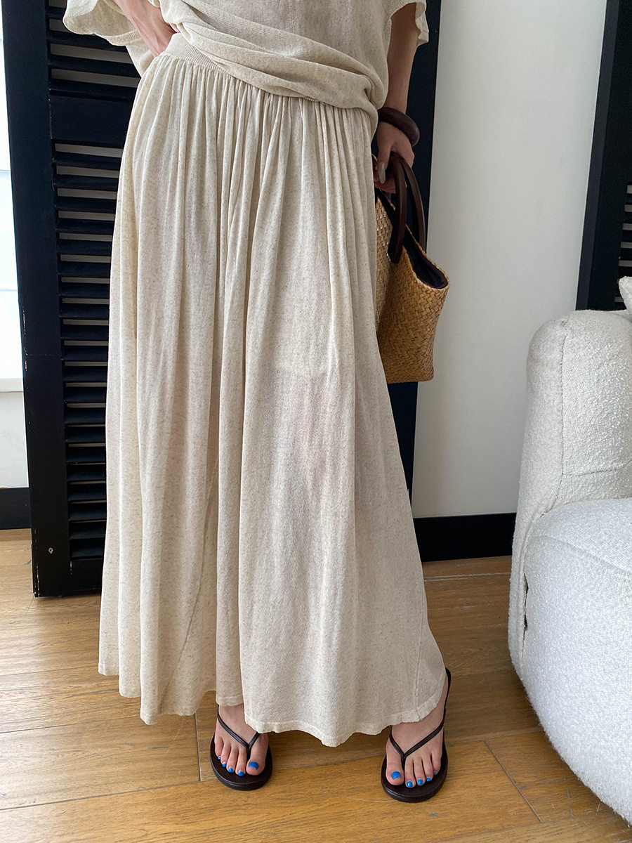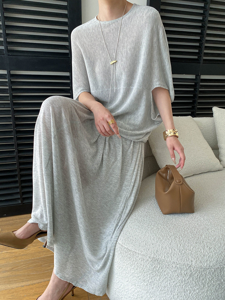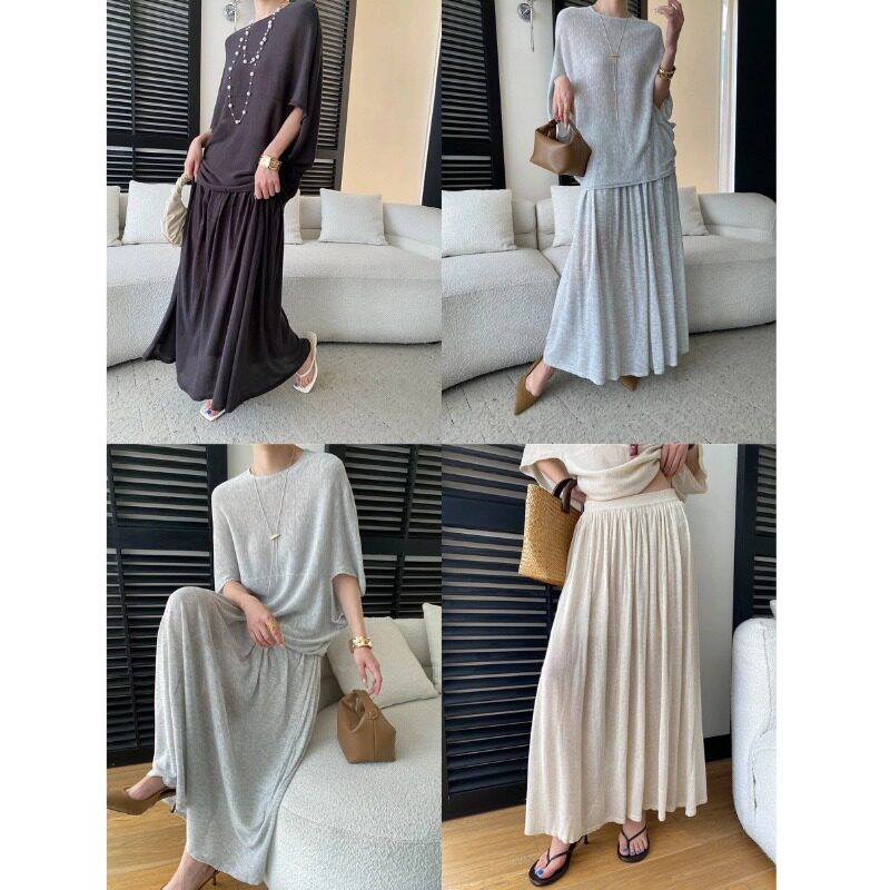【セットアップ】ルーズでリラックス感 ドルマンスリーブ ニットトップス + ウエストゴム ハイウエストスカート 2点上下セット【JZシリーズ】