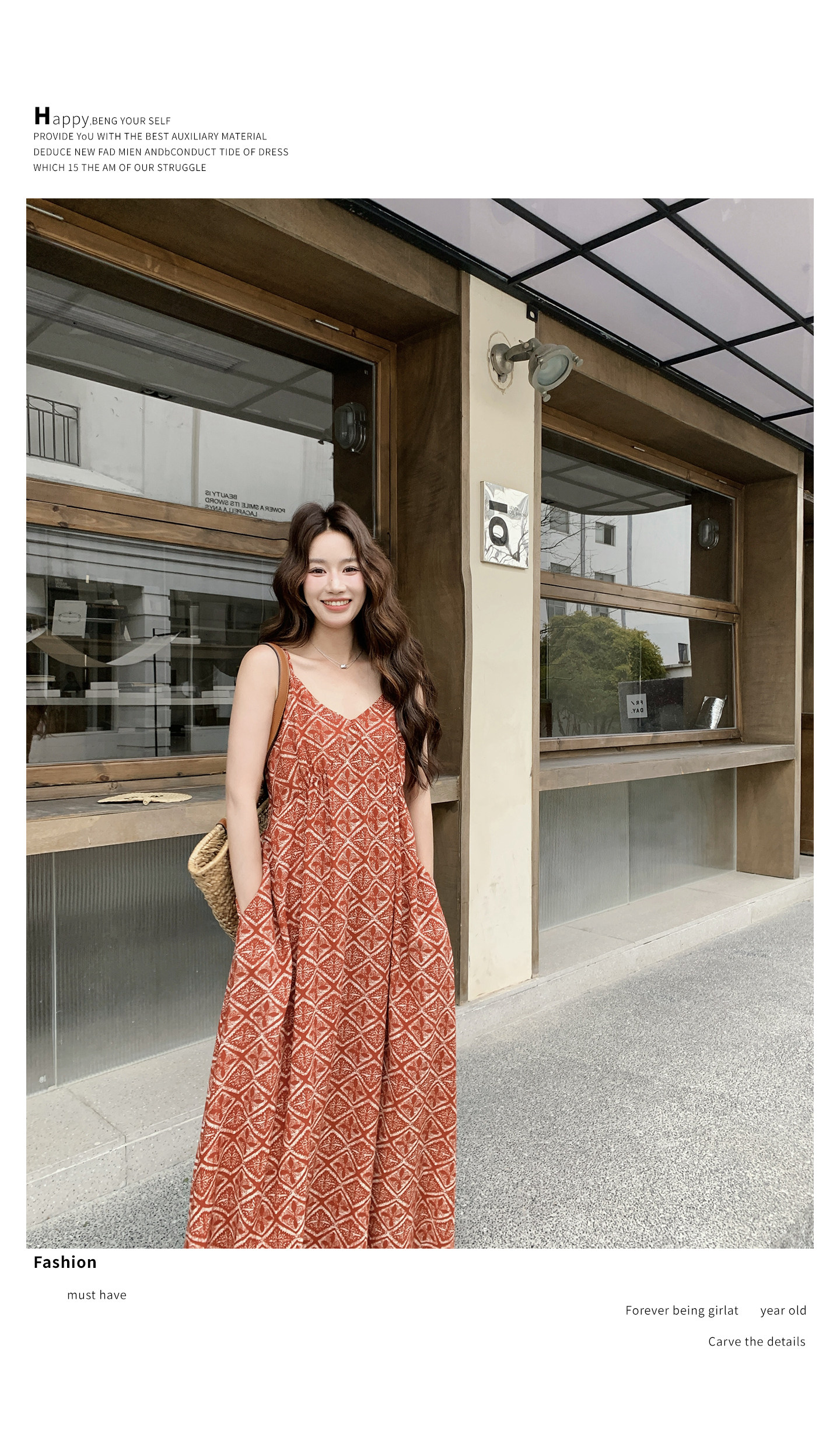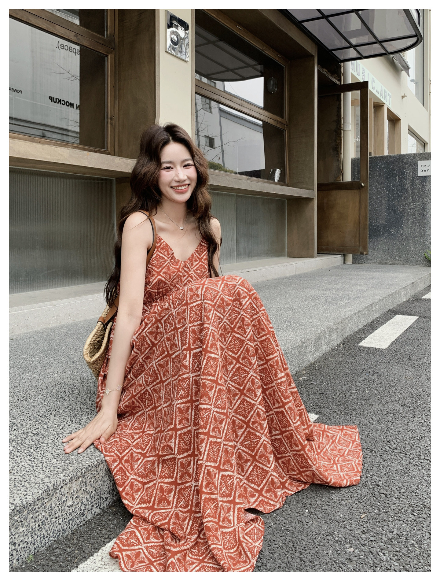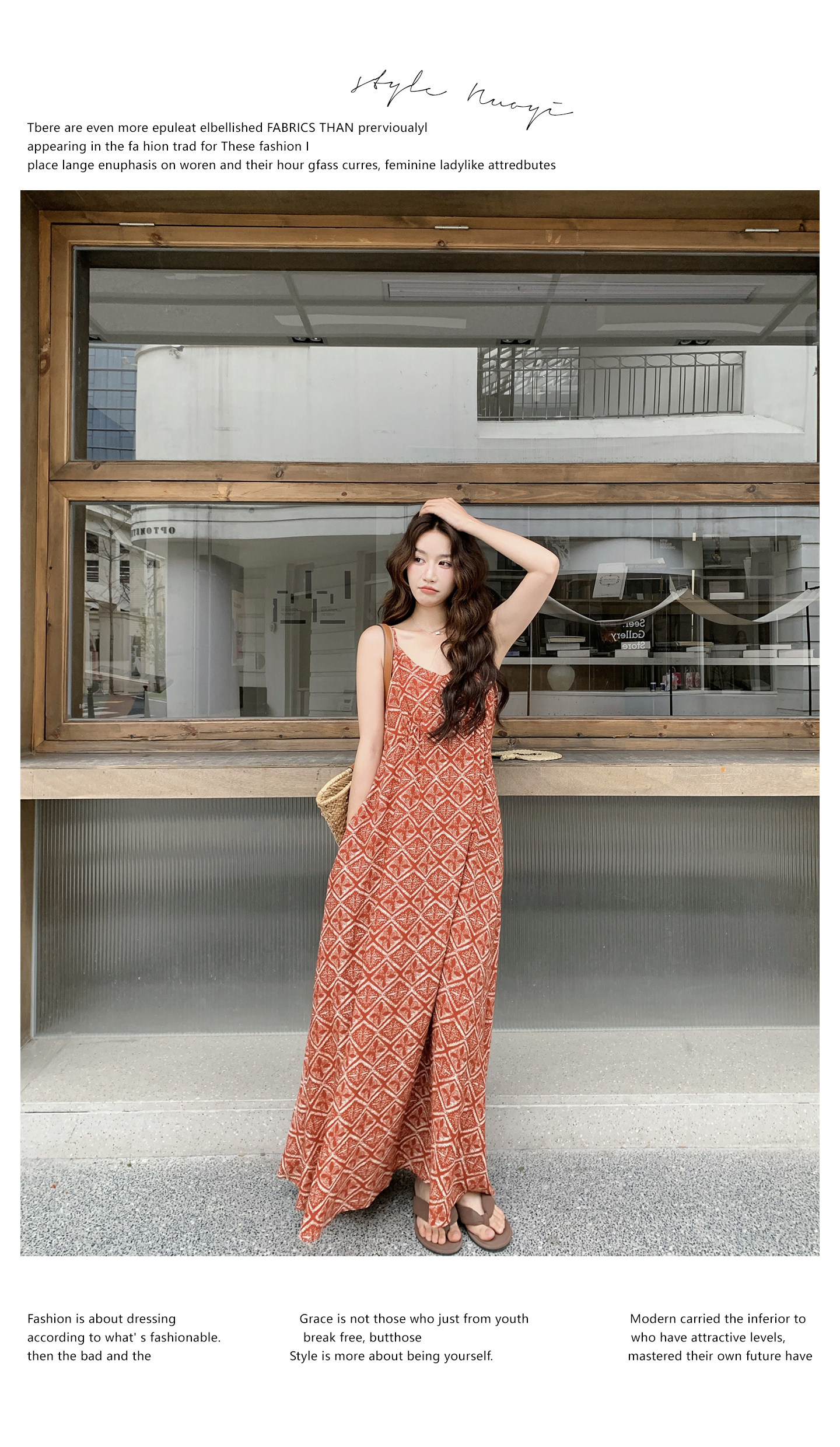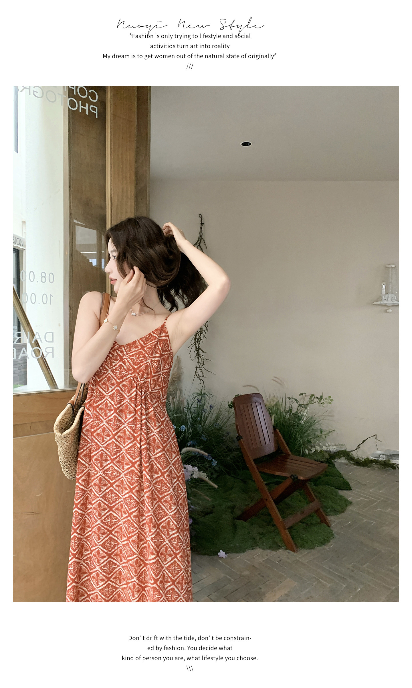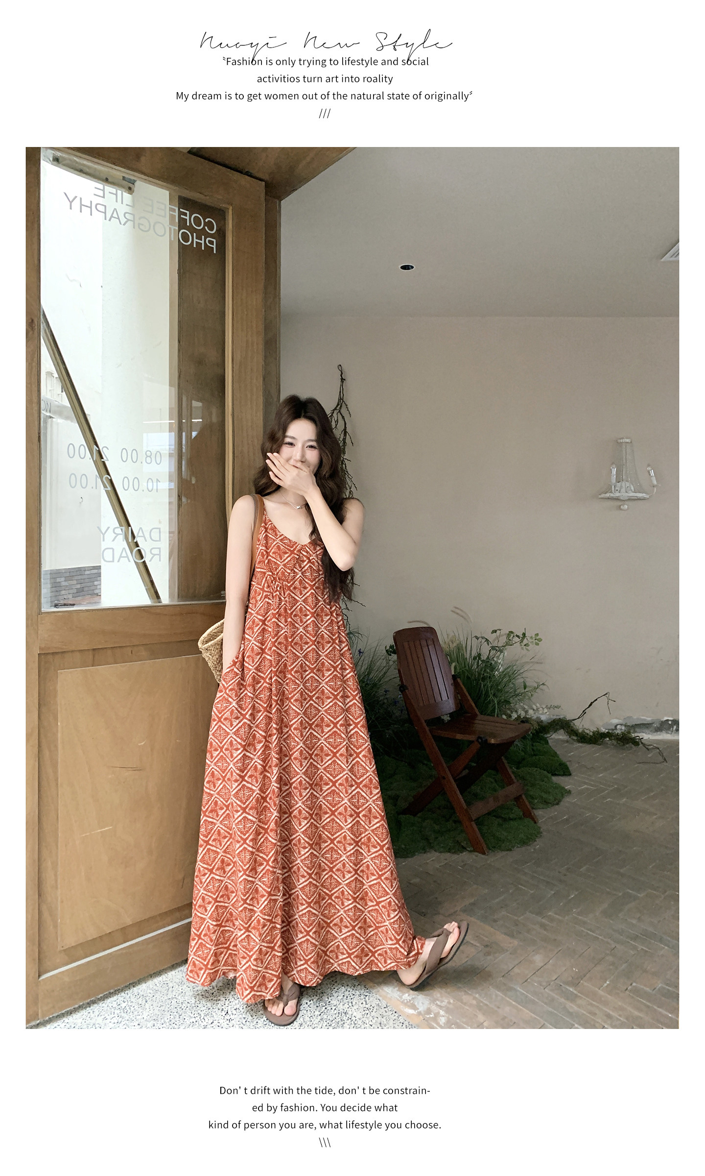 【商品名】【ワンピース】夏新作 レッド 幾何柄 キャミワンピース ボヘミアン風 海辺 旅行 リゾート 着痩せ リラックス ロング丈【SHシリーズ】