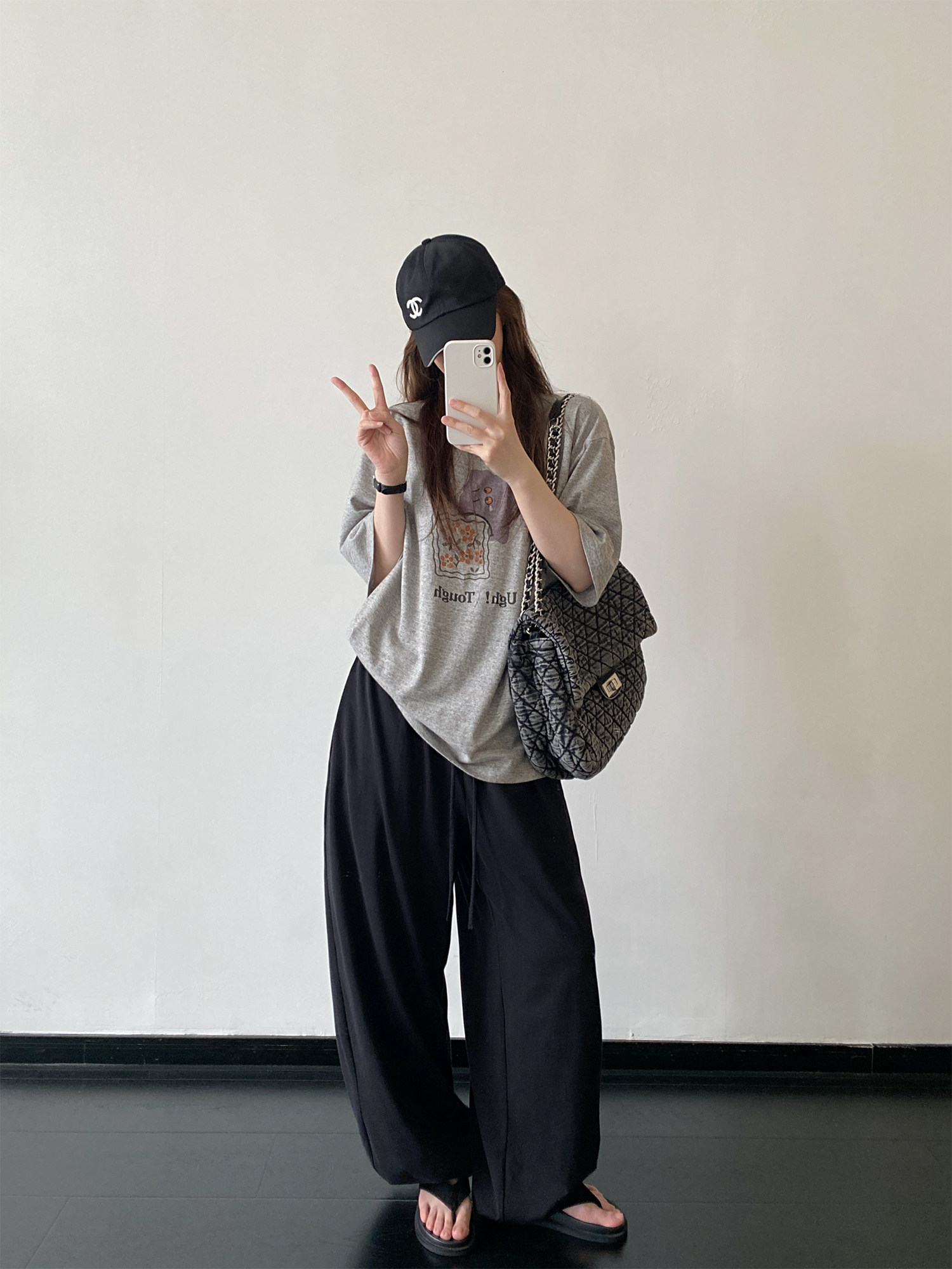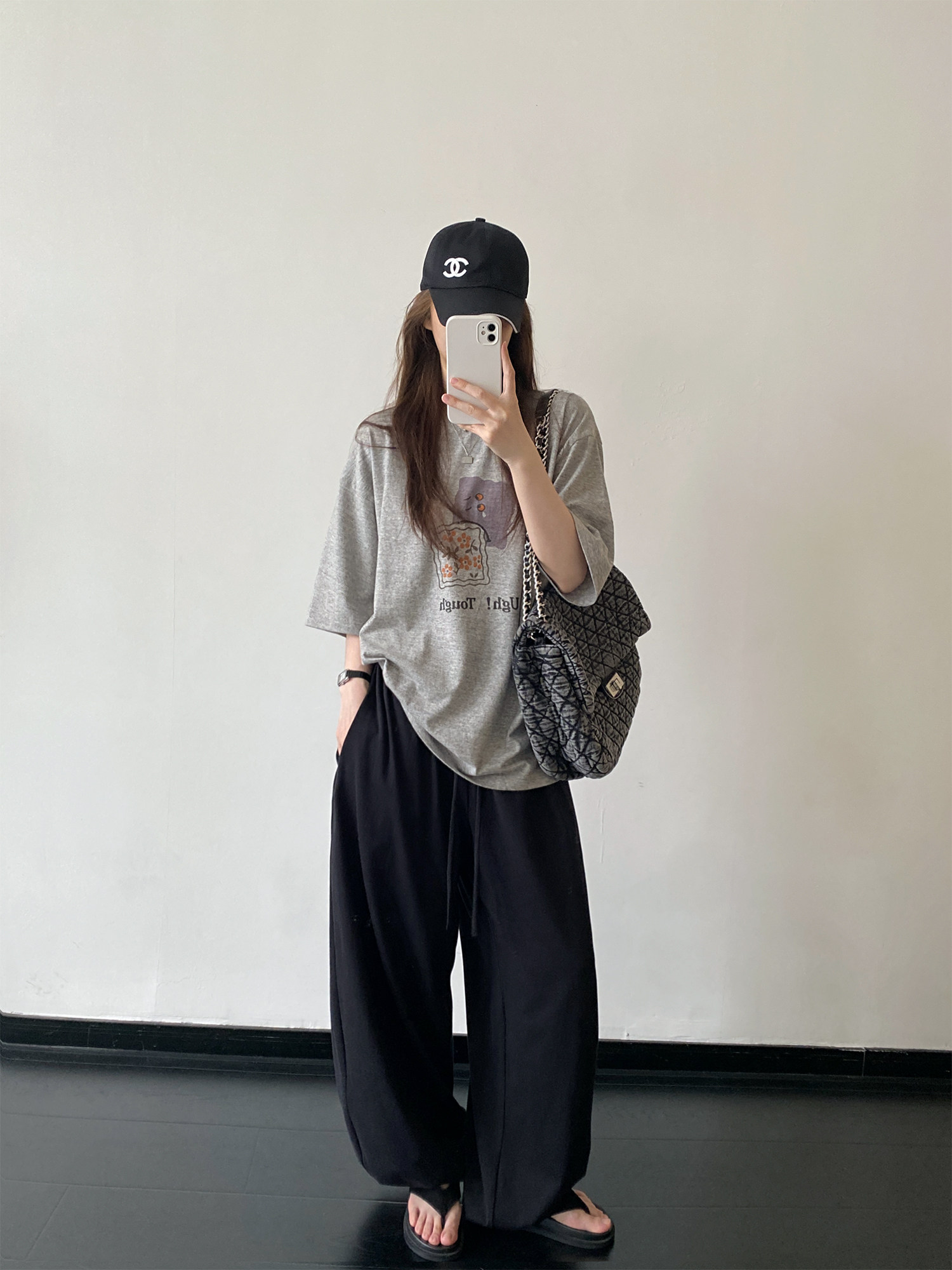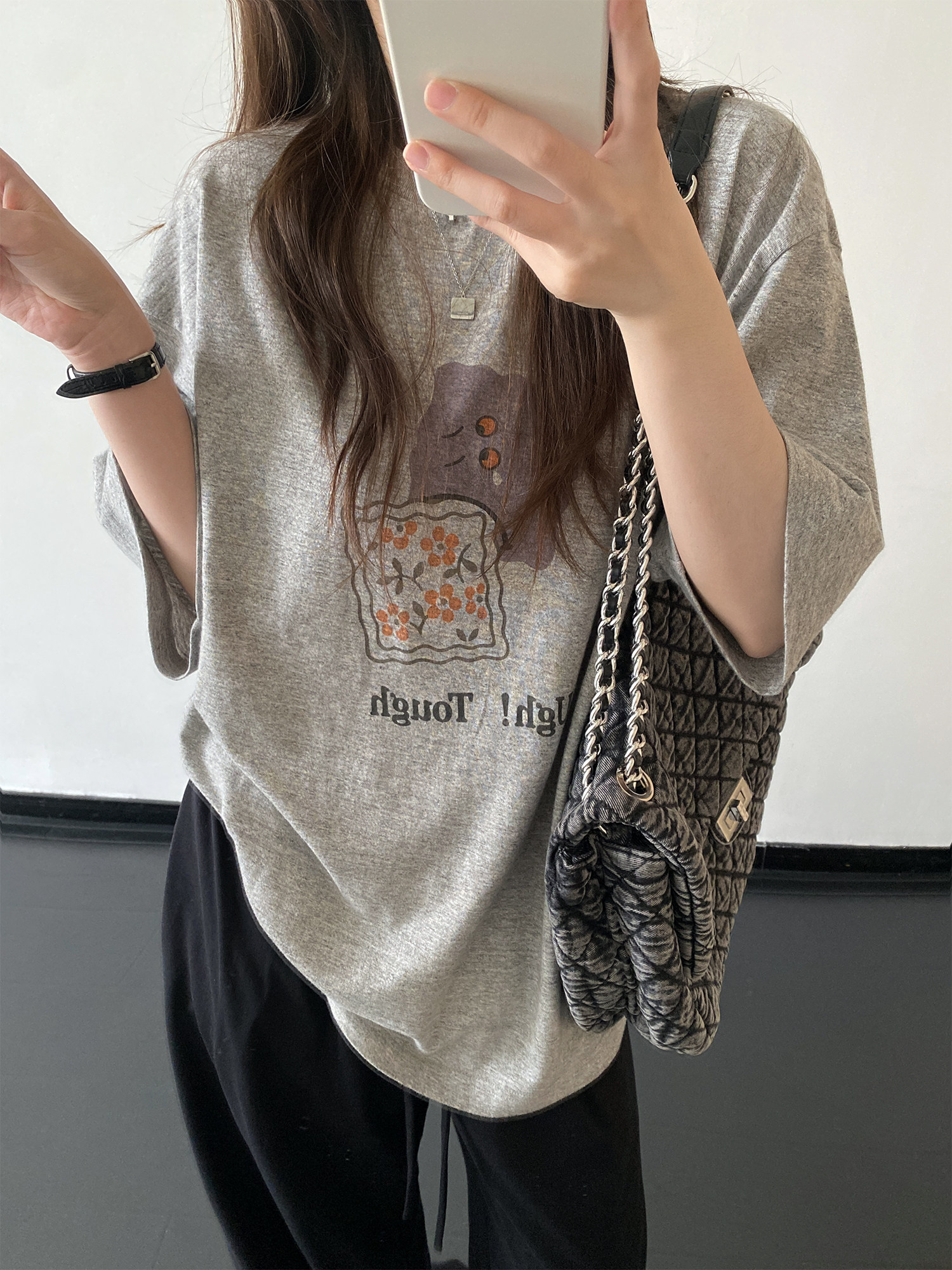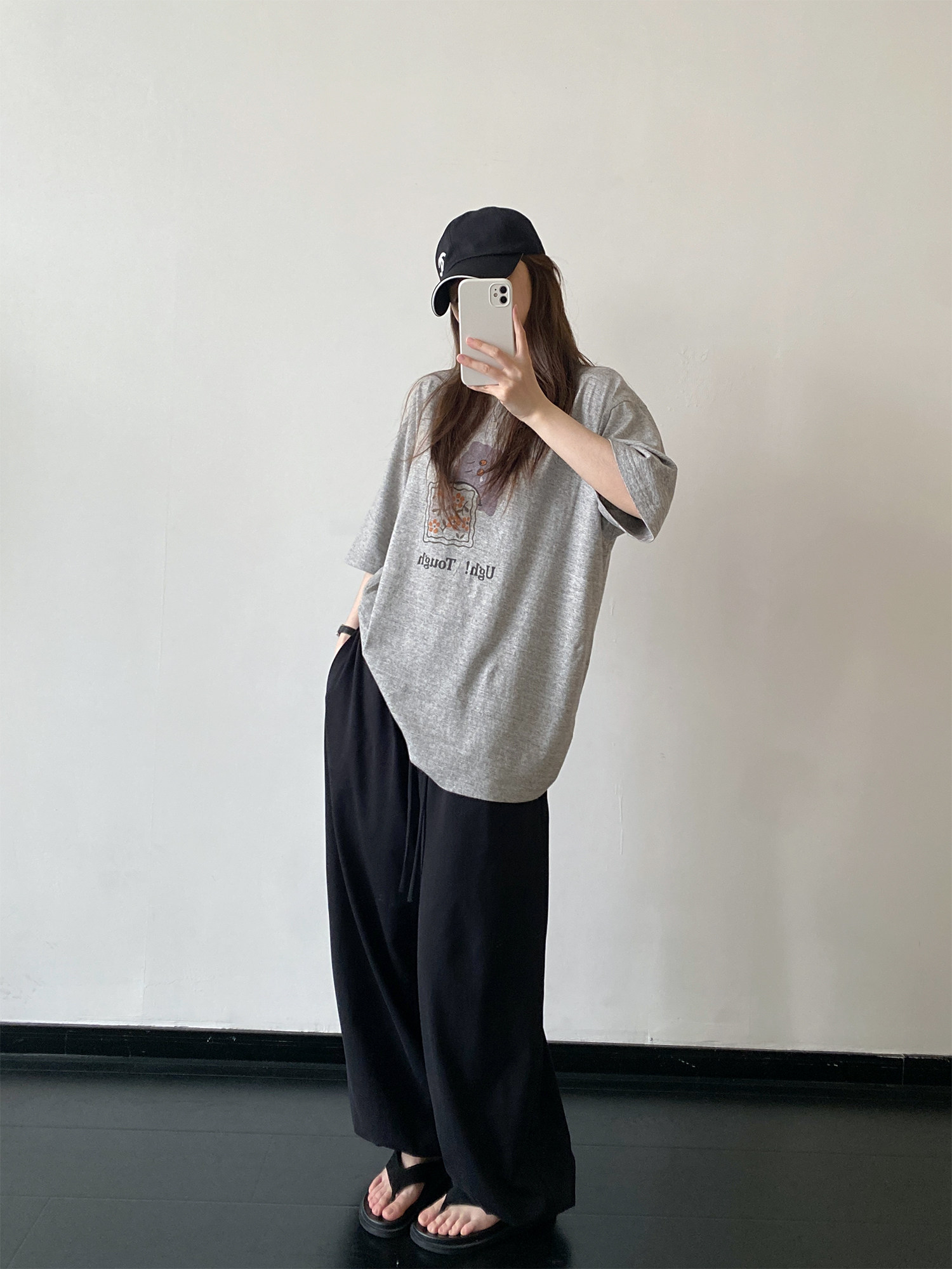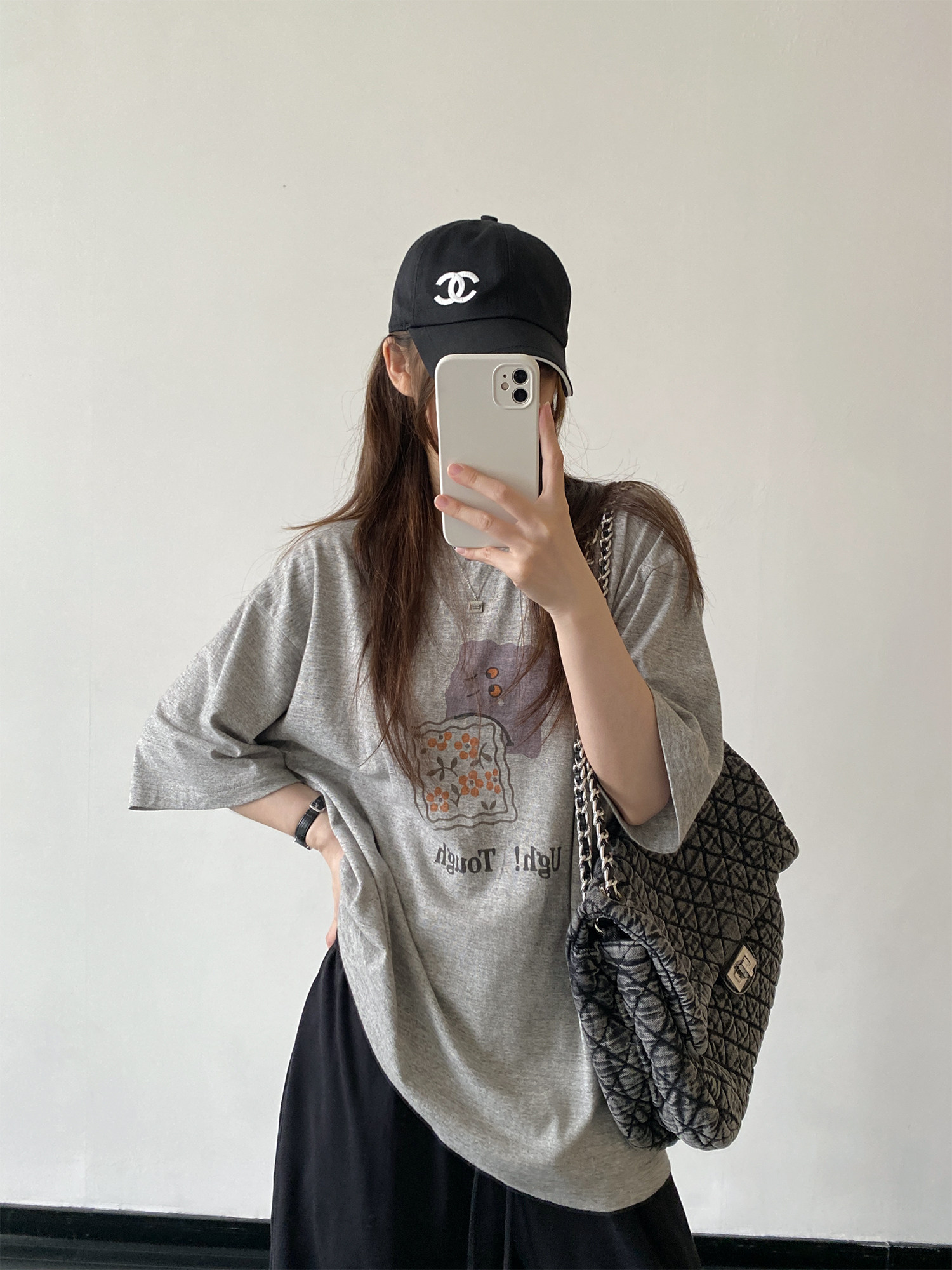 【トップス】ロゴプリント 半袖Tシャツ ドロップショルダー ゆったりシルエット シンプル カジュアル トップス 夏新作 【FCシリーズ】