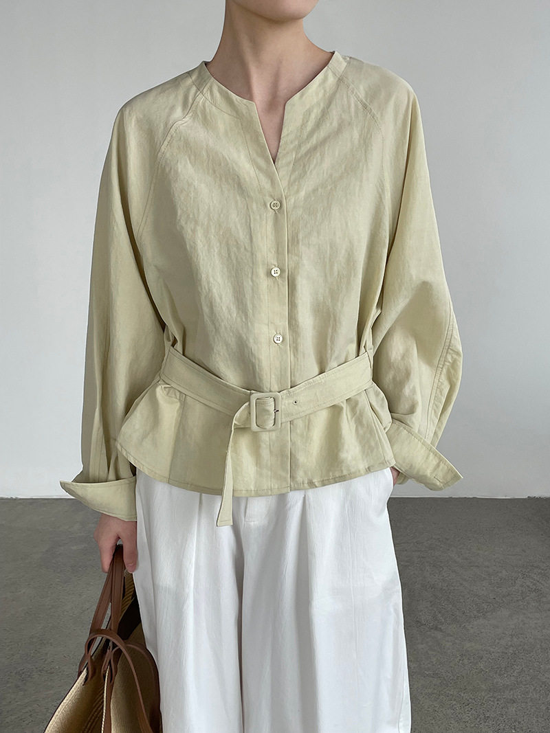 【トップス】ウエストシェイプ Vネック 通勤スタイル リボン付き シャツ 【JZシリーズ】