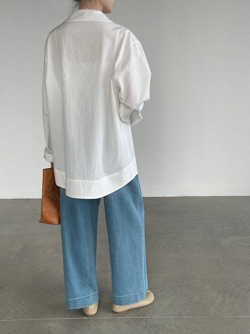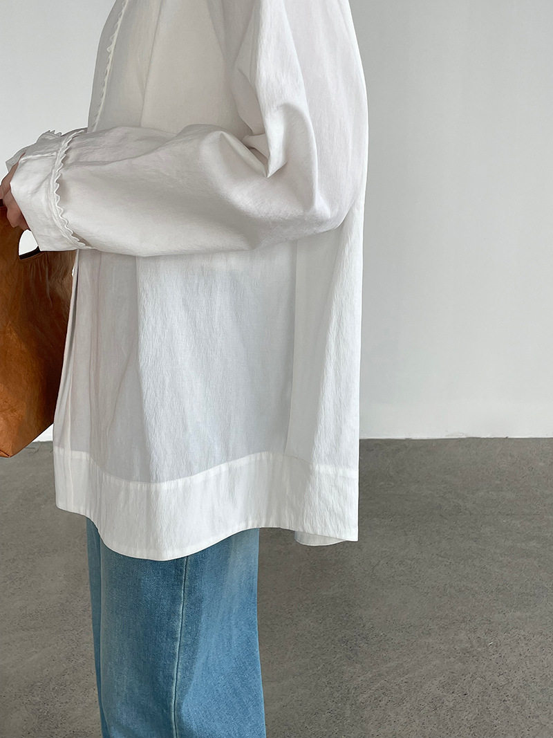 【トップス】レディース シャツ フリルデザイン 長袖 ゆったり 体型カバー 上品 高級感 カジュアル 春秋 ブラウス【JZシリーズ】
