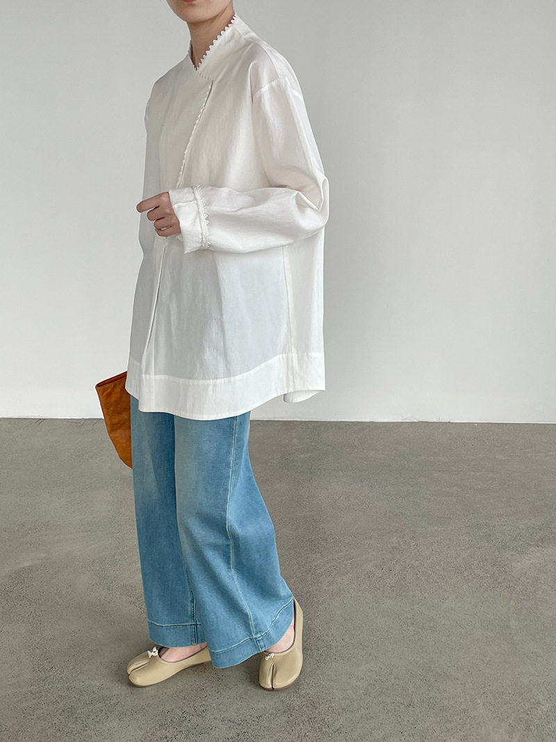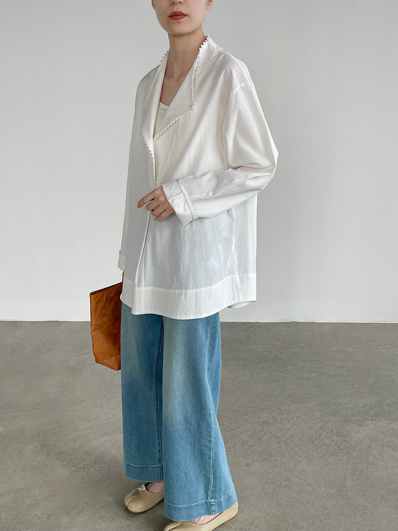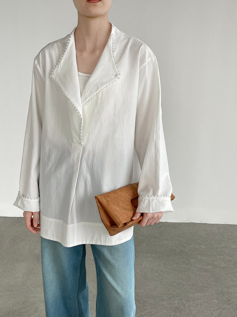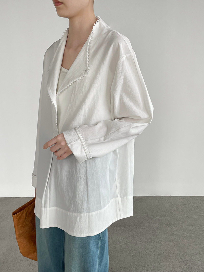【商品名】【トップス】レディース シャツ フリルデザイン 長袖 ゆったり 体型カバー 上品 高級感 カジュアル 春秋 ブラウス【JZシリーズ】