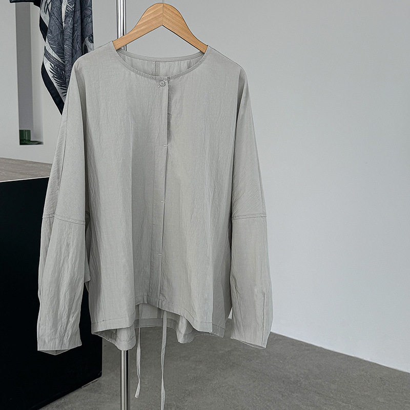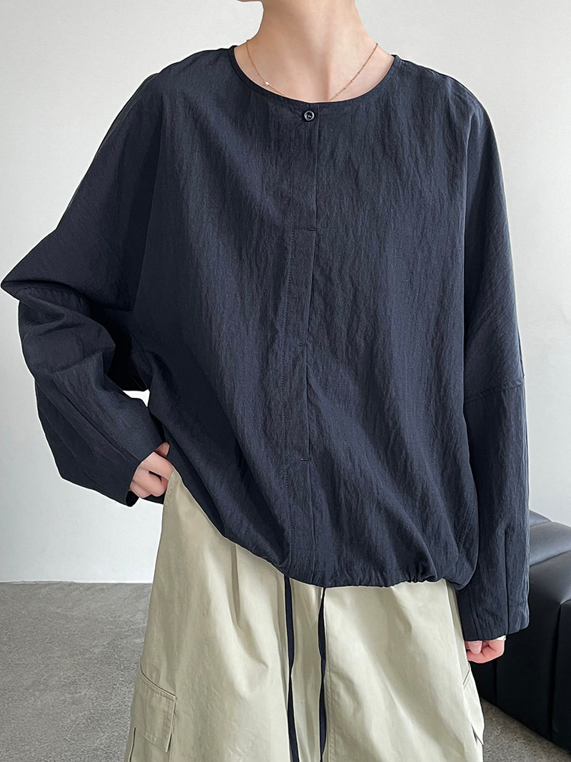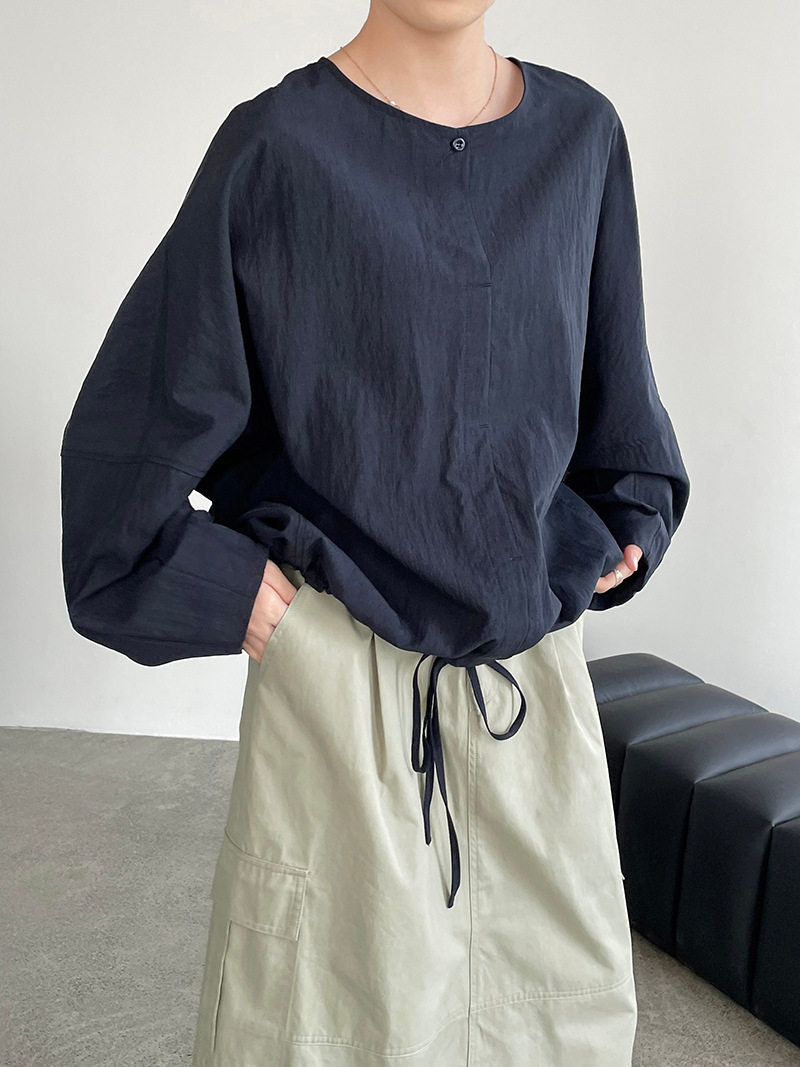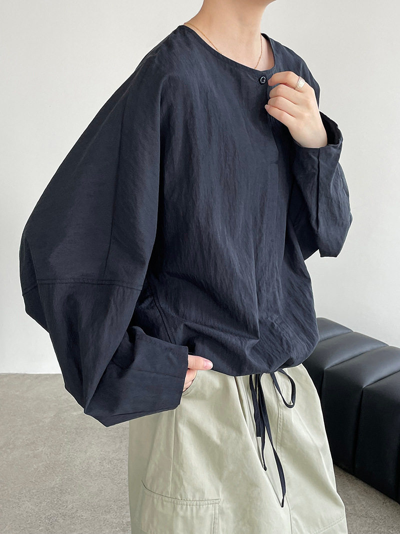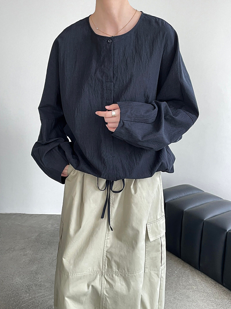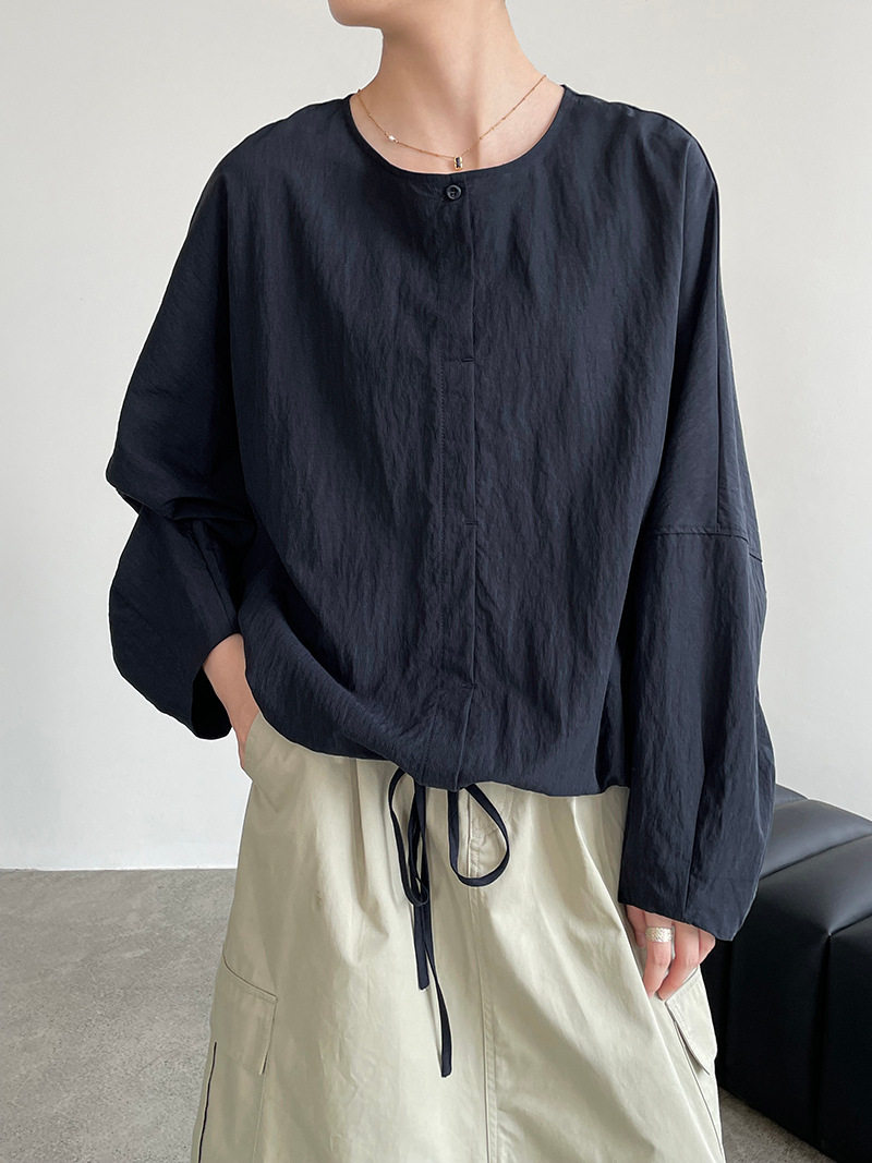 【商品名】【トップス】ドロップショルダー シャツ 新作 ラウンドネック 長袖 ドローストリング ゆったり 体型カバー 上品【JZシリーズ】
