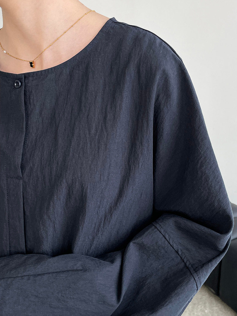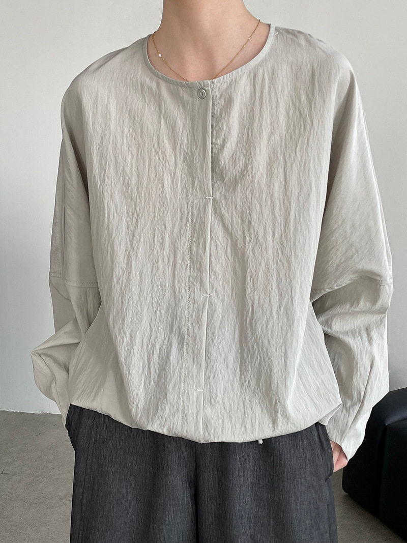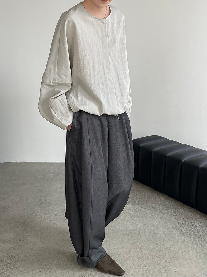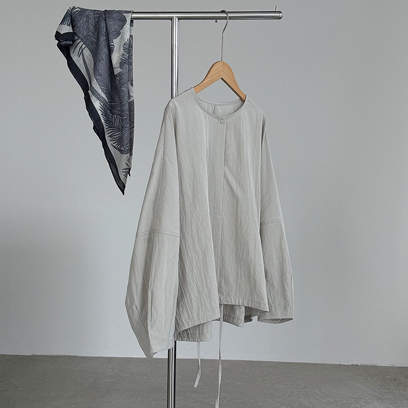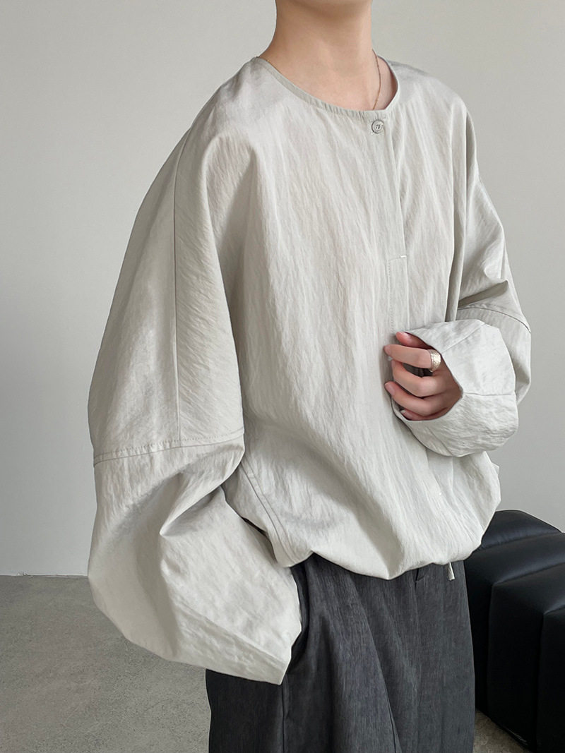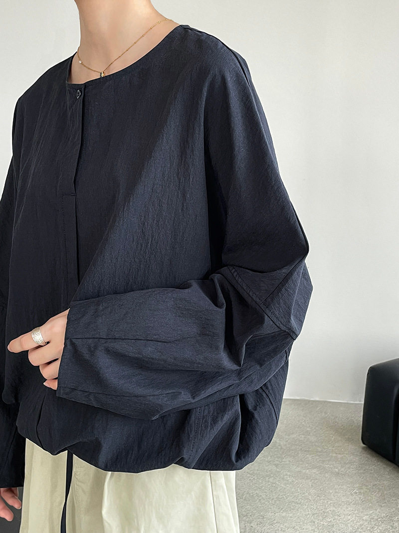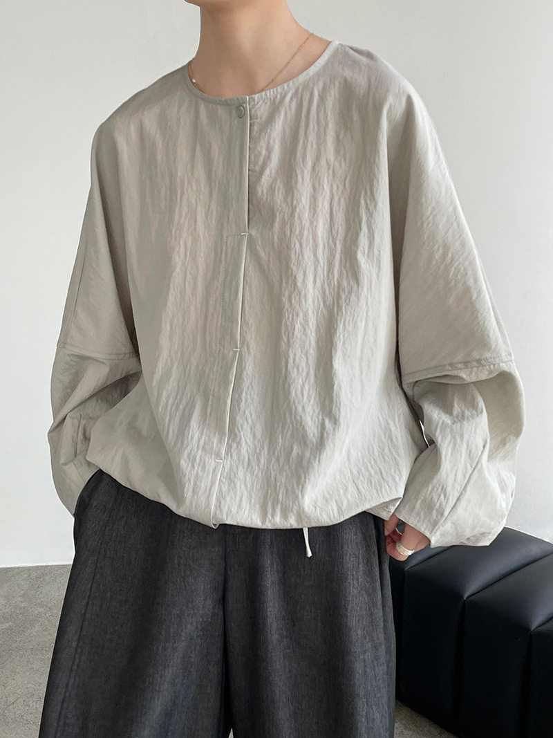 【商品名】【トップス】ドロップショルダー シャツ 新作 ラウンドネック 長袖 ドローストリング ゆったり 体型カバー 上品【JZシリーズ】