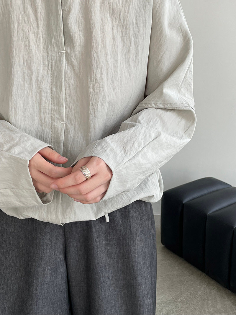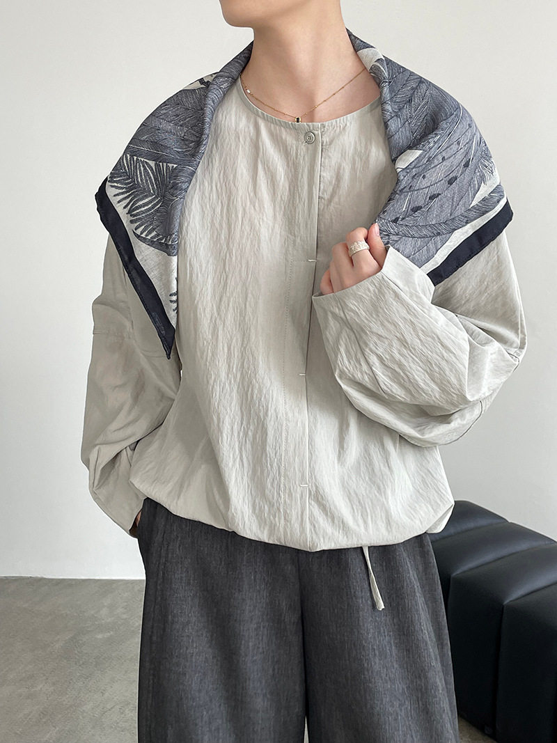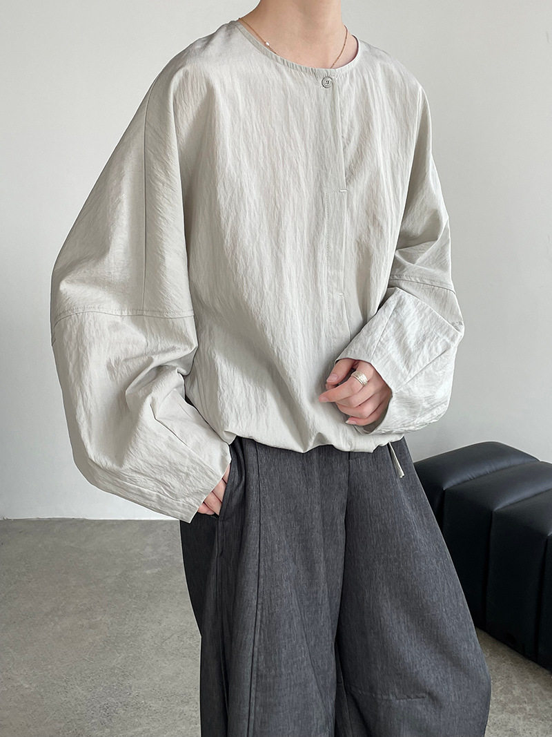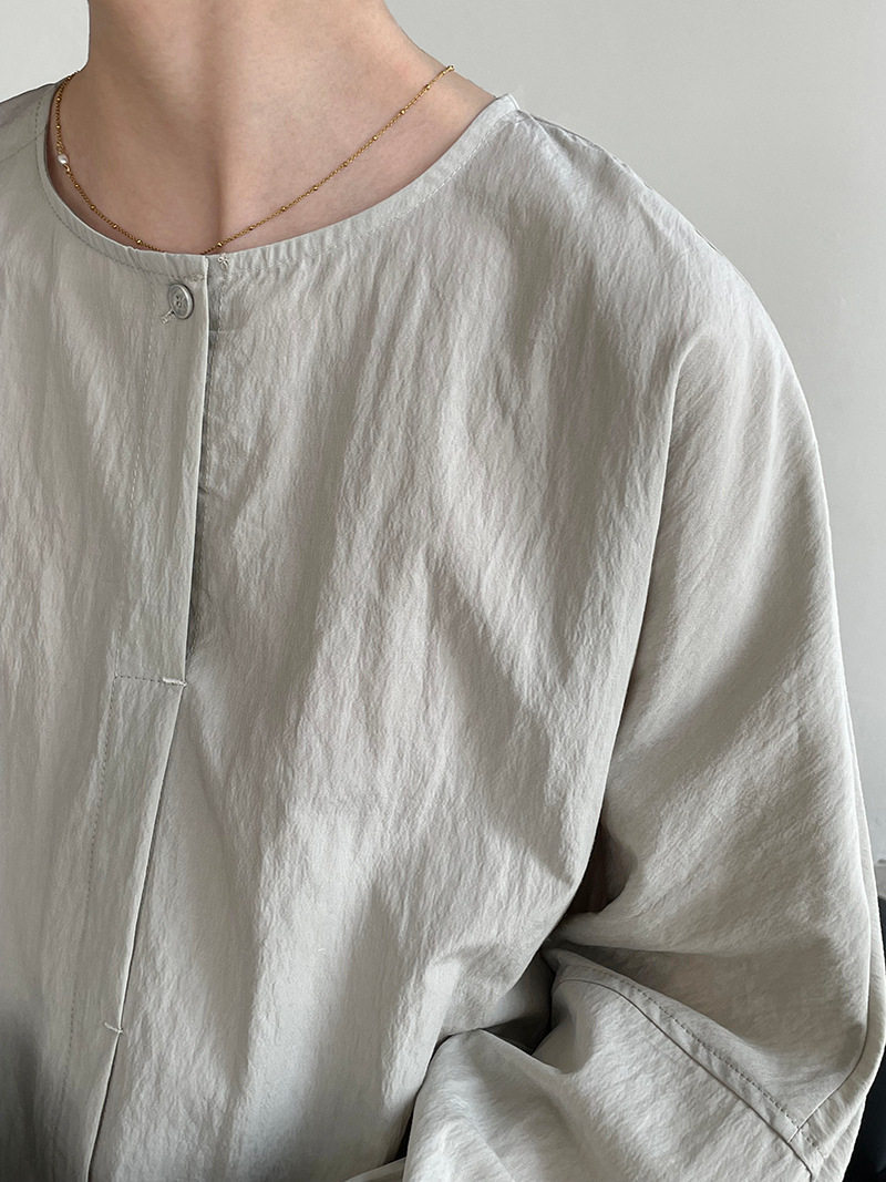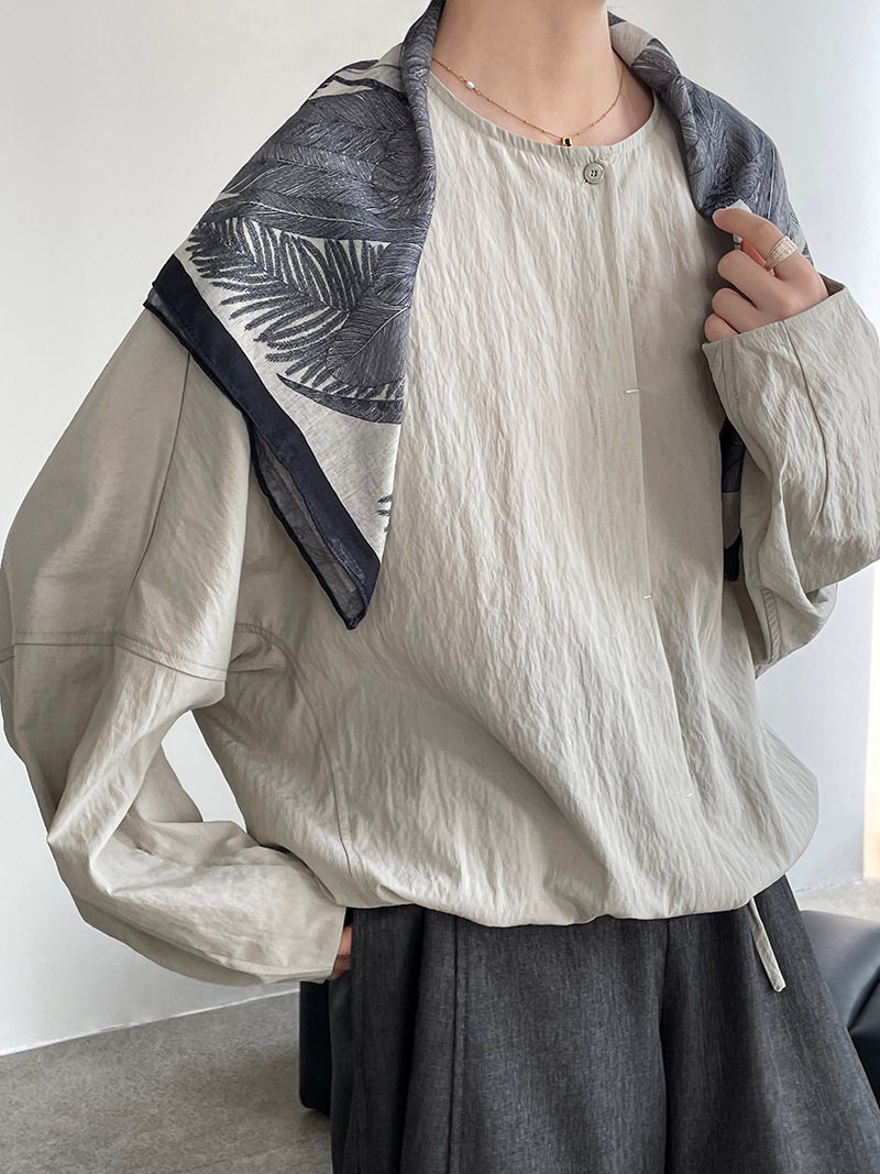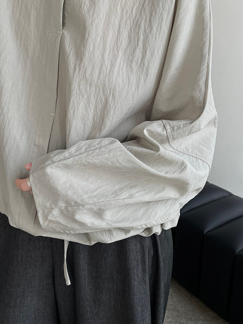 【商品名】【トップス】ドロップショルダー シャツ 新作 ラウンドネック 長袖 ドローストリング ゆったり 体型カバー 上品【JZシリーズ】