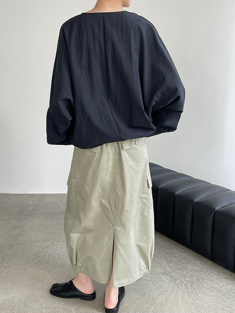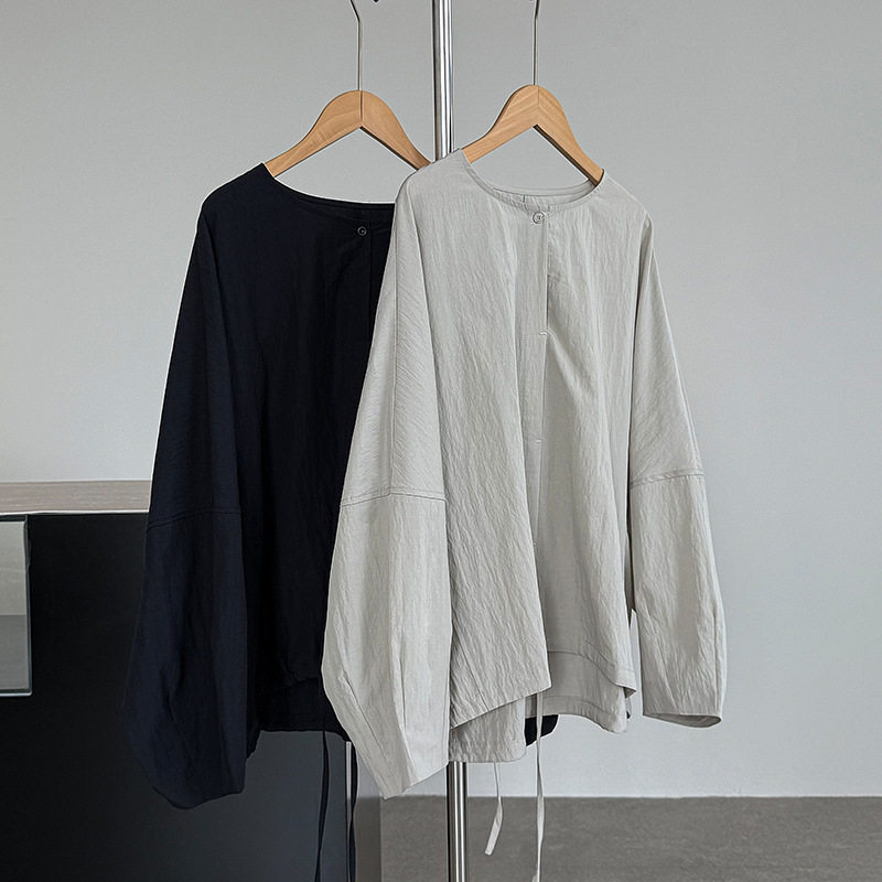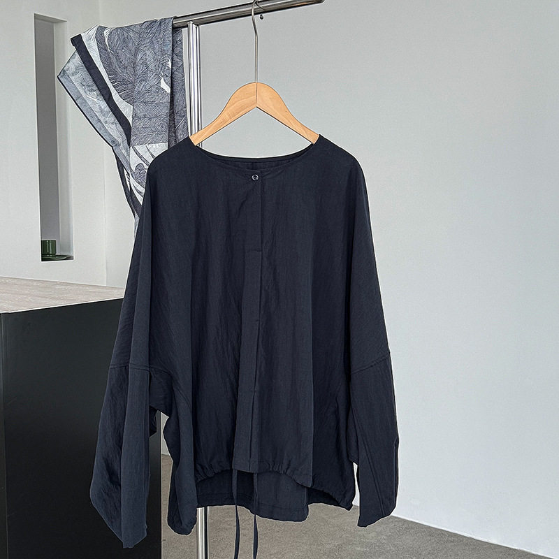 【トップス】ドロップショルダー シャツ 新作 ラウンドネック 長袖 ドローストリング ゆったり 体型カバー 上品【JZシリーズ】