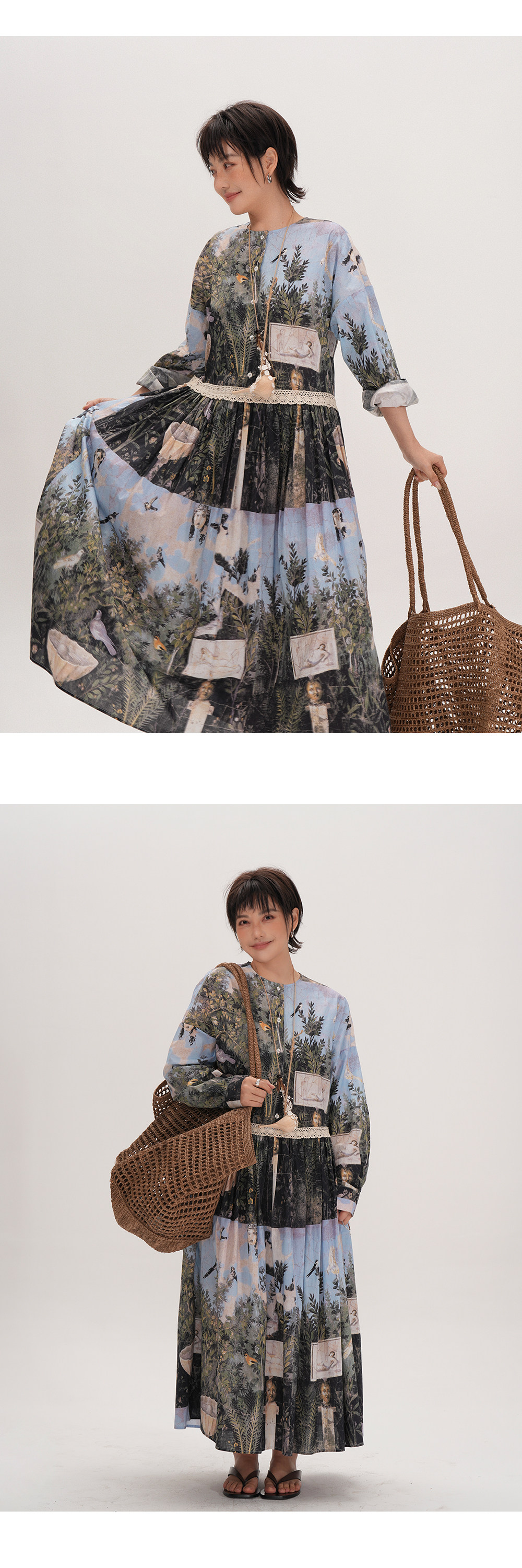 【ワンピース】レディース ワンピース 長袖 切り替えデザイン 大きめシルエット 体型カバー 上品 カジュアル 春夏【SHシリーズ】【15~20日内発送】