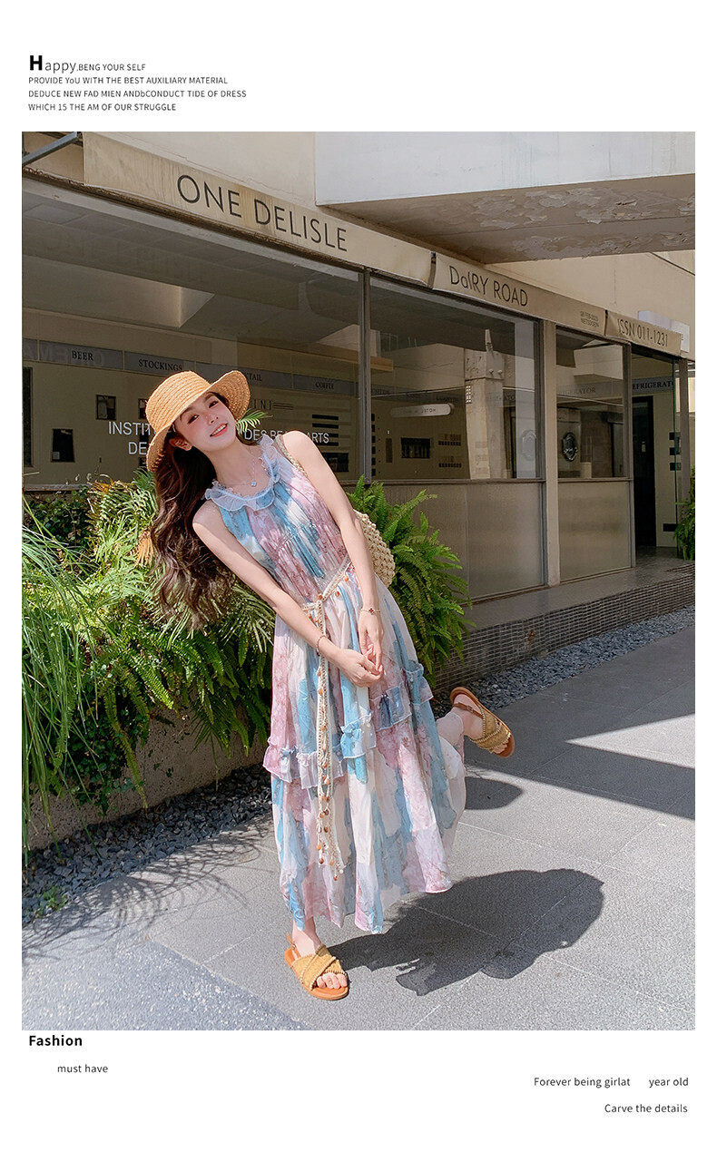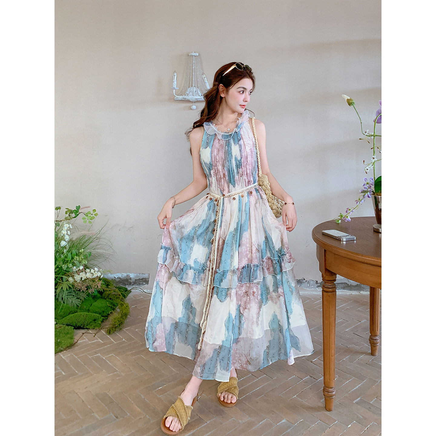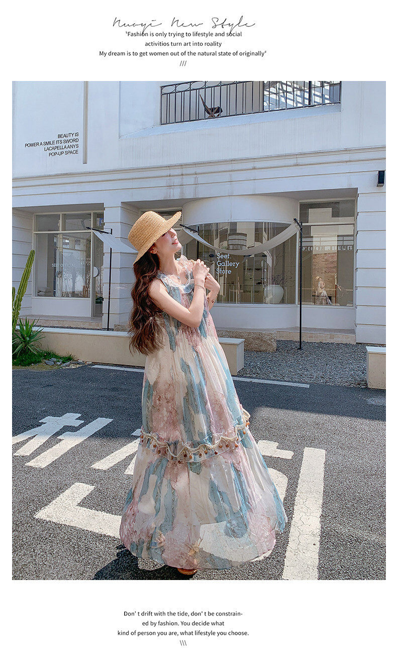 【ワンピース】花柄 ホルターネック ロング丈 ノースリーブワンピース 細見え 体型カバー 上品 リゾート 海外旅行 ビーチコーデ【SHシリーズ】