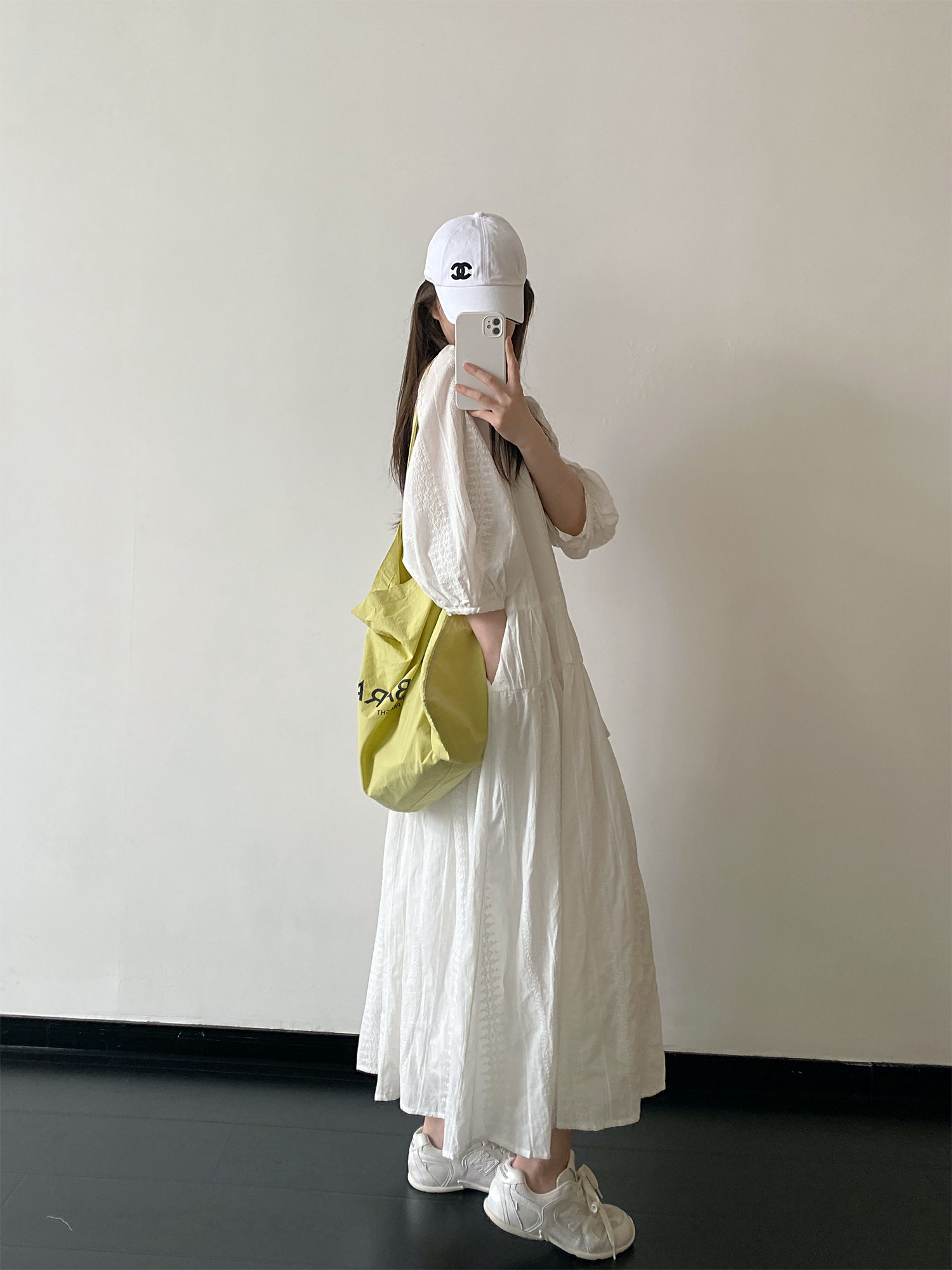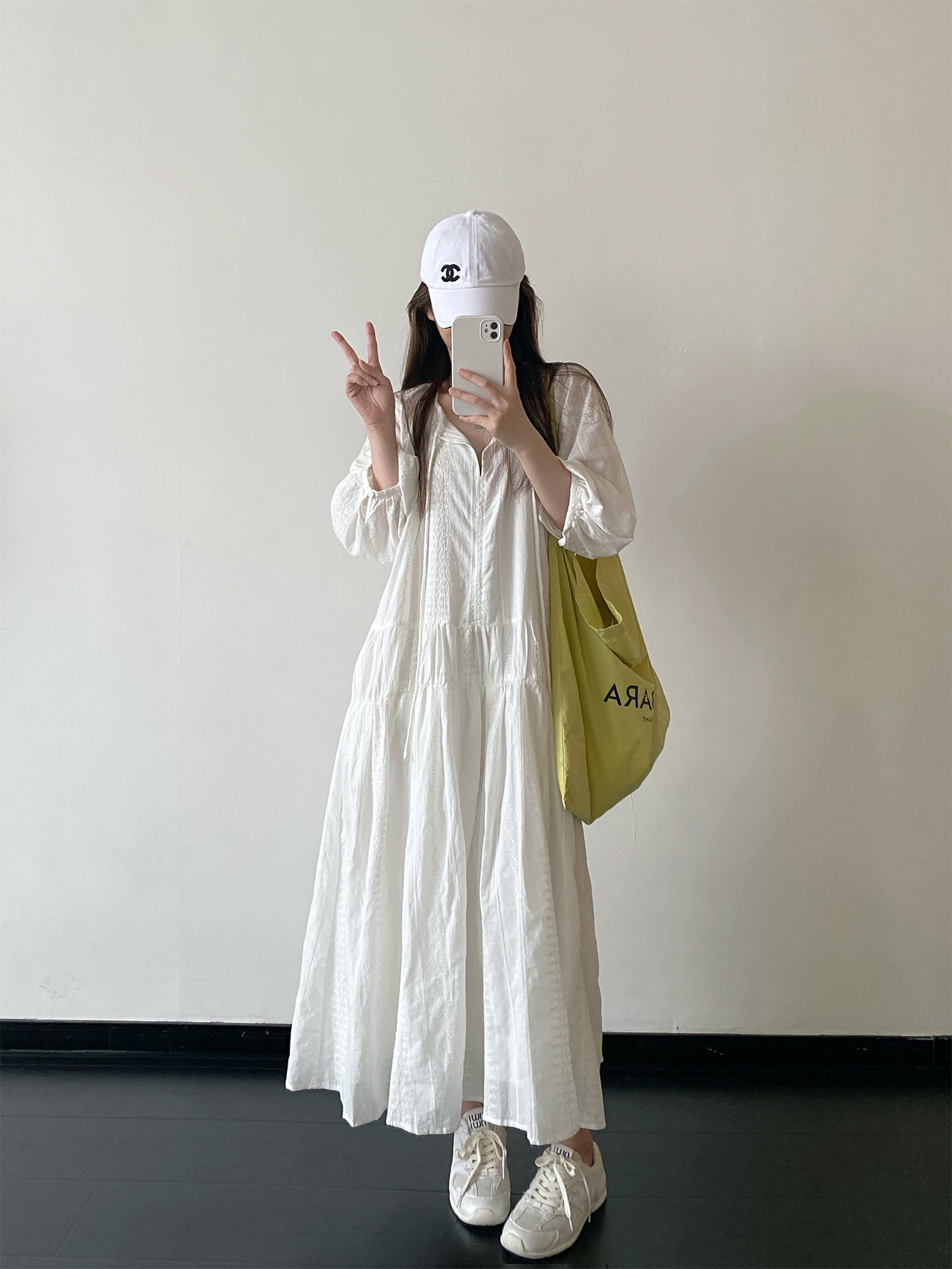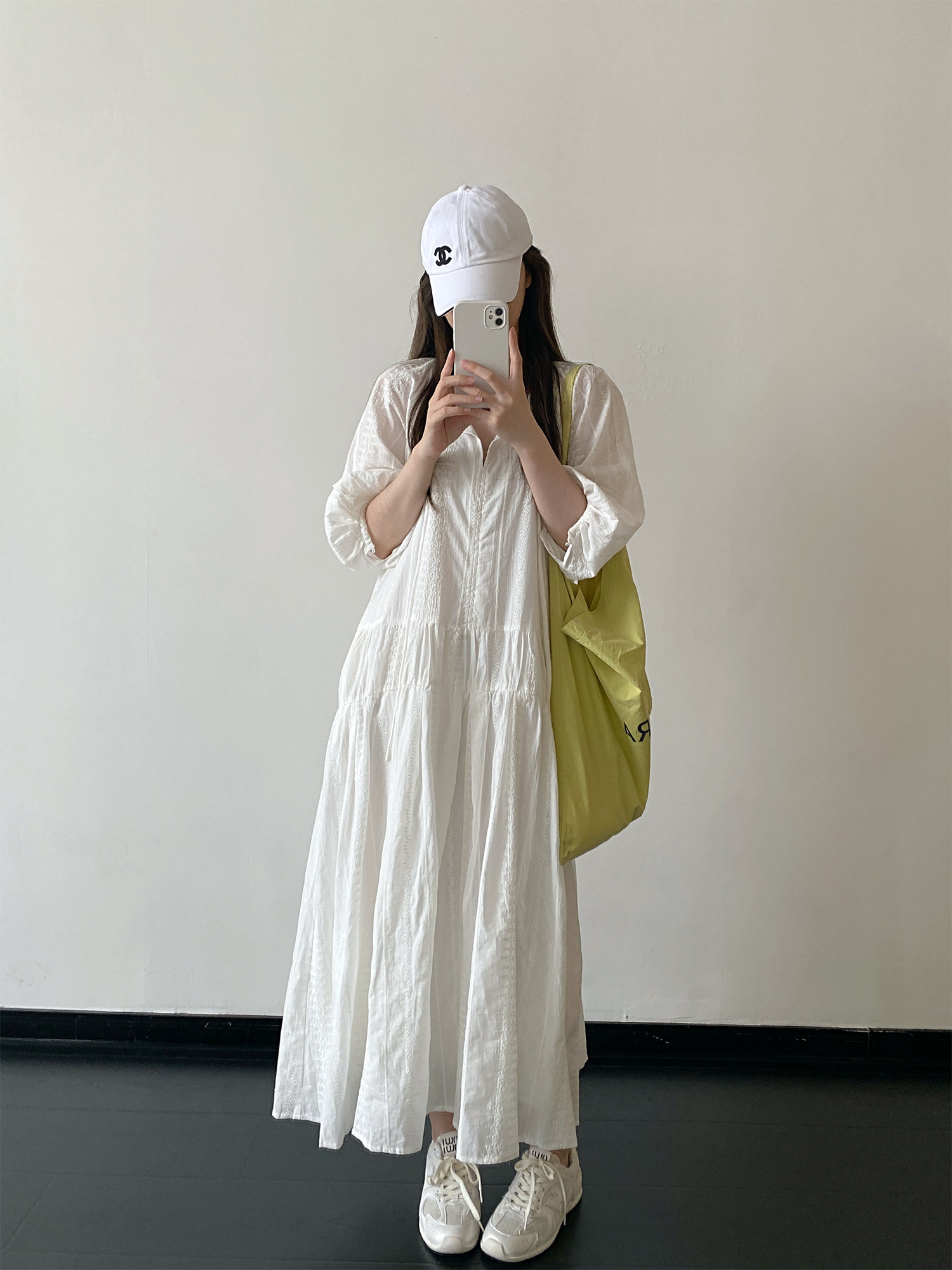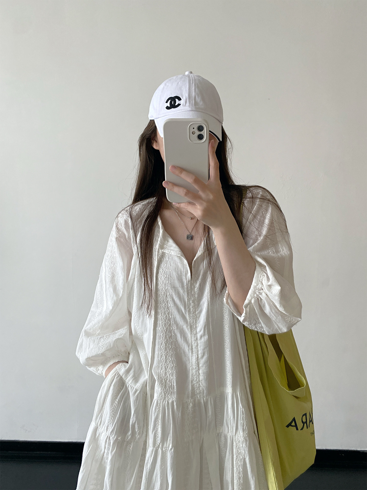 【商品名】【ワンピース】レディース ホワイト 長袖 ワンピース フレンチリゾート レースアップ デザイン ロングワンピース テクスチャー素材 上品 きれいめ 夏【FCシリーズ】