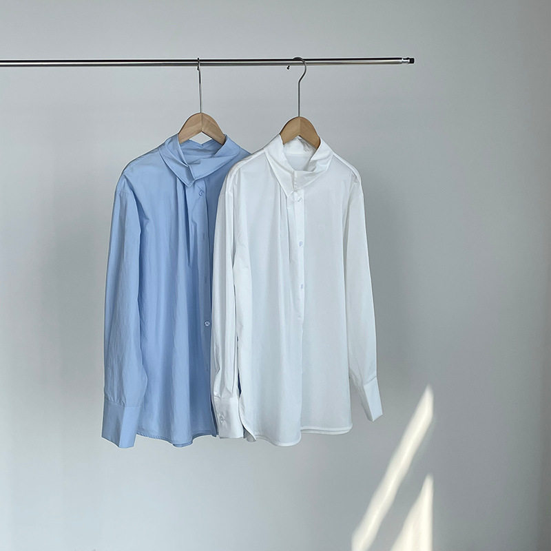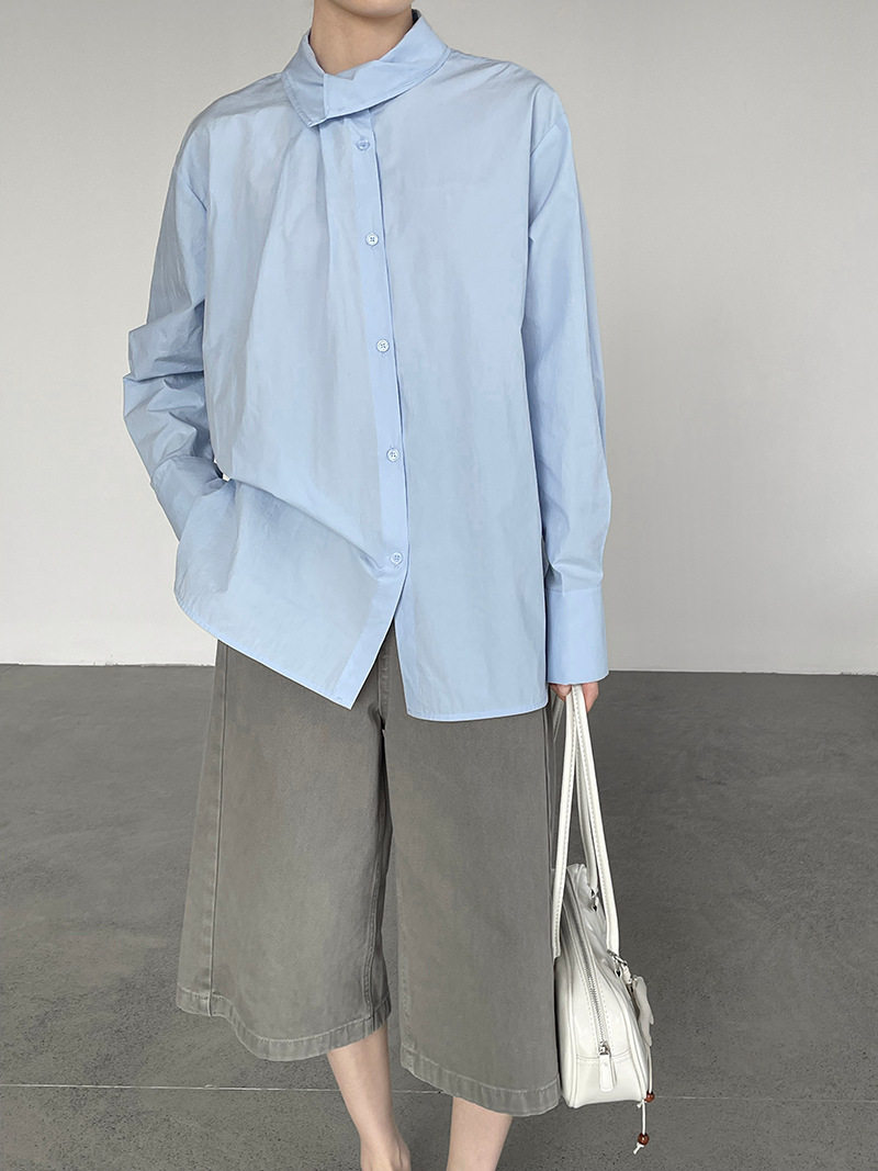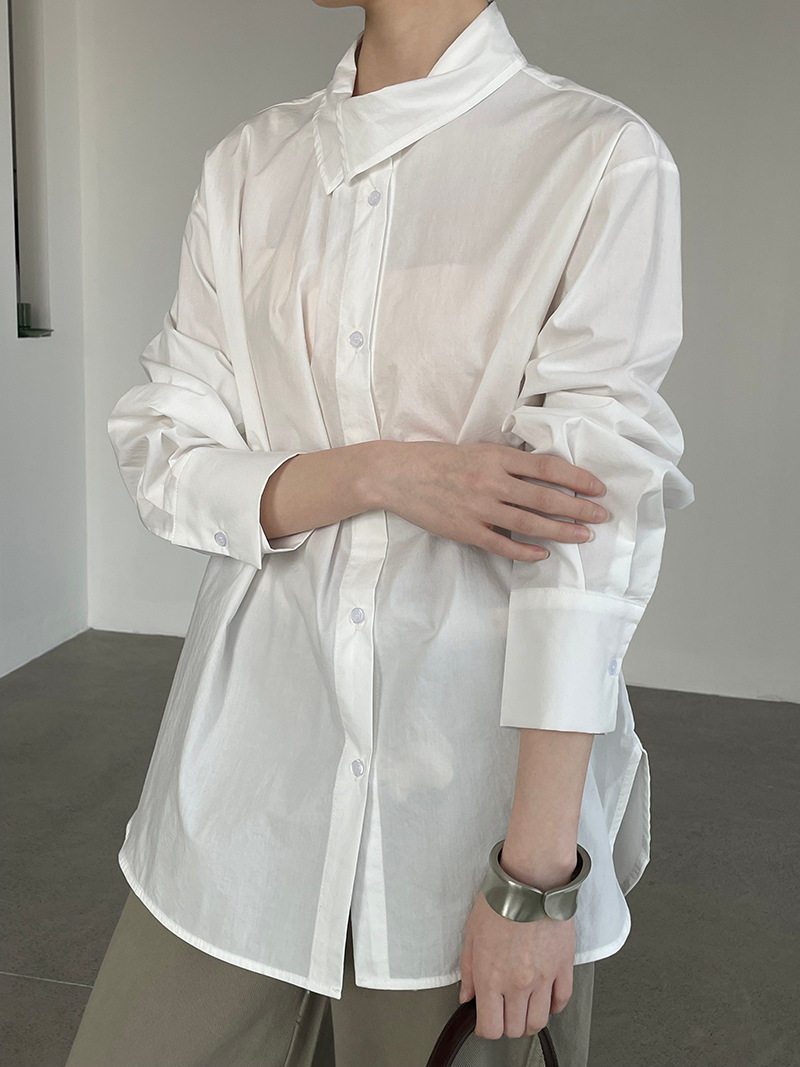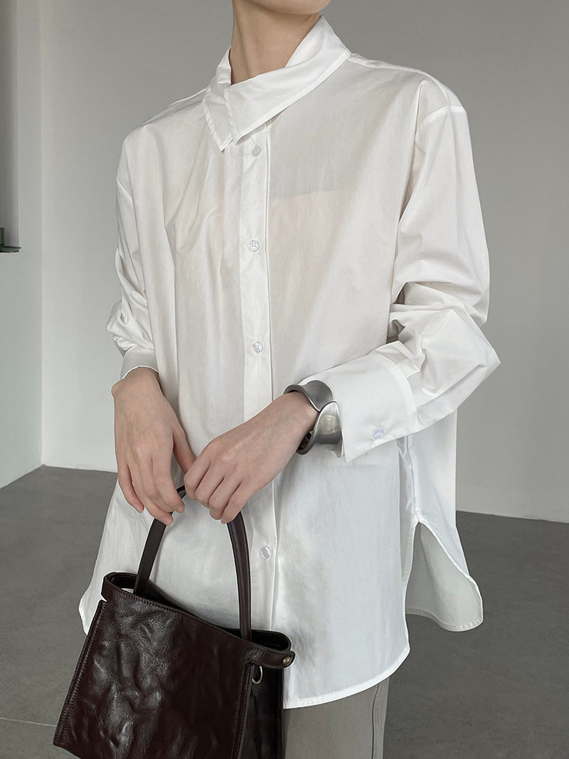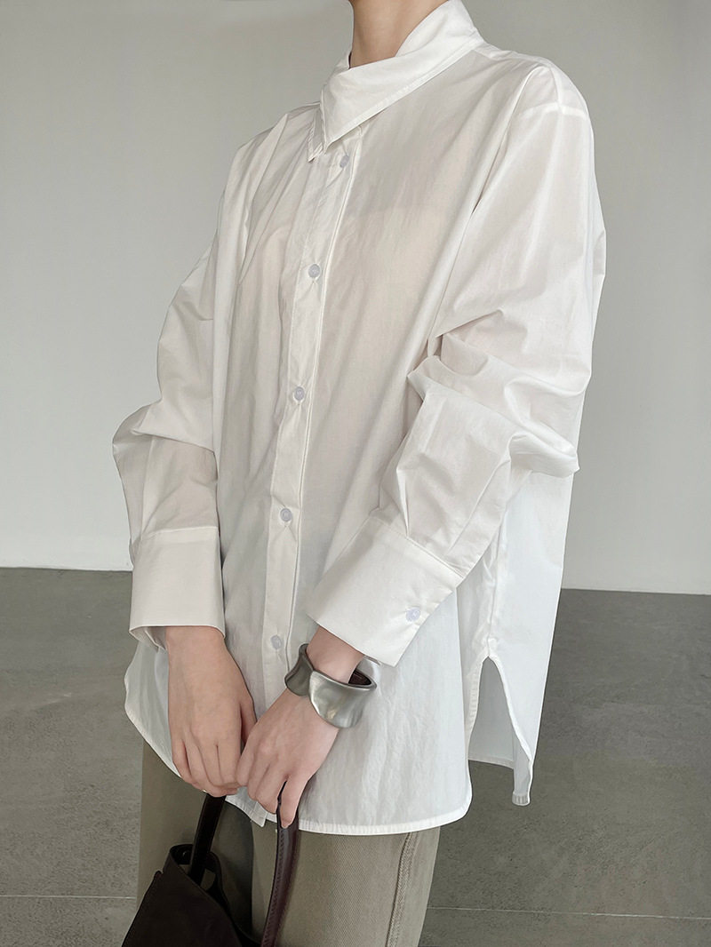 【トップス】レディース シャツ 春新作 不規則デザイン 長袖 ゆったり 体型カバー 襟デザイン 上品 カジュアル ブラウス【JZシリーズ】