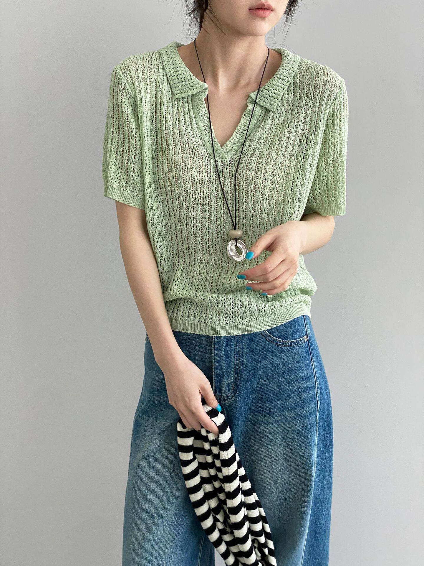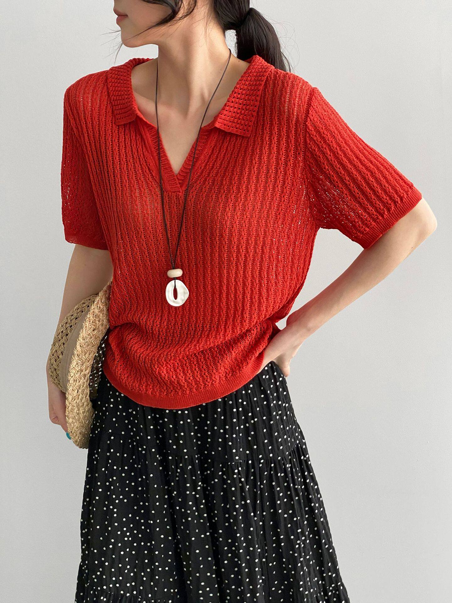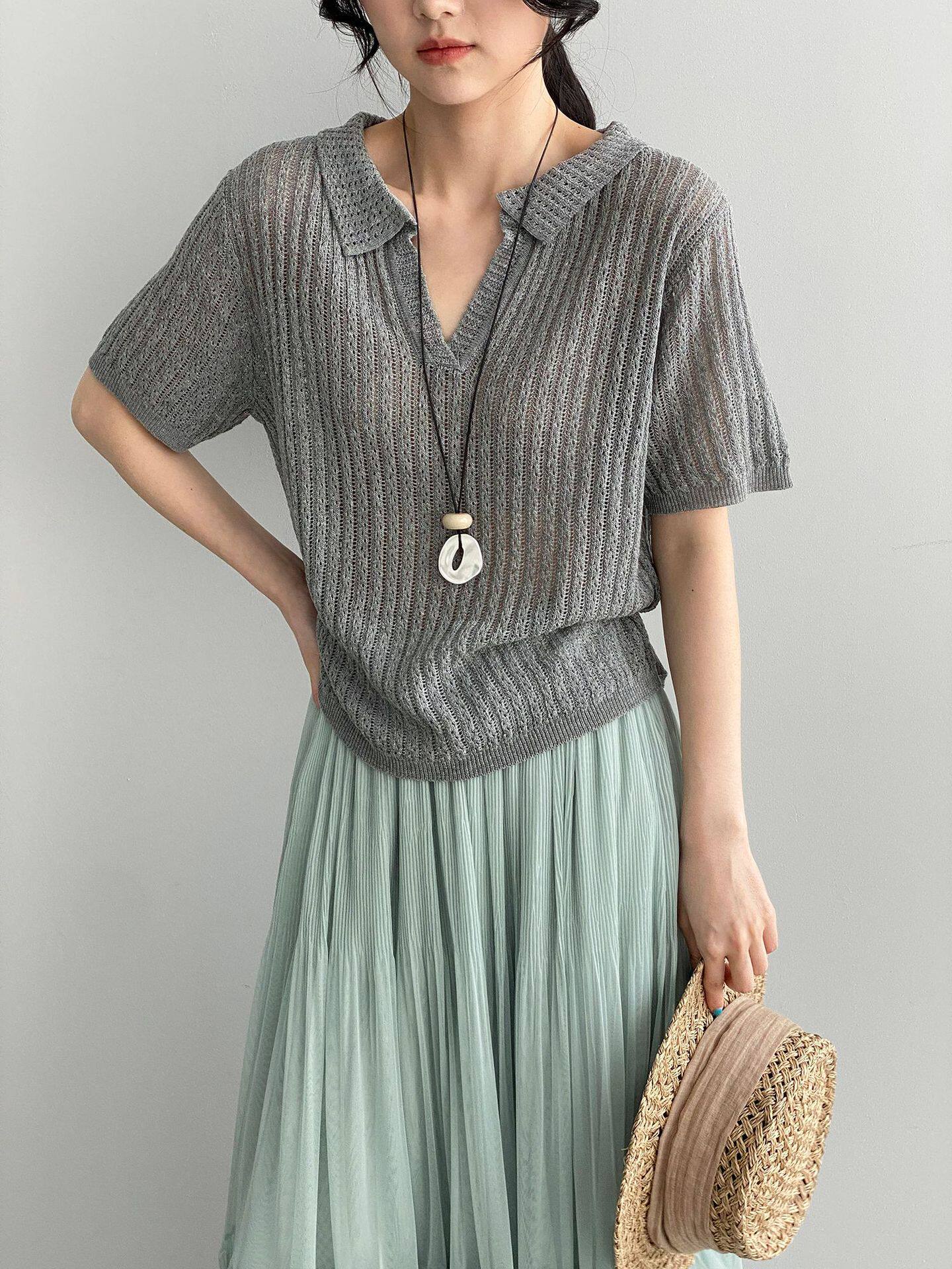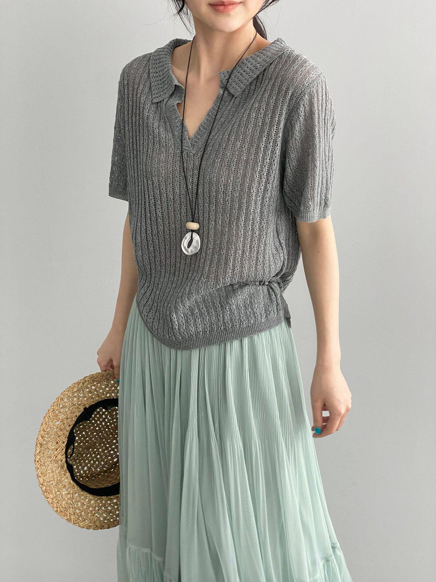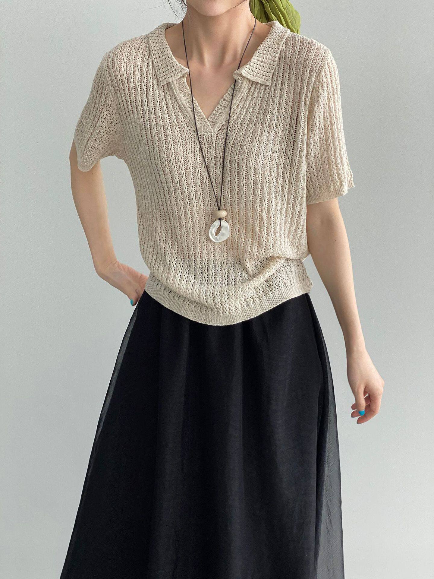 【商品名】【トップス】襟付き 薄手 着回しやすい 接触冷感ニット Tシャツ 【JZシリーズ】