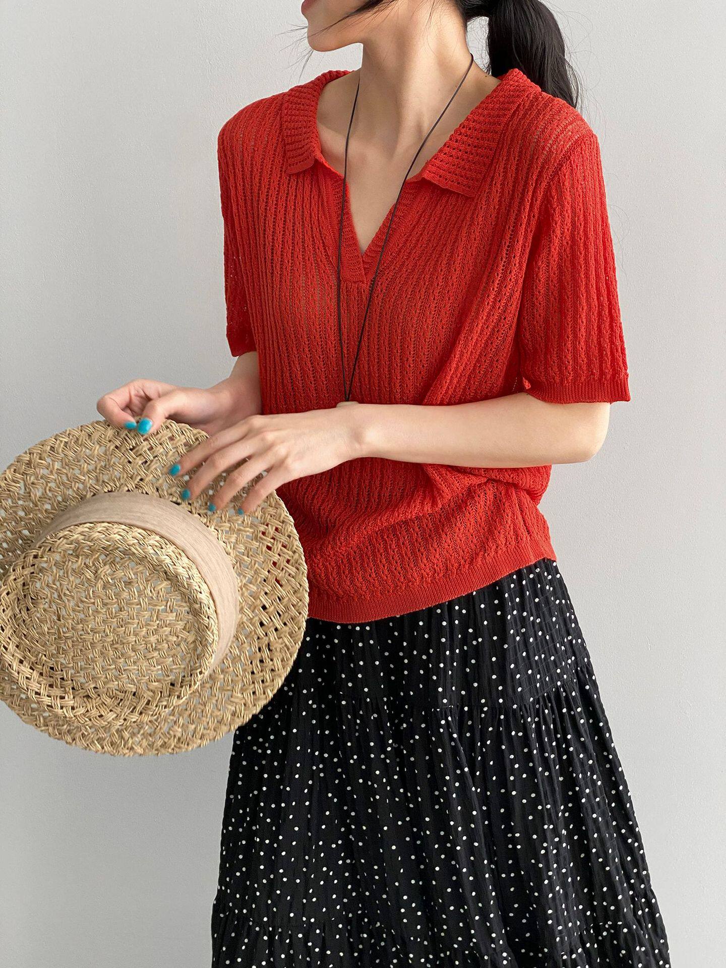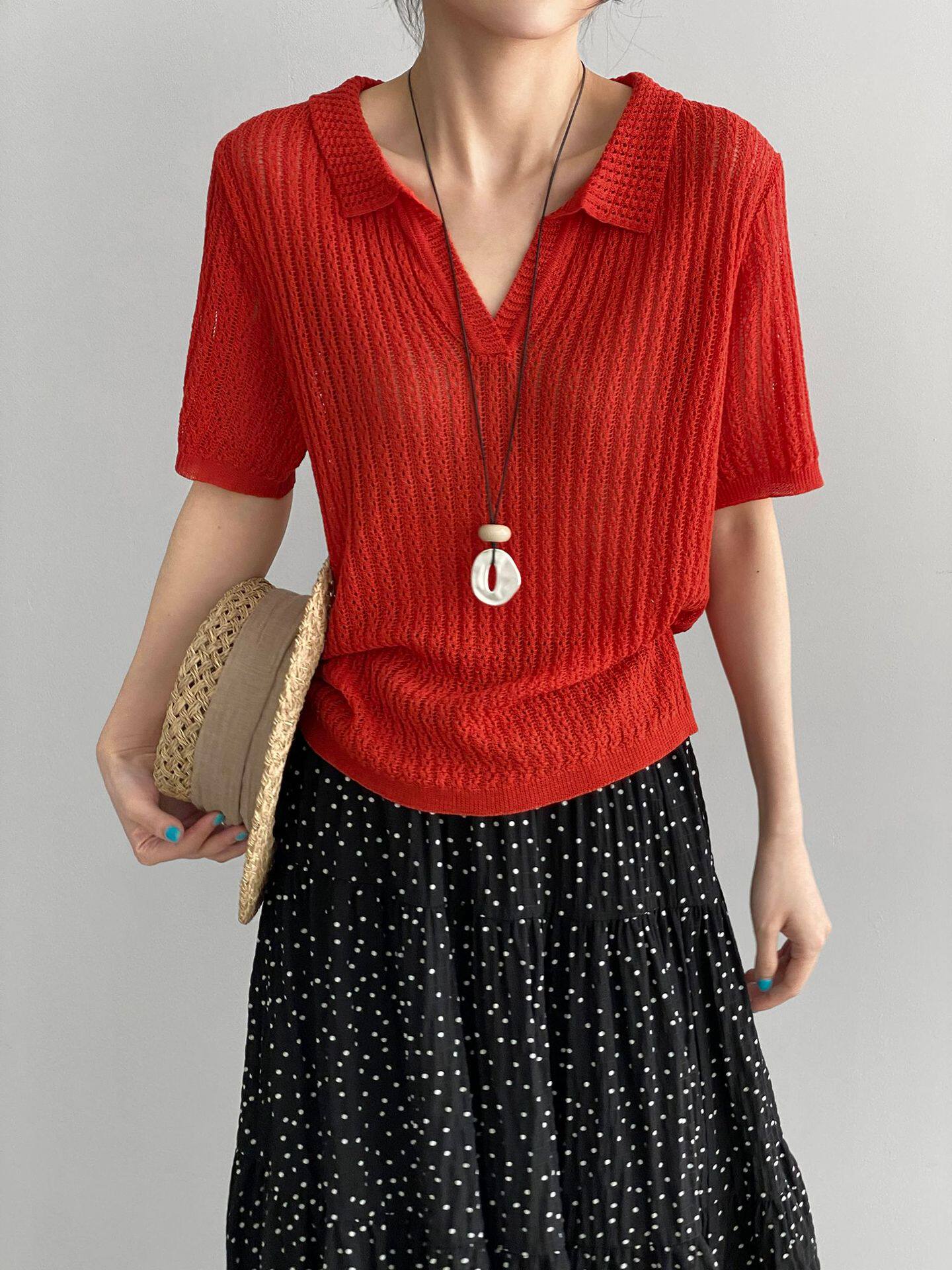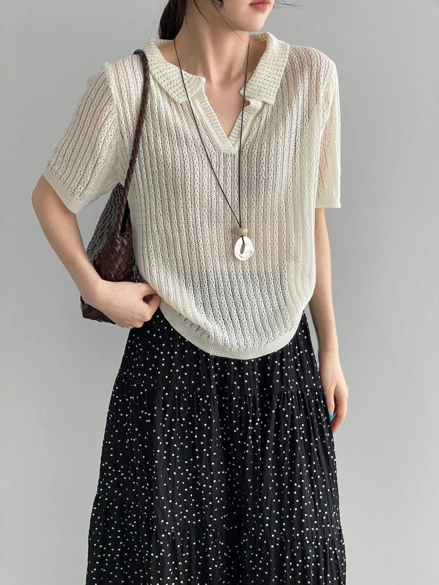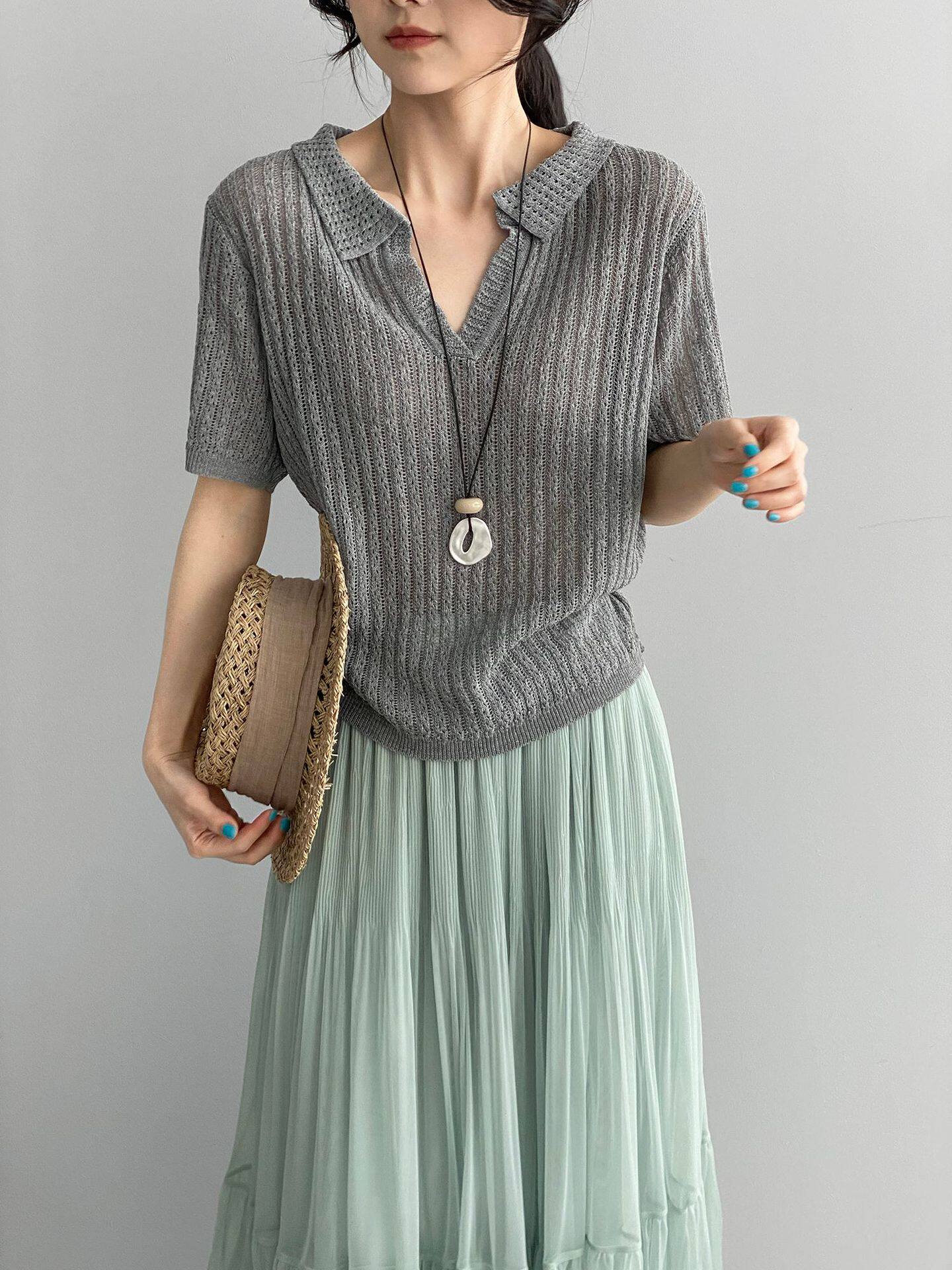 【商品名】【トップス】襟付き 薄手 着回しやすい 接触冷感ニット Tシャツ 【JZシリーズ】