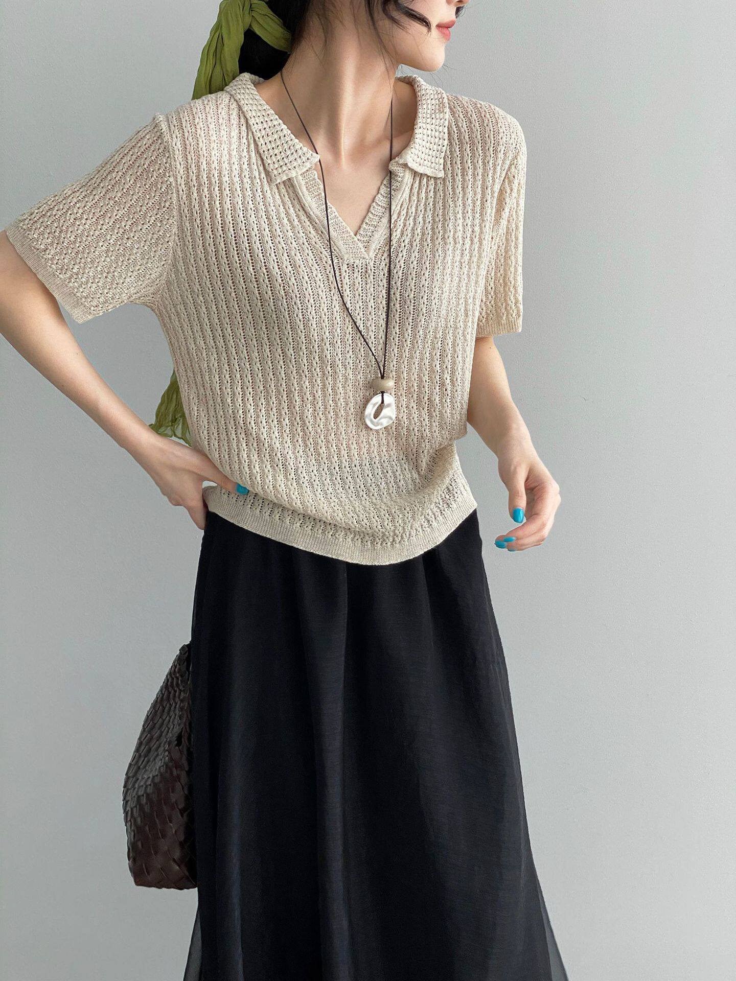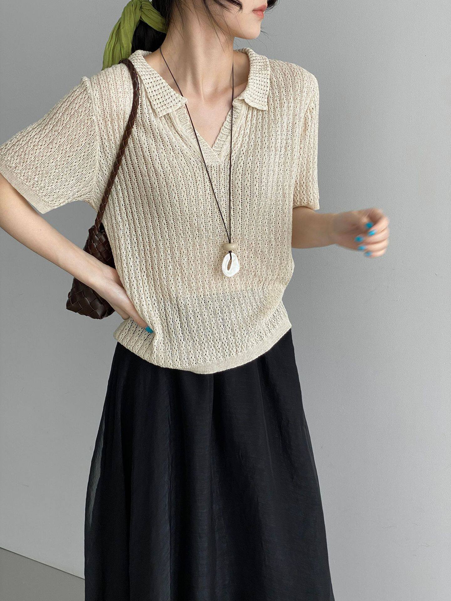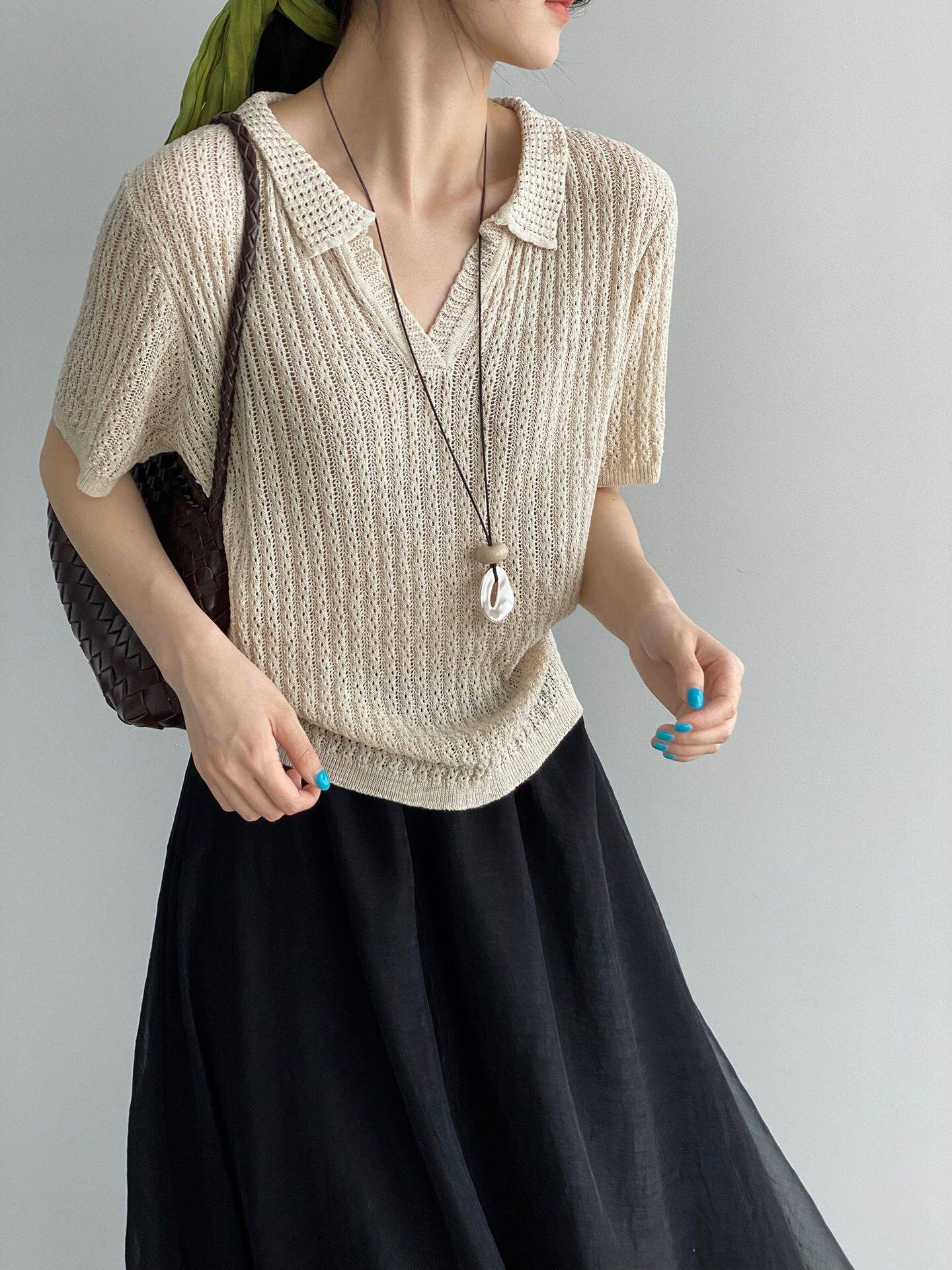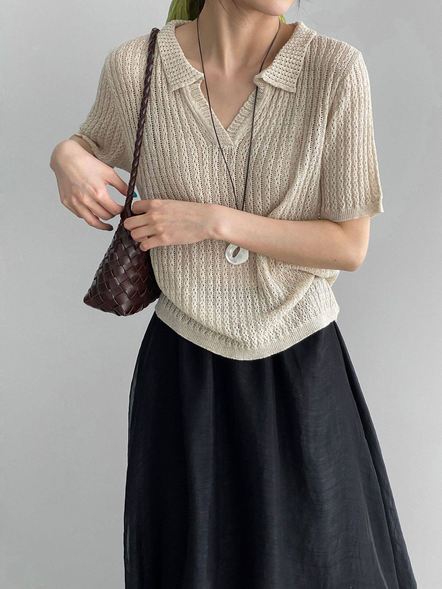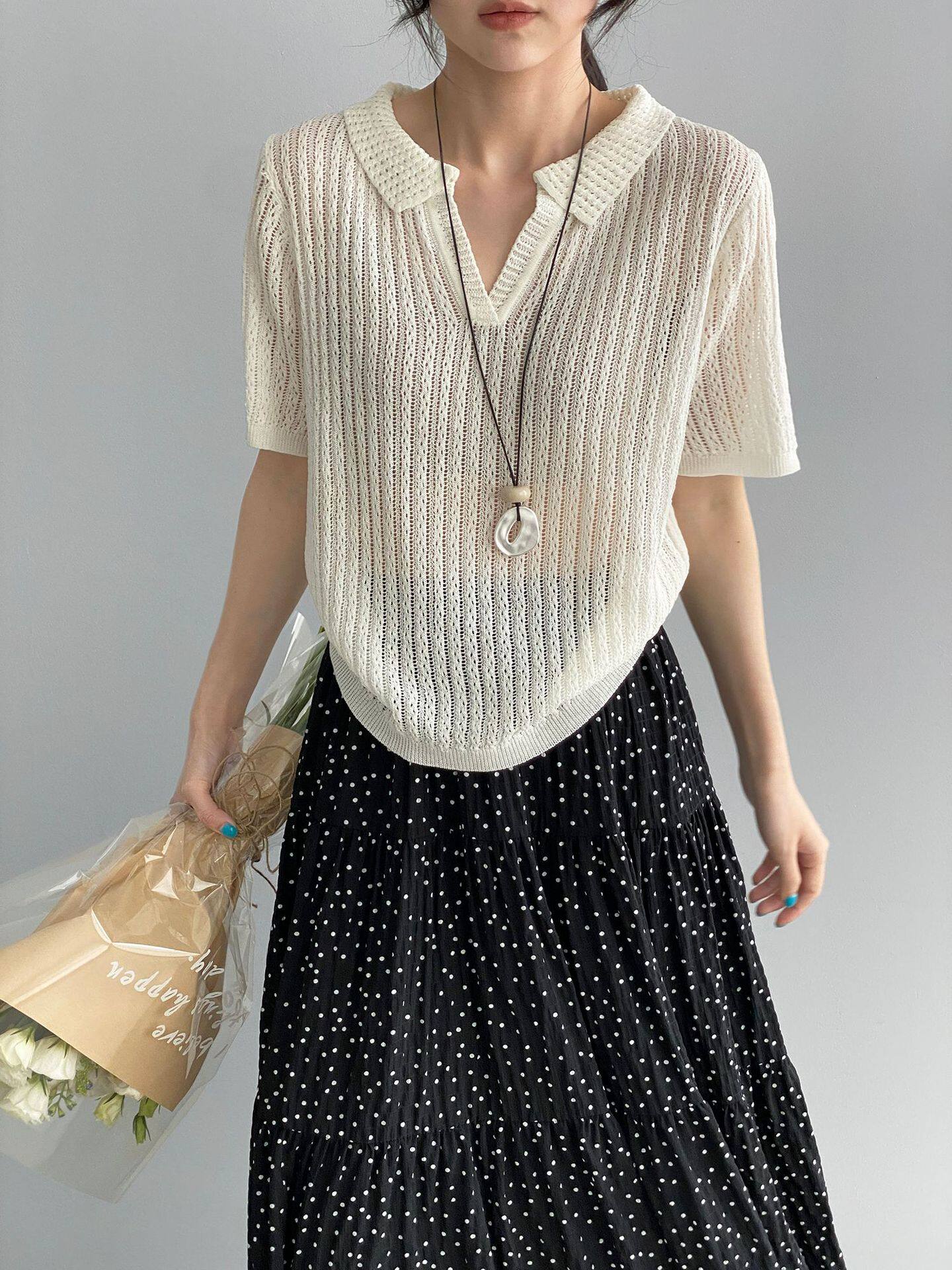 【商品名】【トップス】襟付き 薄手 着回しやすい 接触冷感ニット Tシャツ 【JZシリーズ】