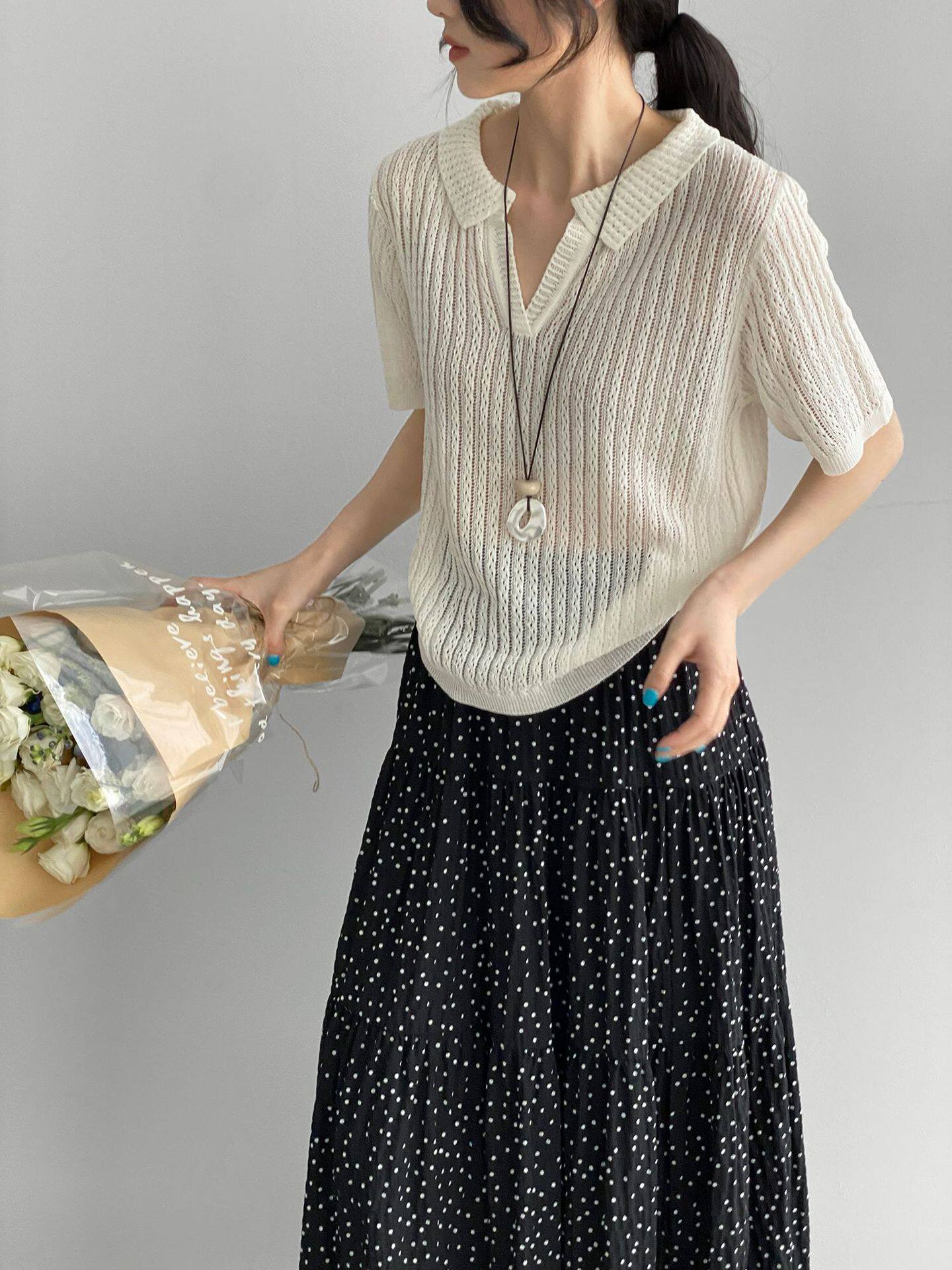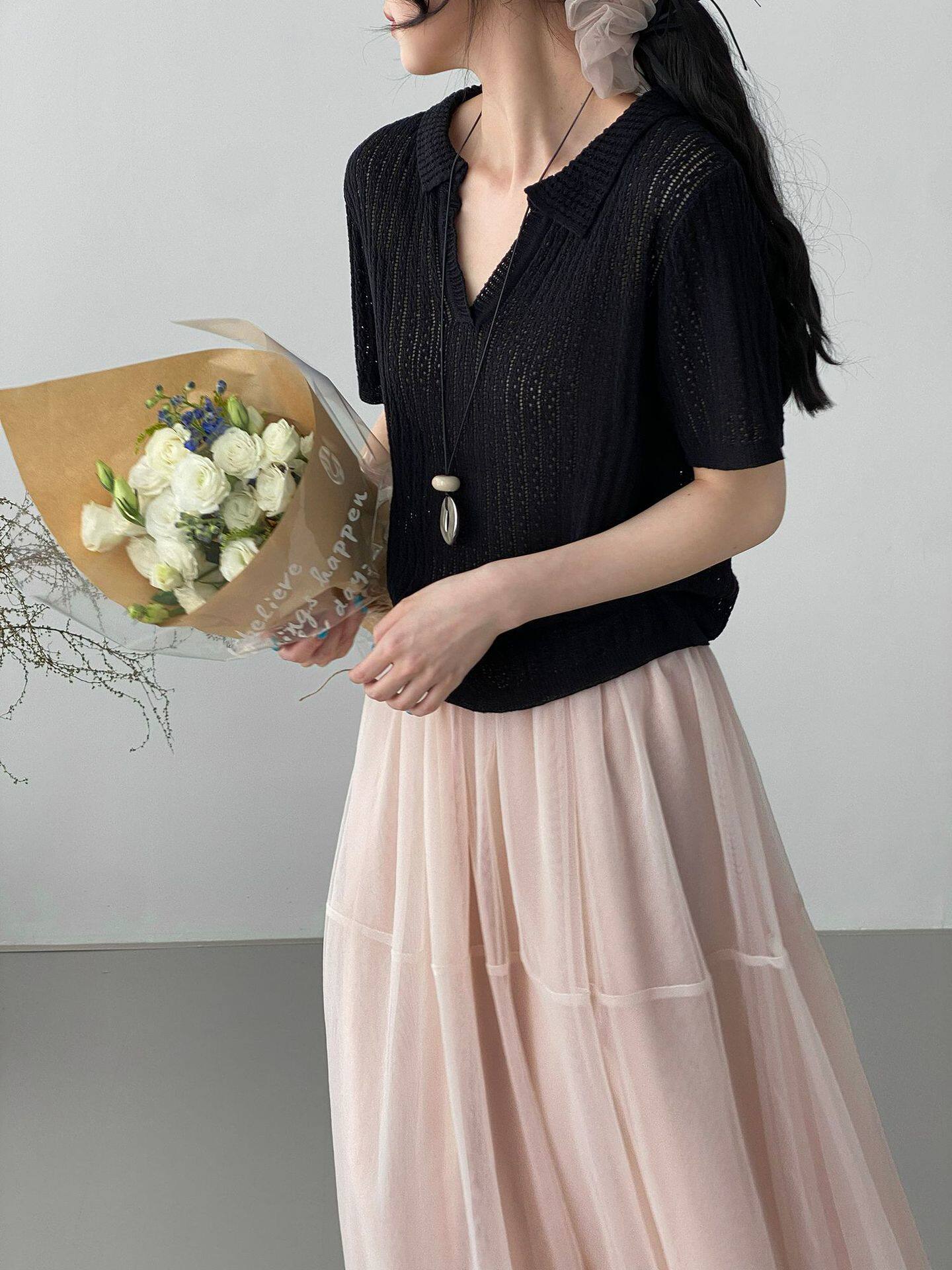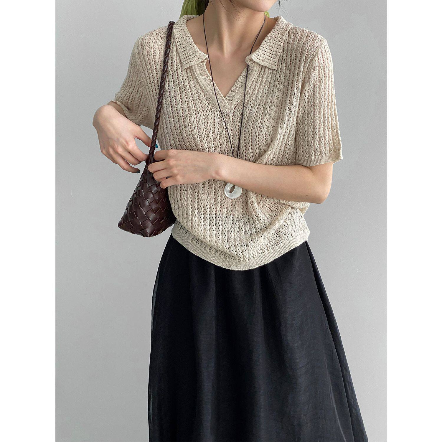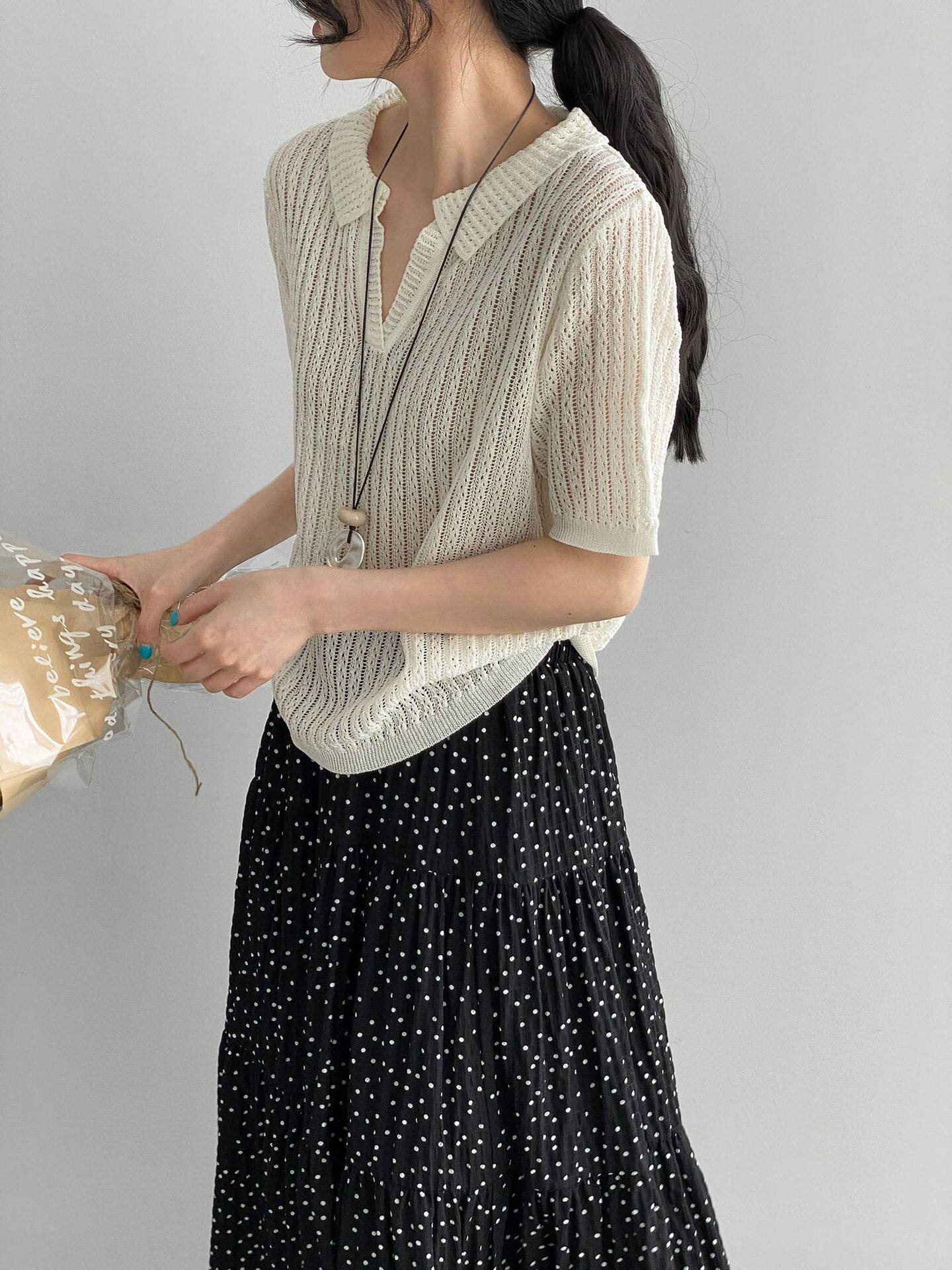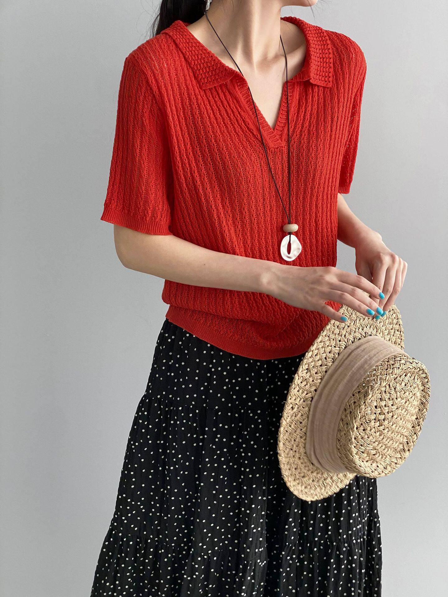 【商品名】【トップス】襟付き 薄手 着回しやすい 接触冷感ニット Tシャツ 【JZシリーズ】