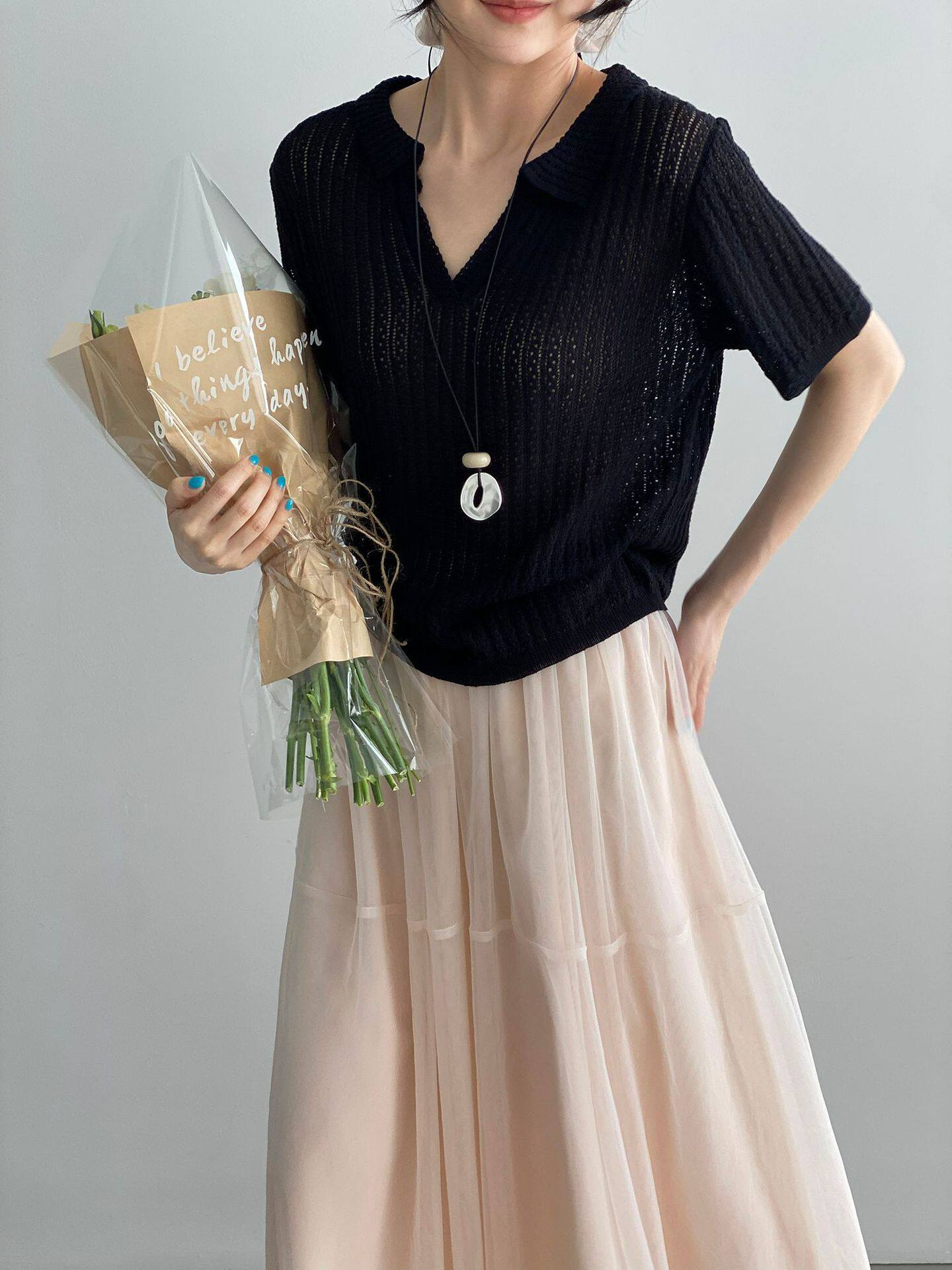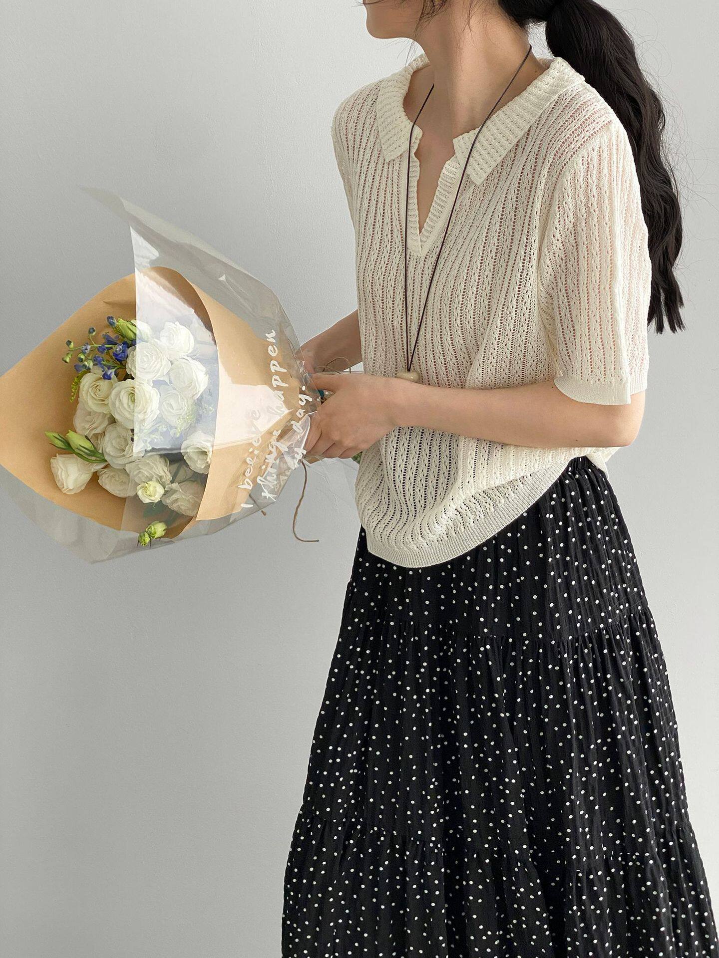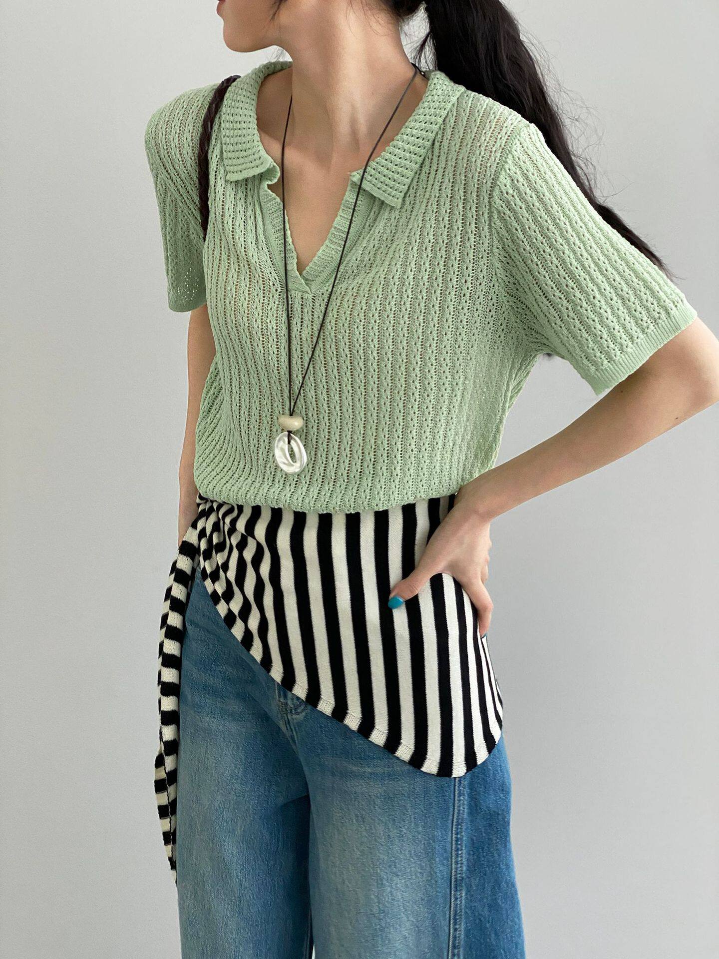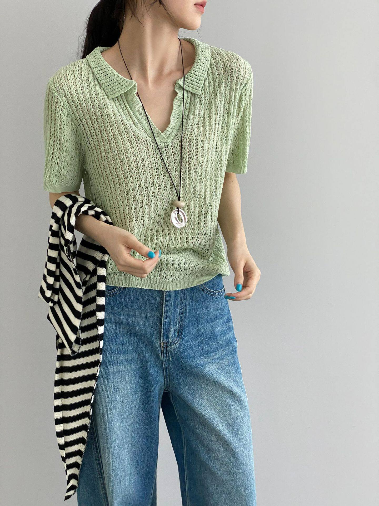 【商品名】【トップス】襟付き 薄手 着回しやすい 接触冷感ニット Tシャツ 【JZシリーズ】