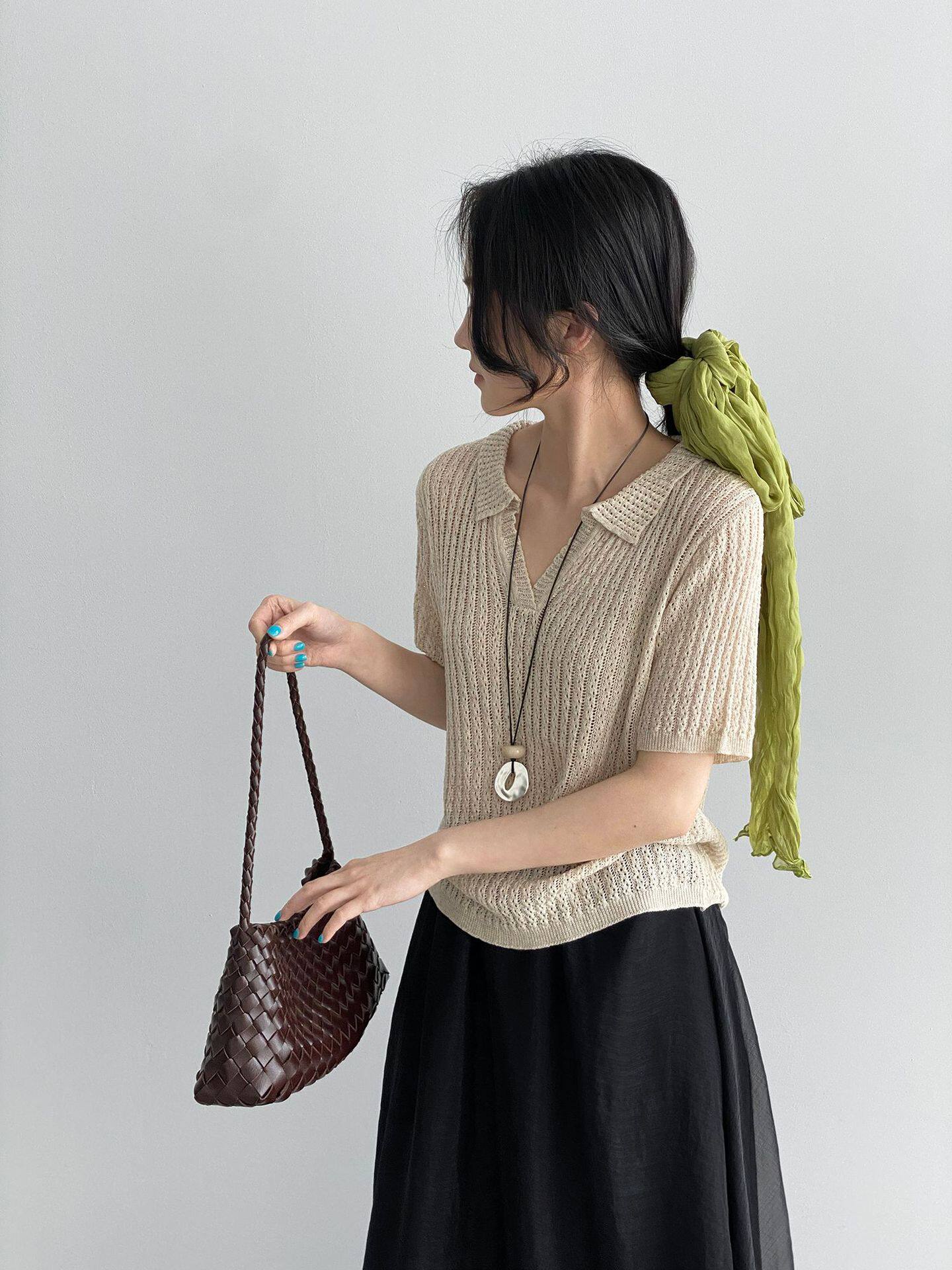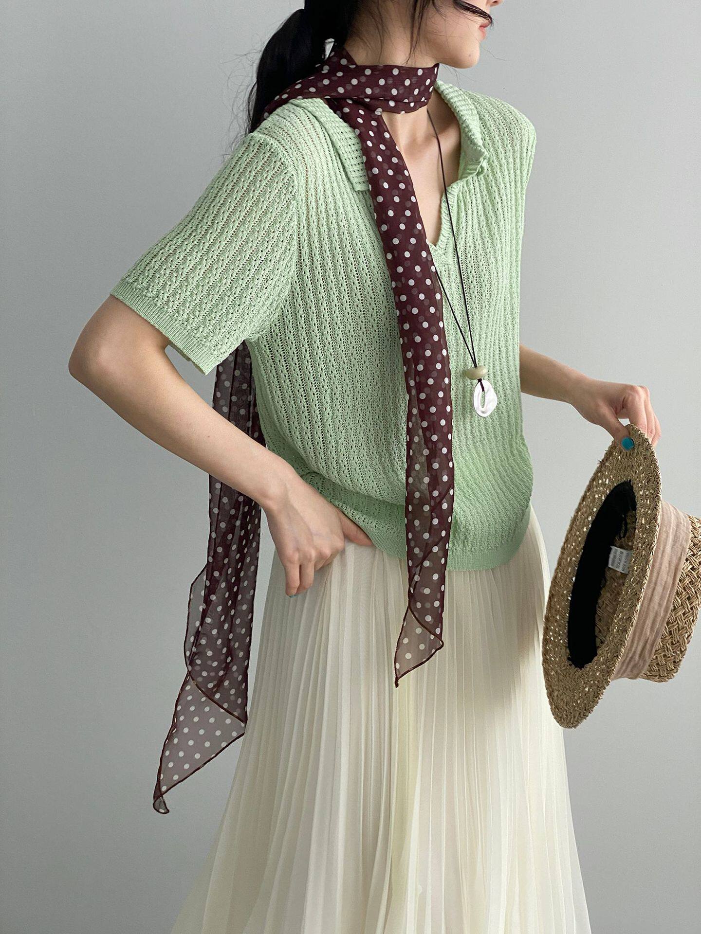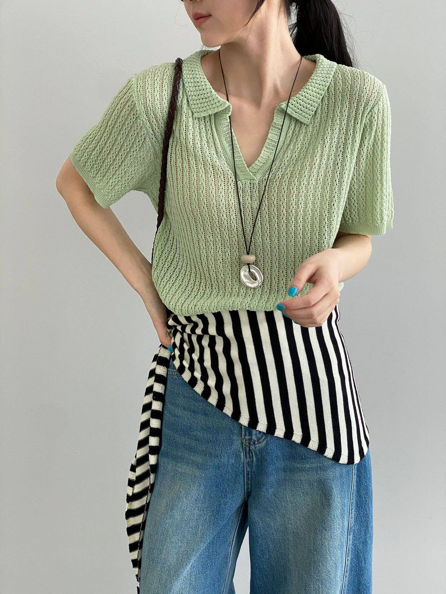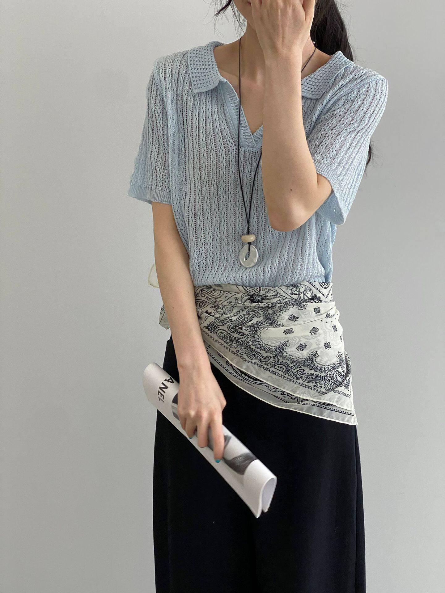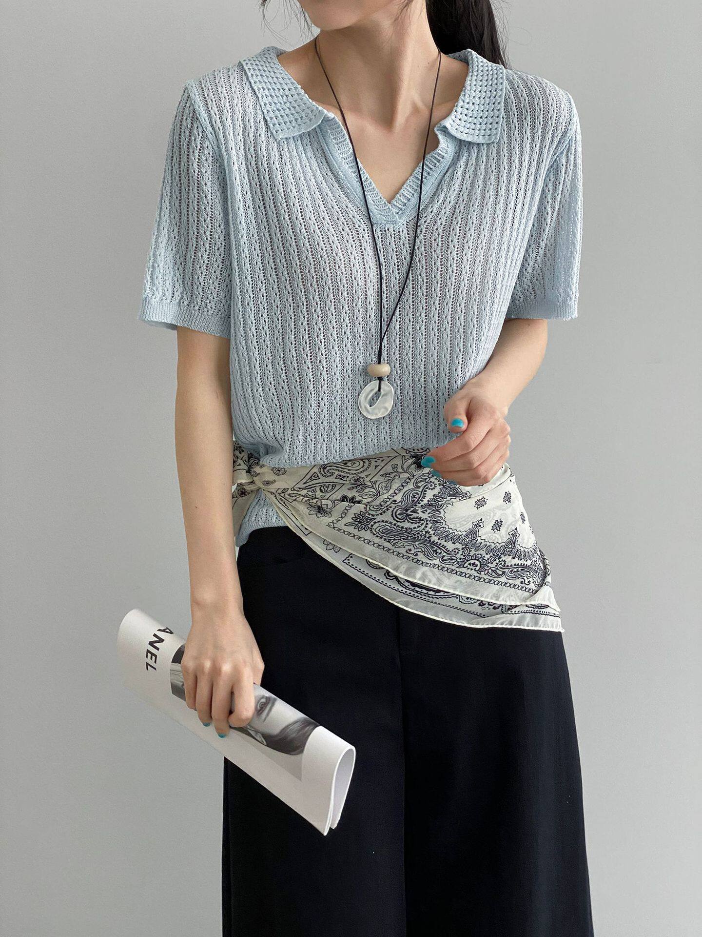 【商品名】【トップス】襟付き 薄手 着回しやすい 接触冷感ニット Tシャツ 【JZシリーズ】