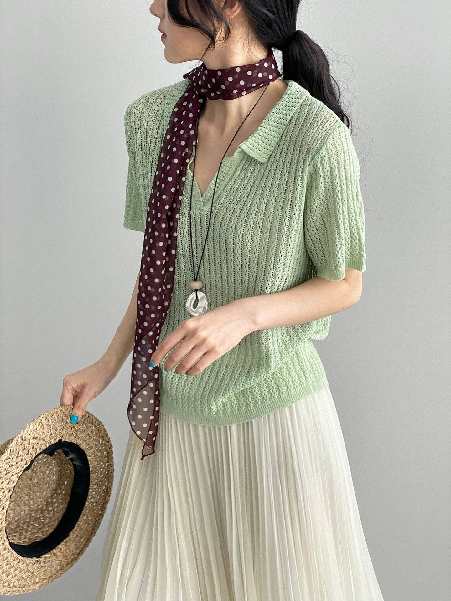 【トップス】襟付き 薄手 着回しやすい 接触冷感ニット Tシャツ 【JZシリーズ】