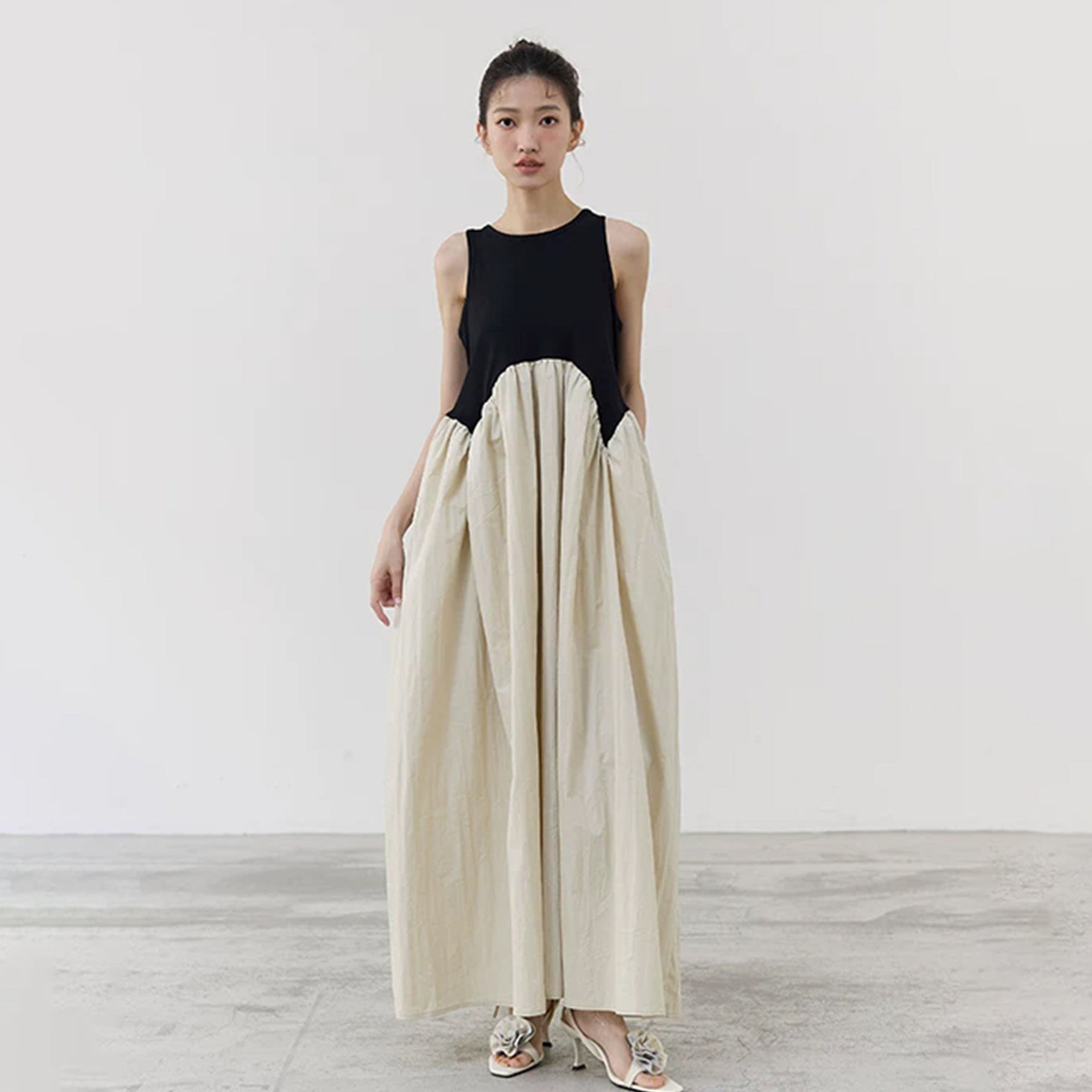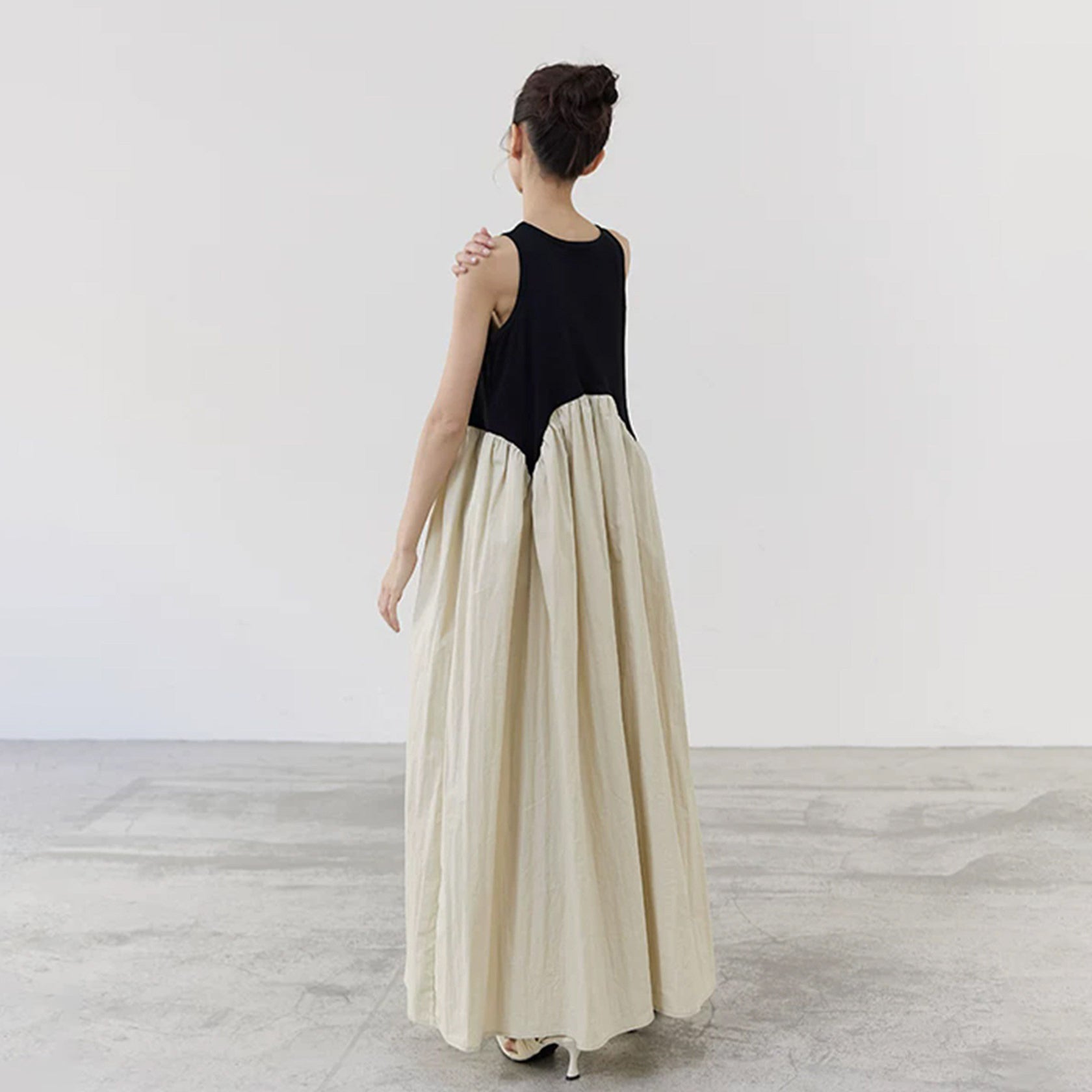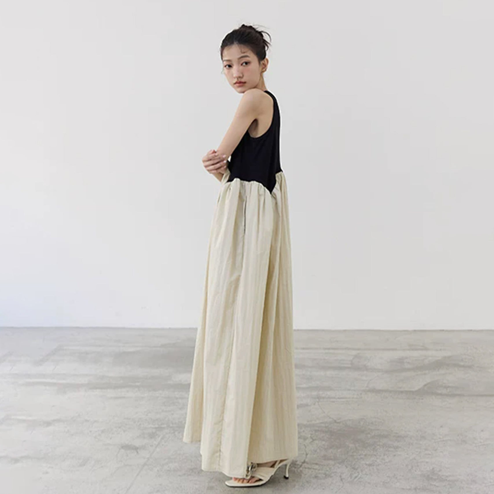 【ワンピース】レトロデザイン バイカラー アシンメトリー ノースリーブワンピース レディース 夏 キャミソール ロングドレス【SHシリーズ】