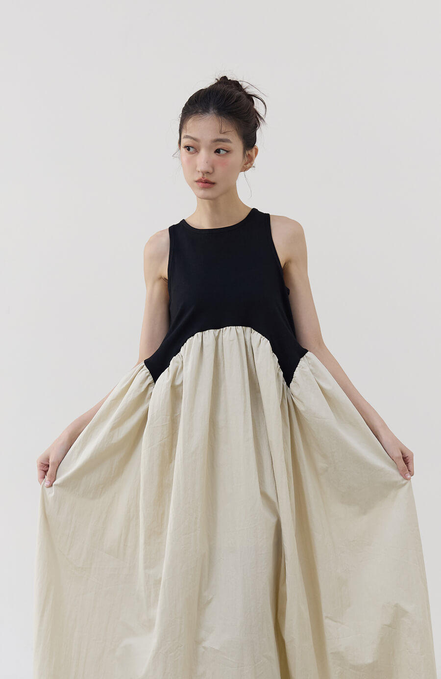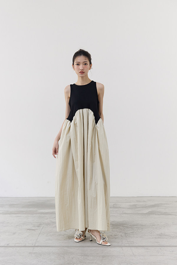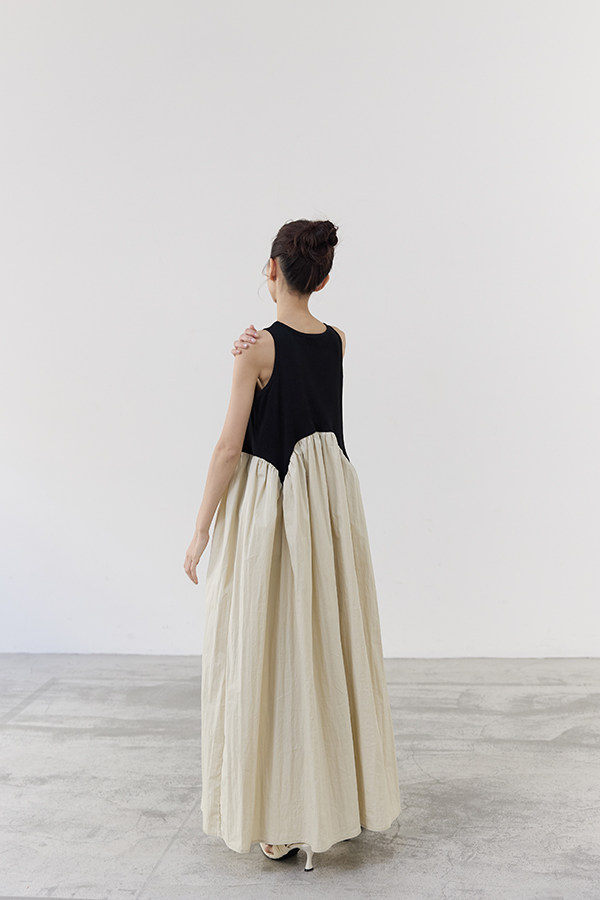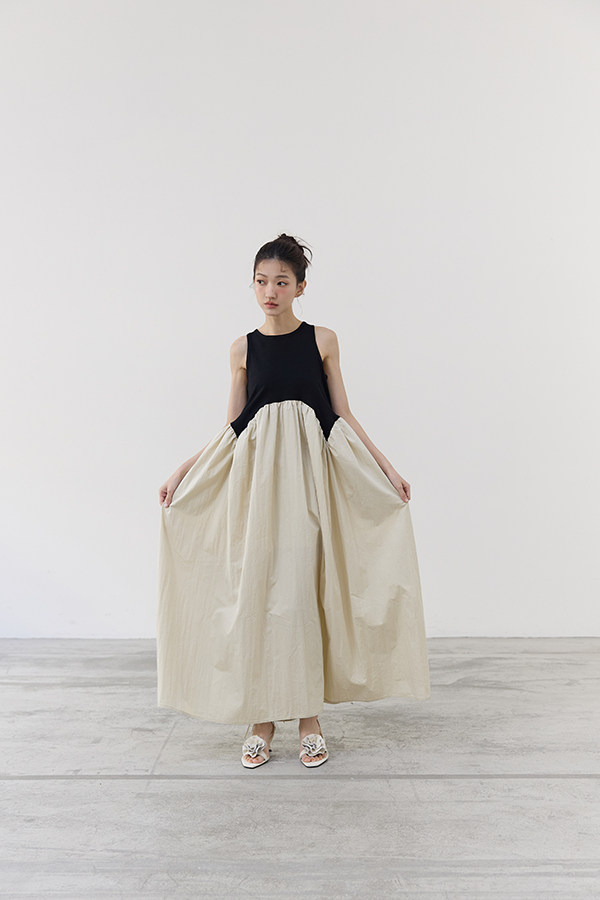 【ワンピース】レトロデザイン バイカラー アシンメトリー ノースリーブワンピース レディース 夏 キャミソール ロングドレス【SHシリーズ】