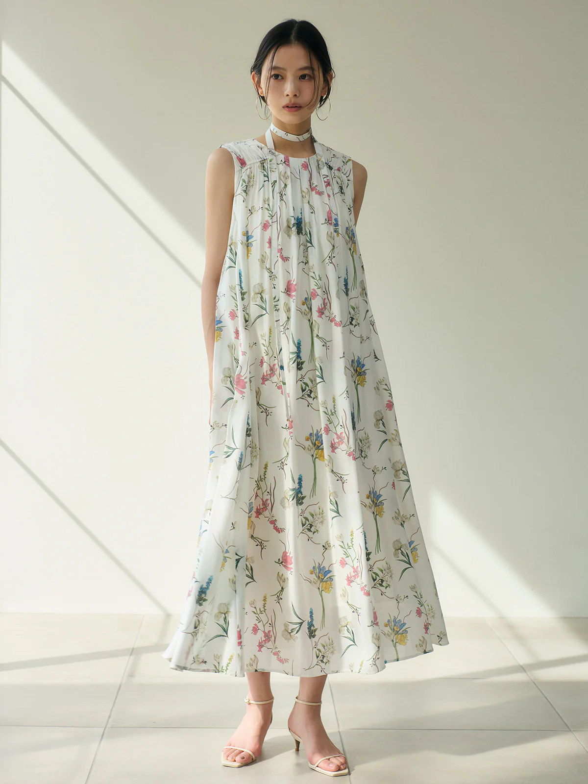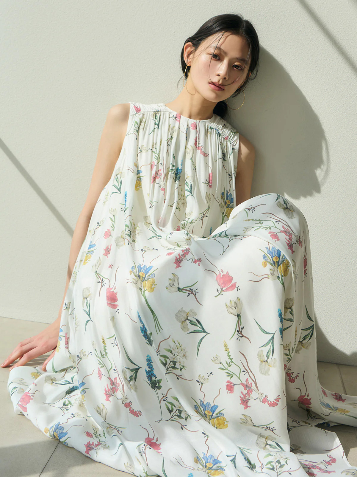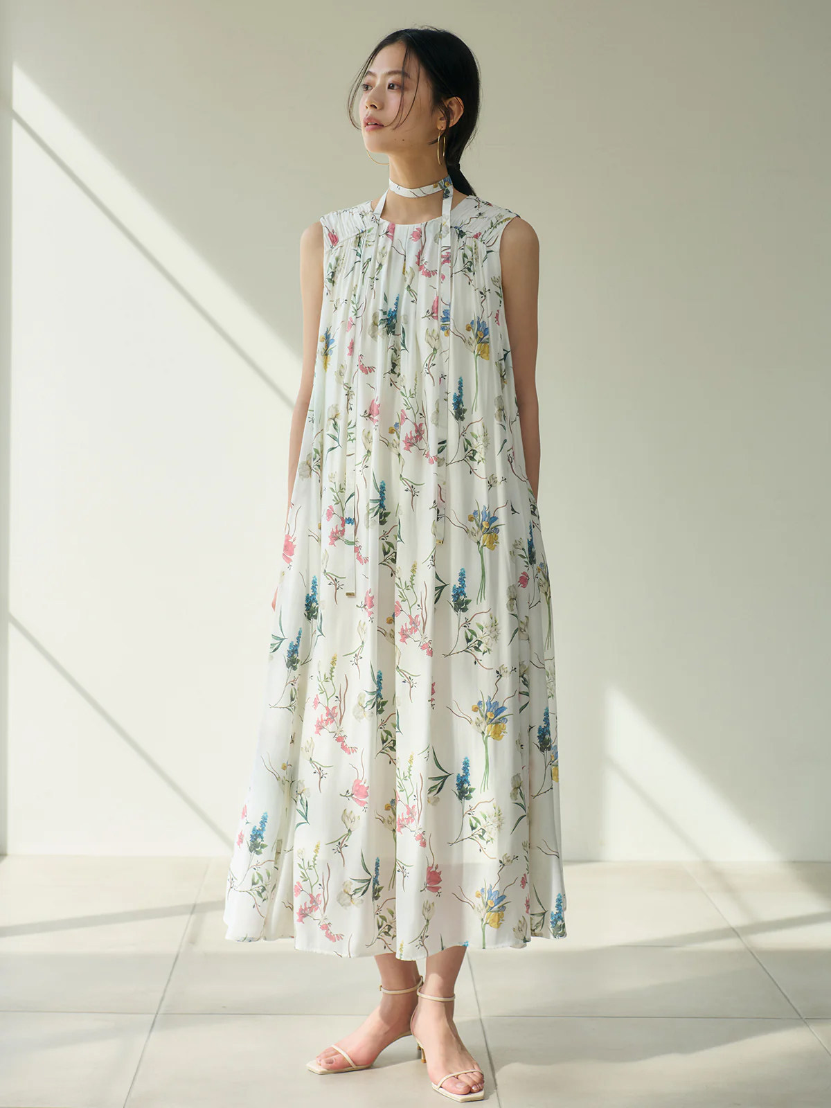 【ワンピース】レトロ花柄 プリーツデザイン ノースリーブワンピース レディース 夏 ゆったり ストレート ロングドレス【SHシリーズ】