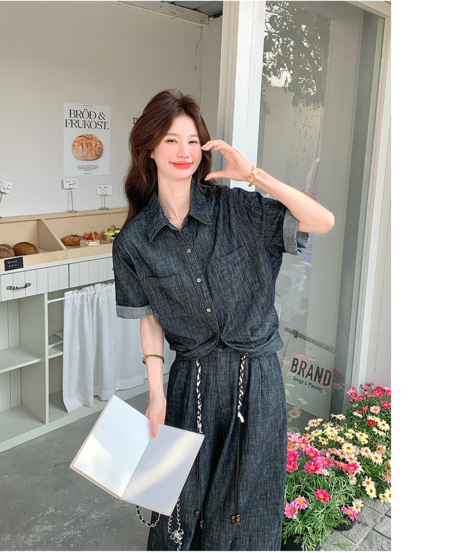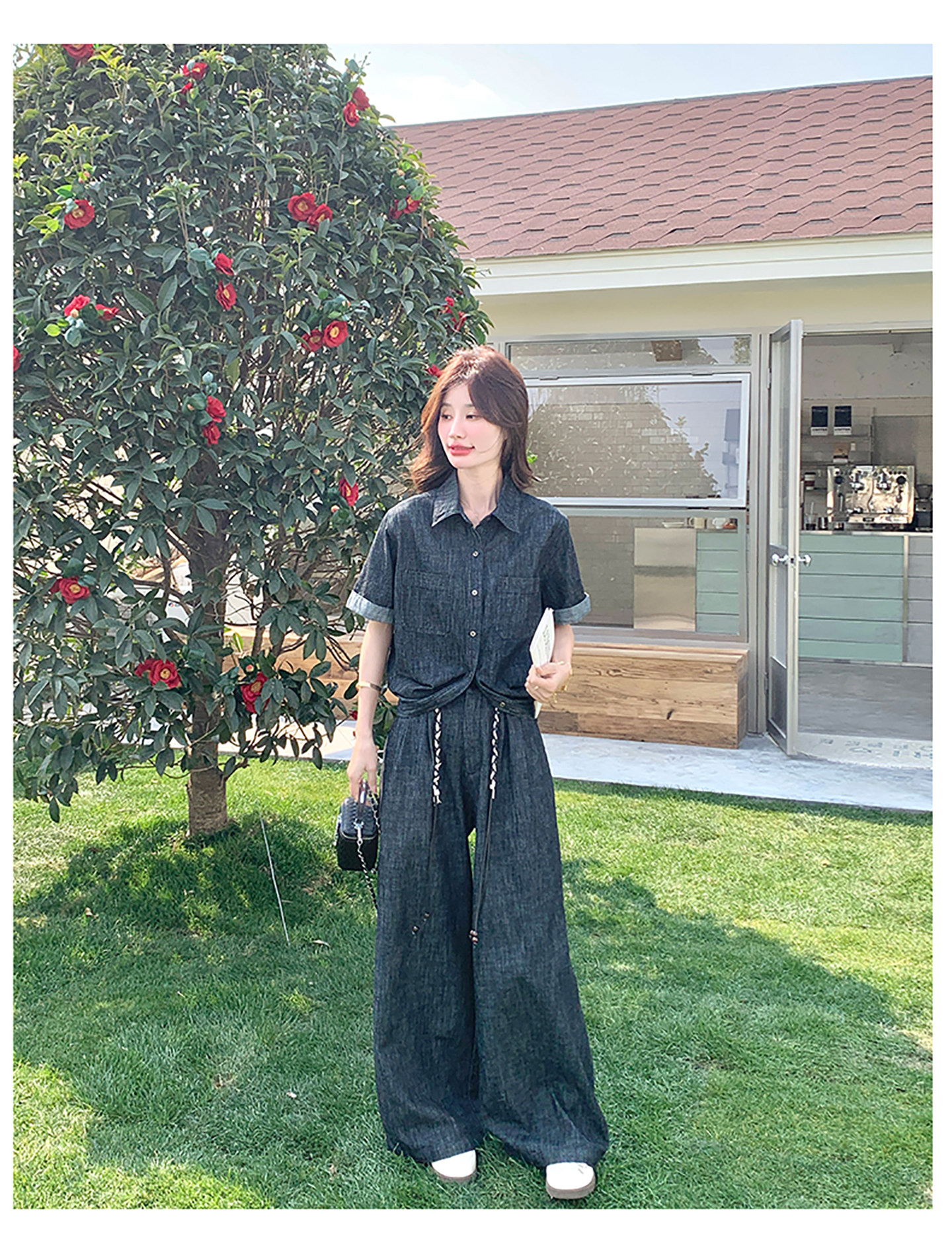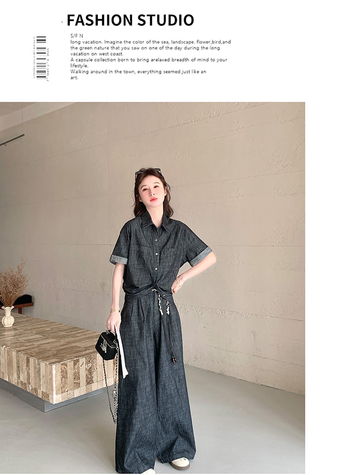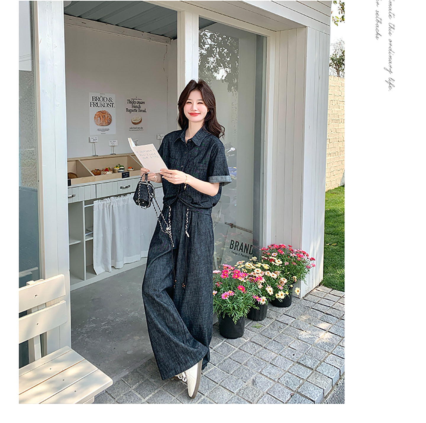 2点セット!【セットアップ】韓国風 ヴィンテージデニム シャツ+ワイドパンツ 上下セット ゆったり リラックス感 カジュアル【JZシリーズ】