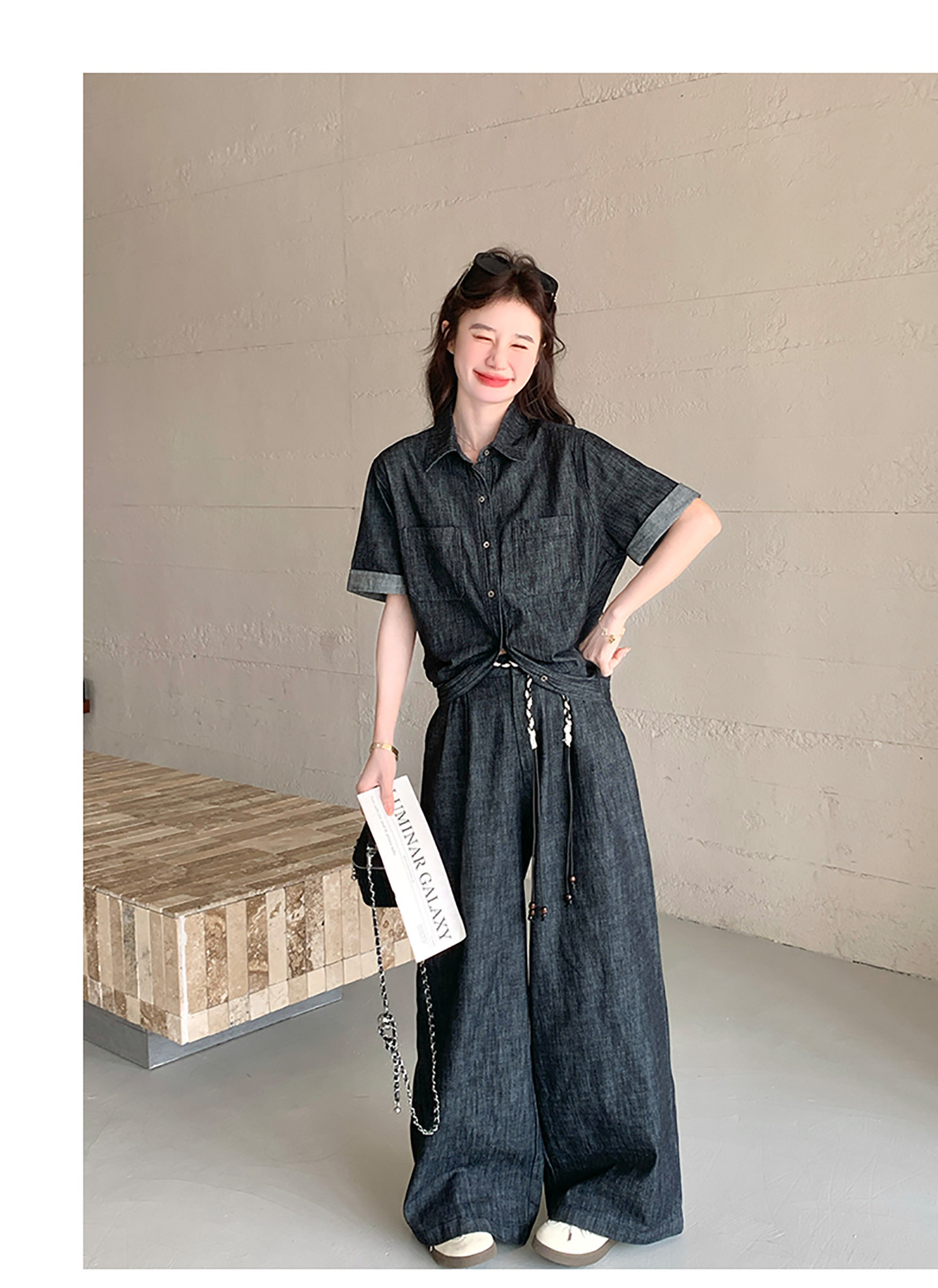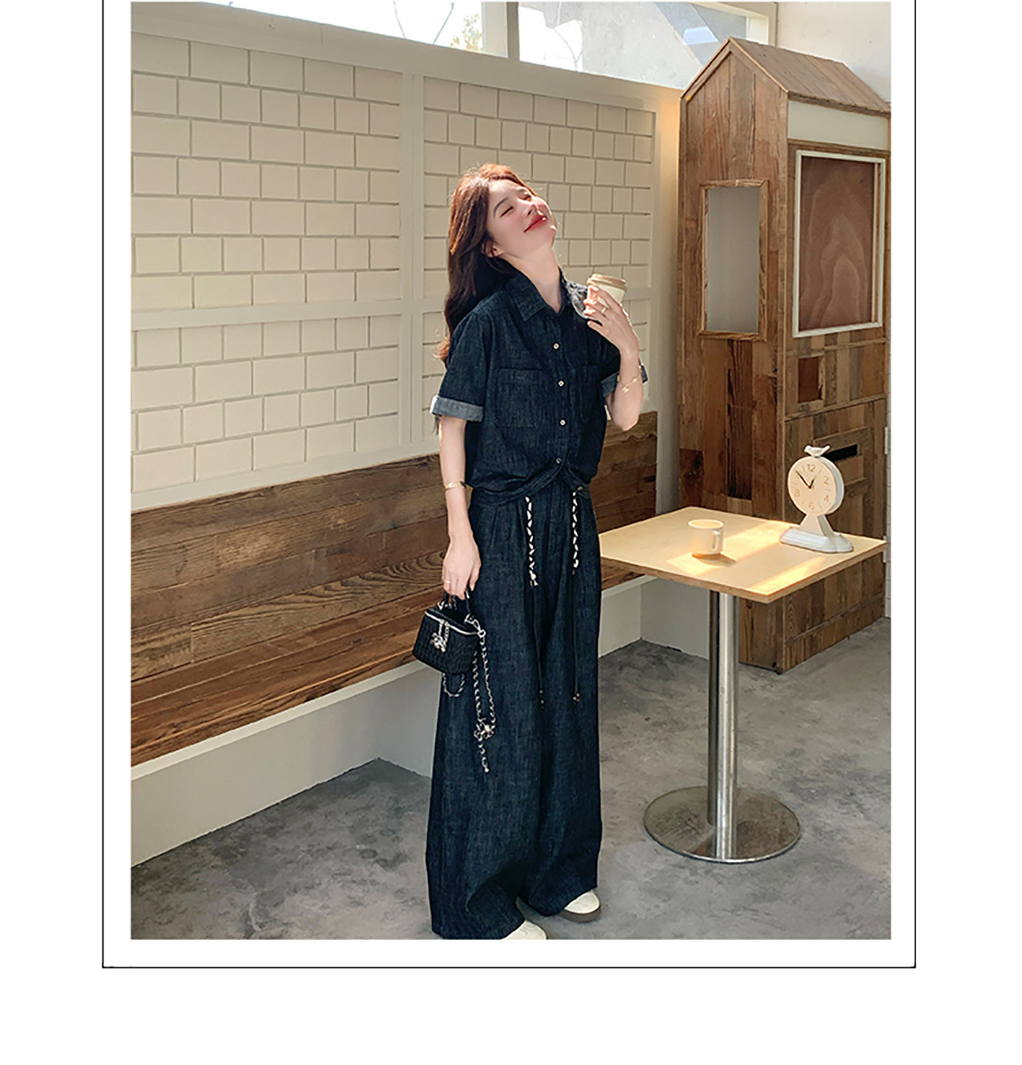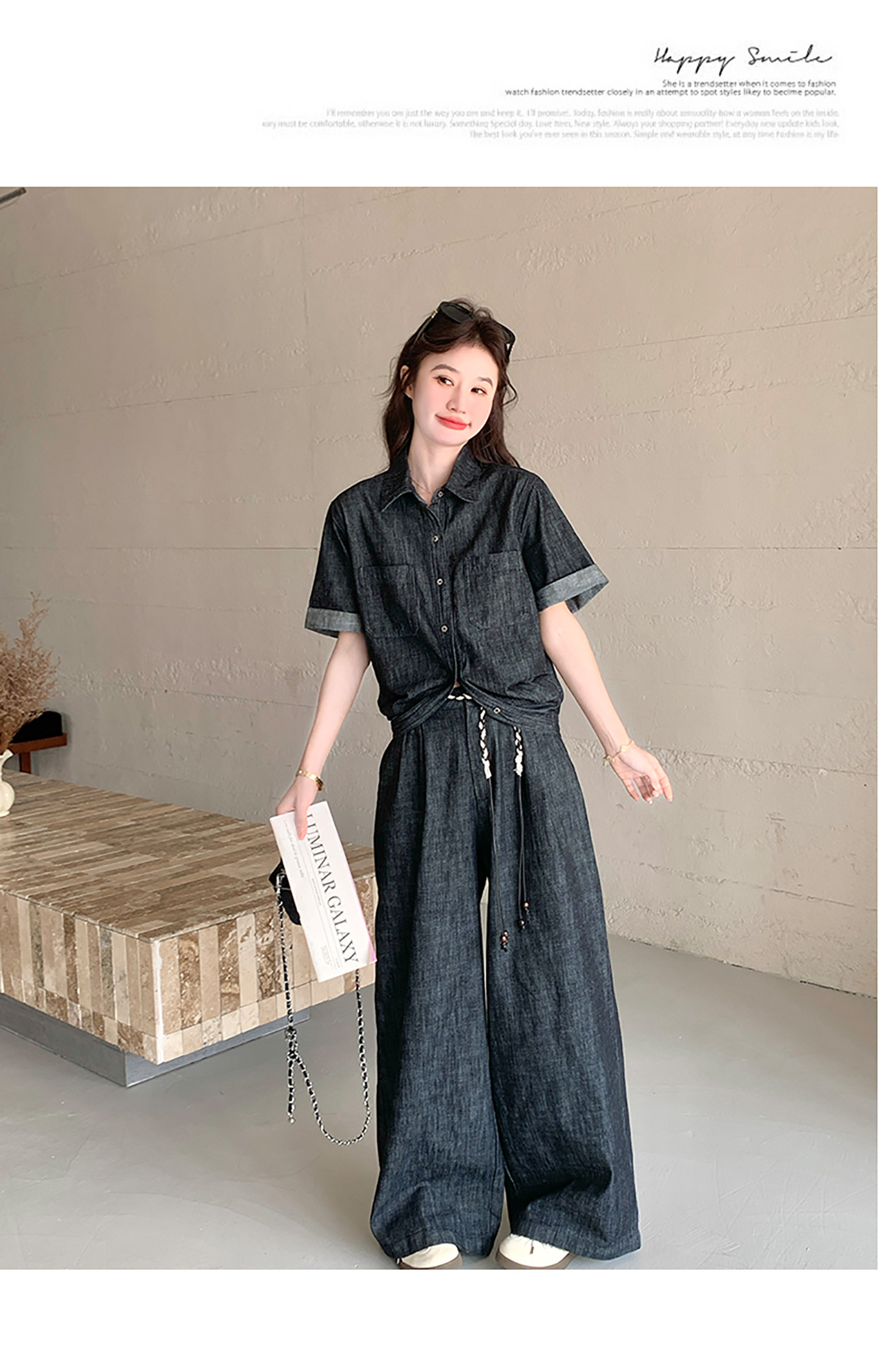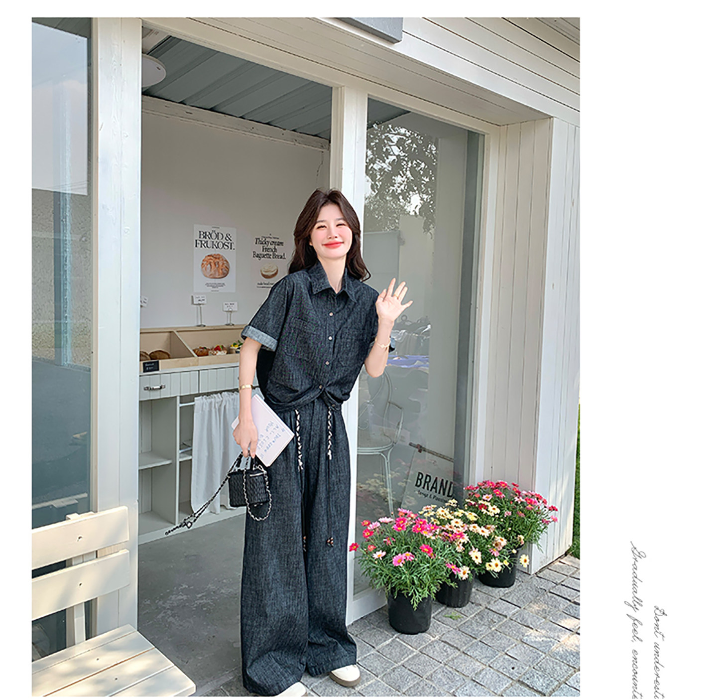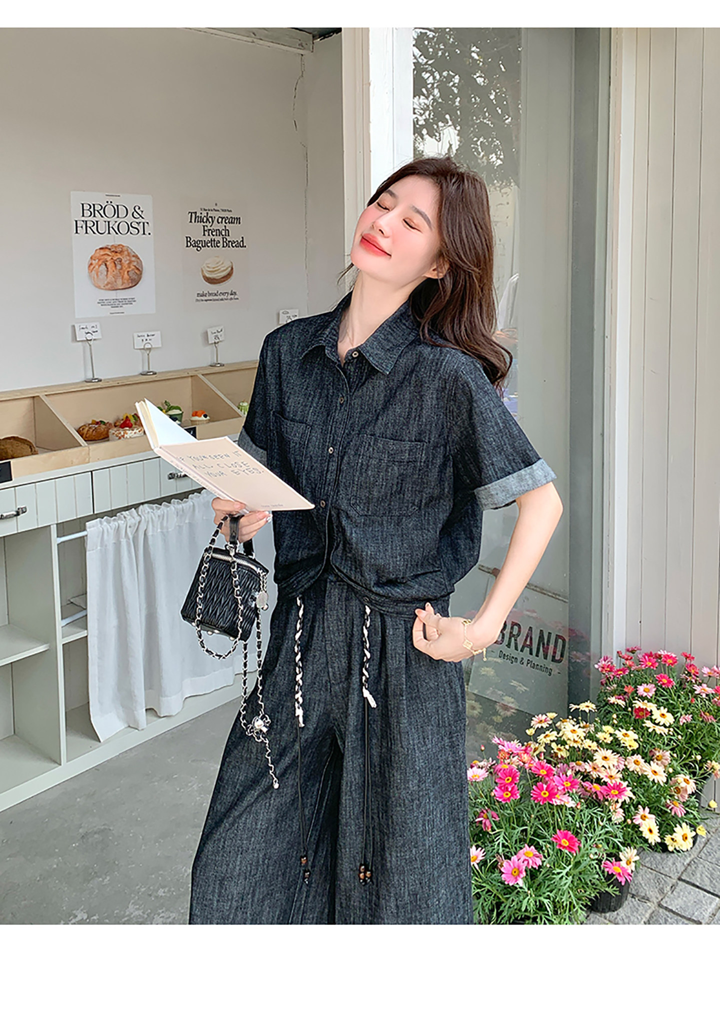 2点セット!【セットアップ】韓国風 ヴィンテージデニム シャツ+ワイドパンツ 上下セット ゆったり リラックス感 カジュアル【JZシリーズ】