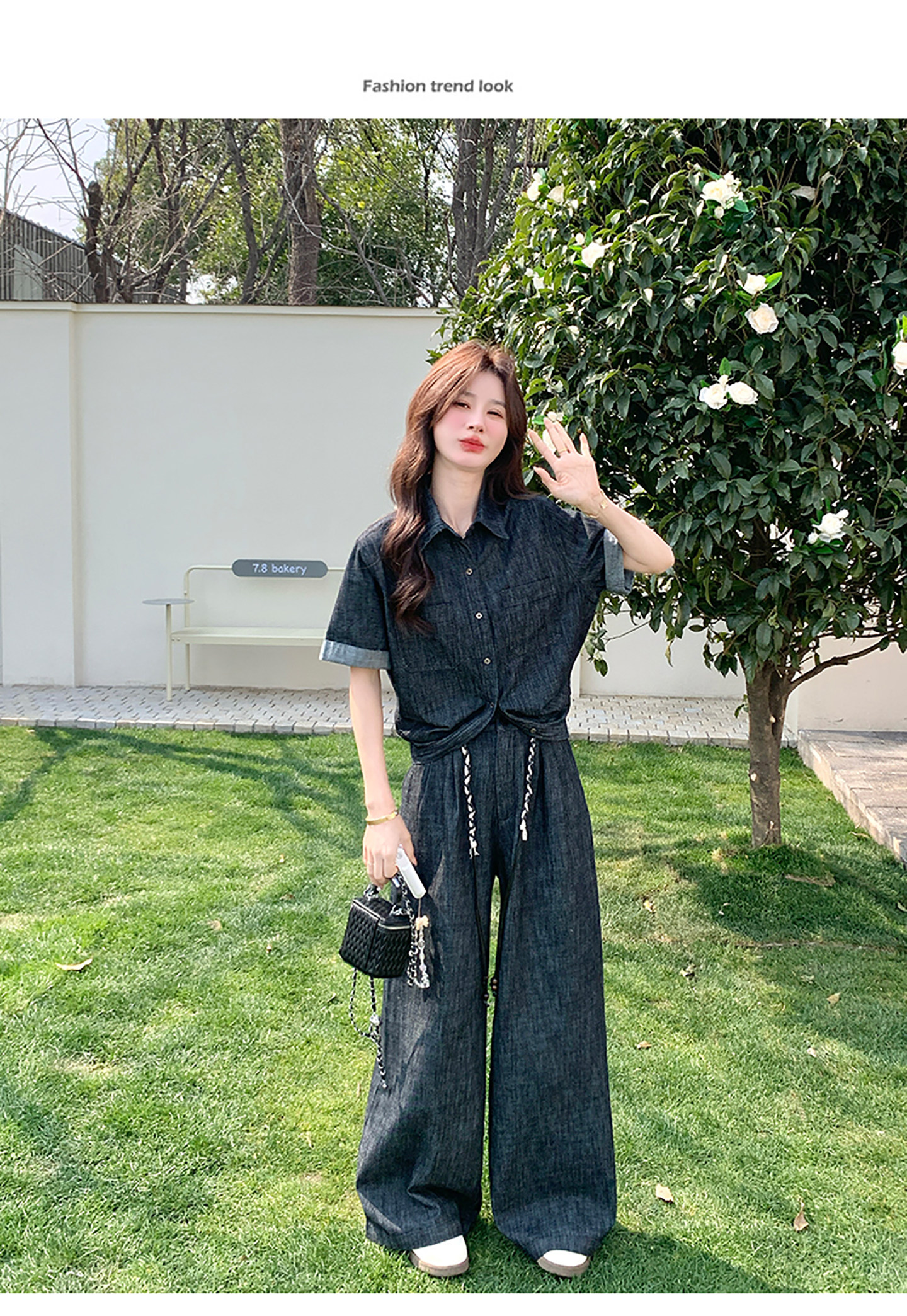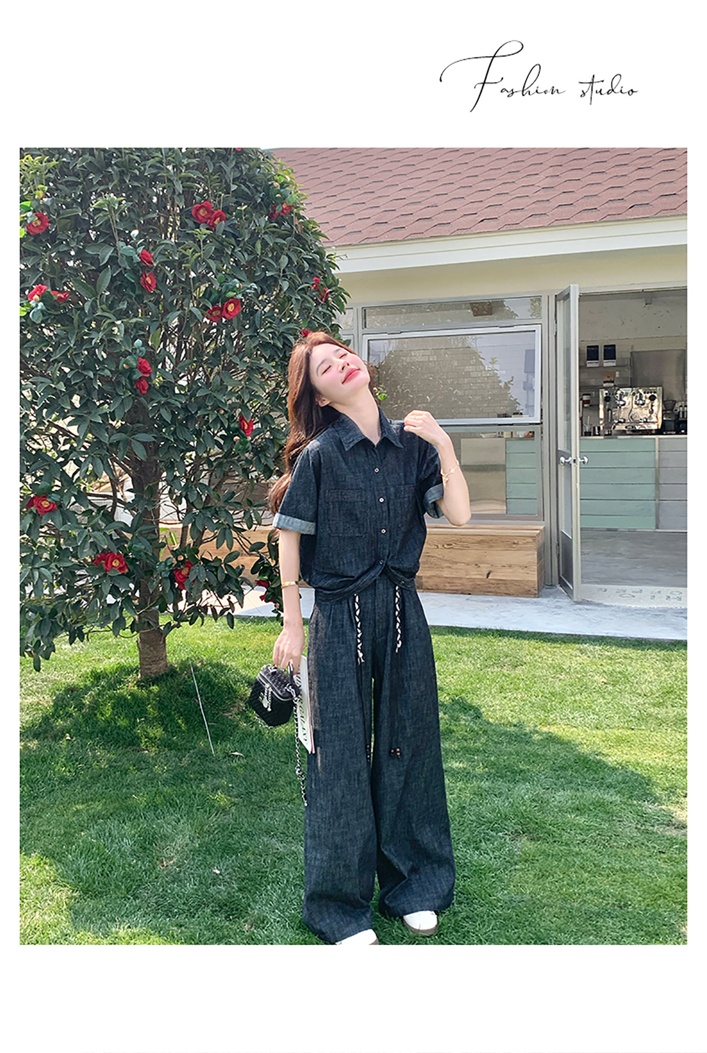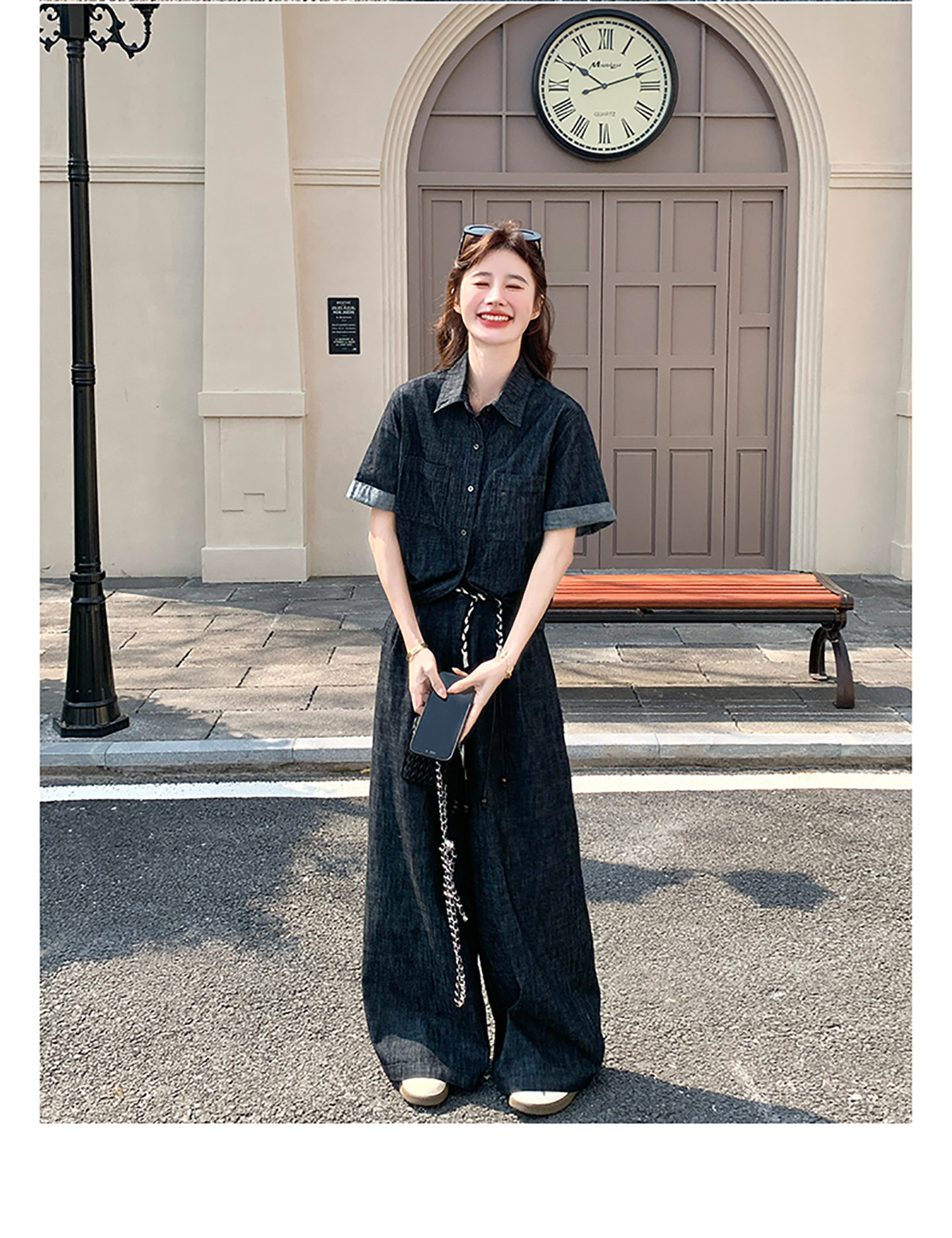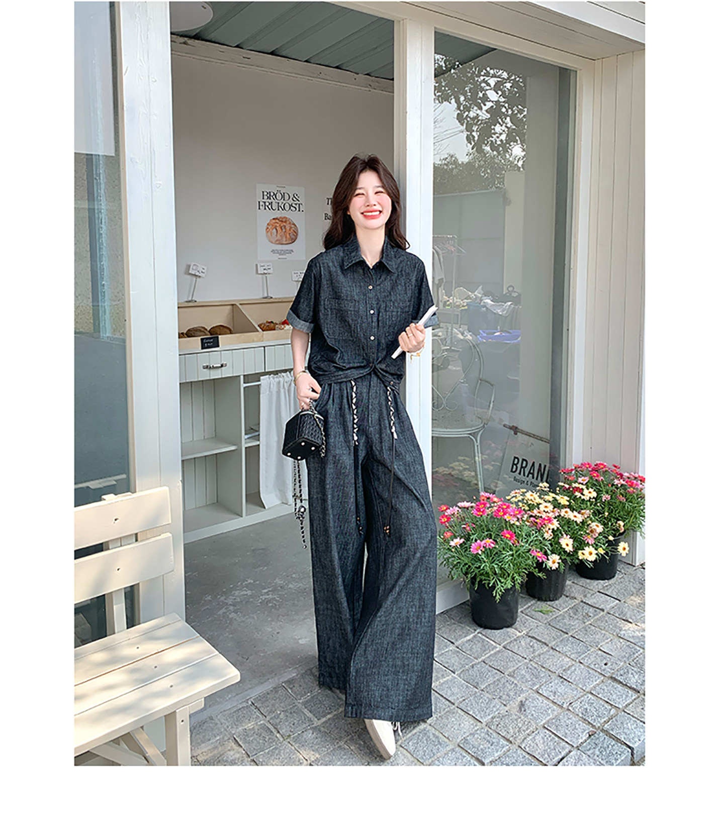 2点セット!【セットアップ】韓国風 ヴィンテージデニム シャツ+ワイドパンツ 上下セット ゆったり リラックス感 カジュアル【JZシリーズ】