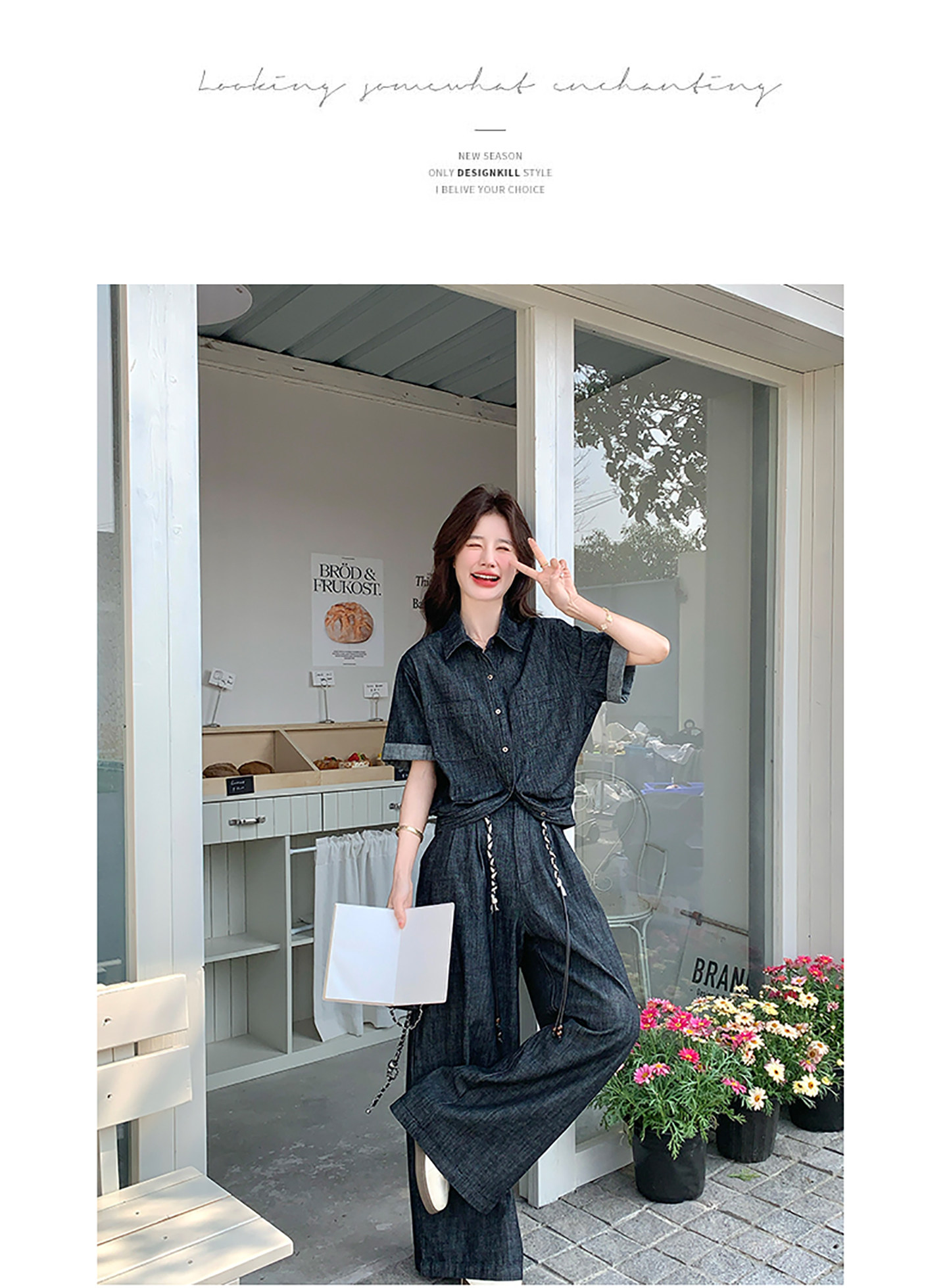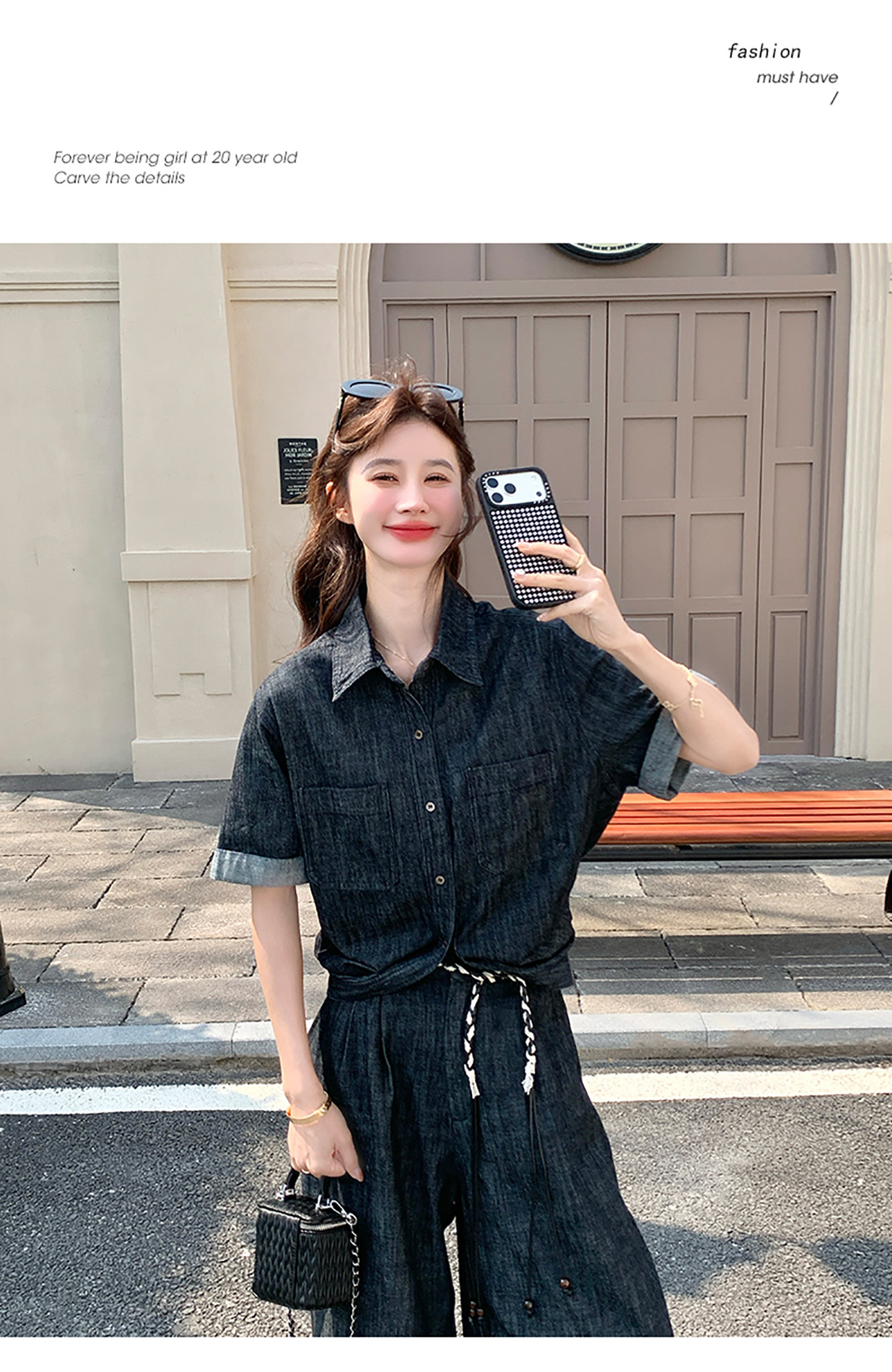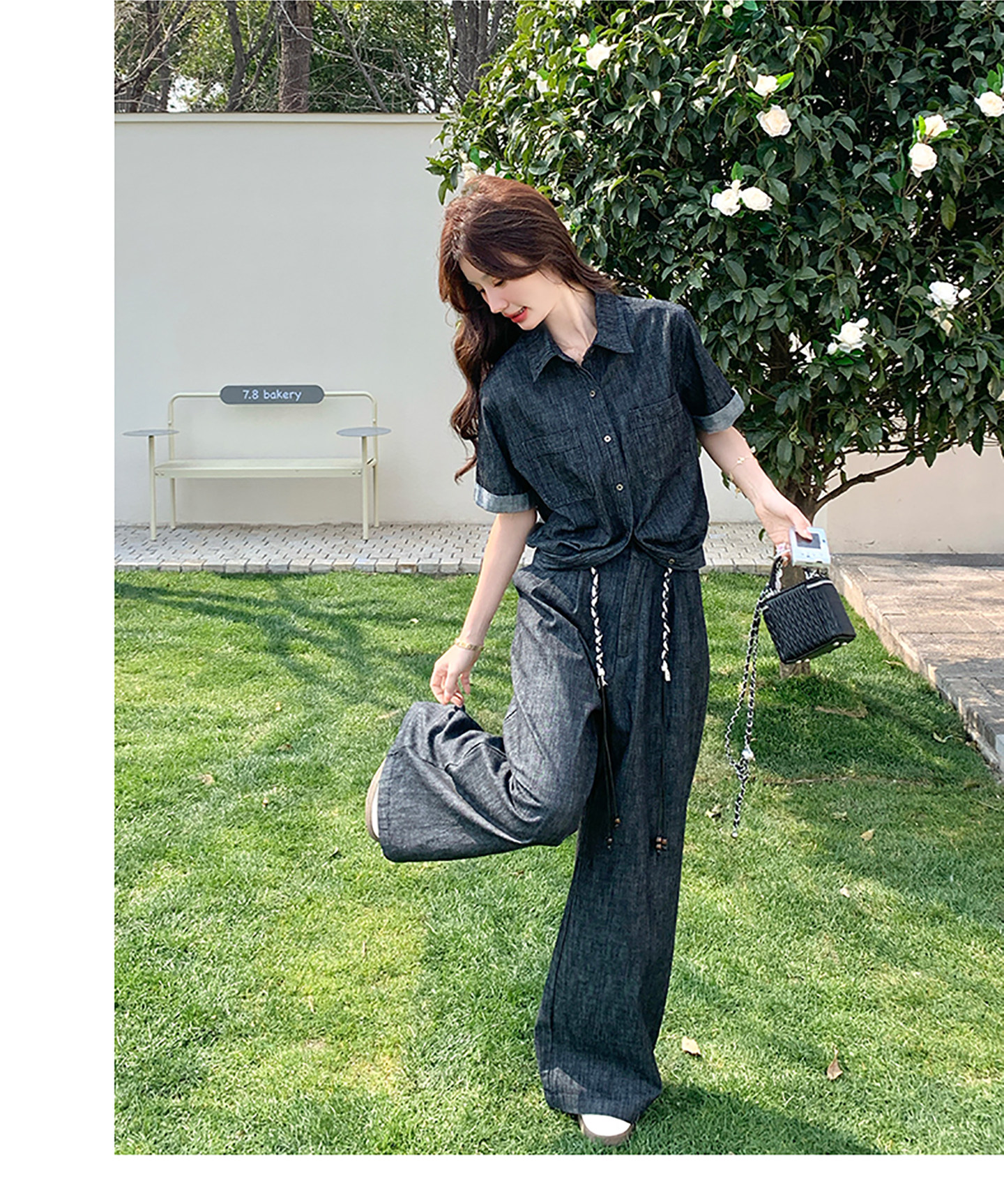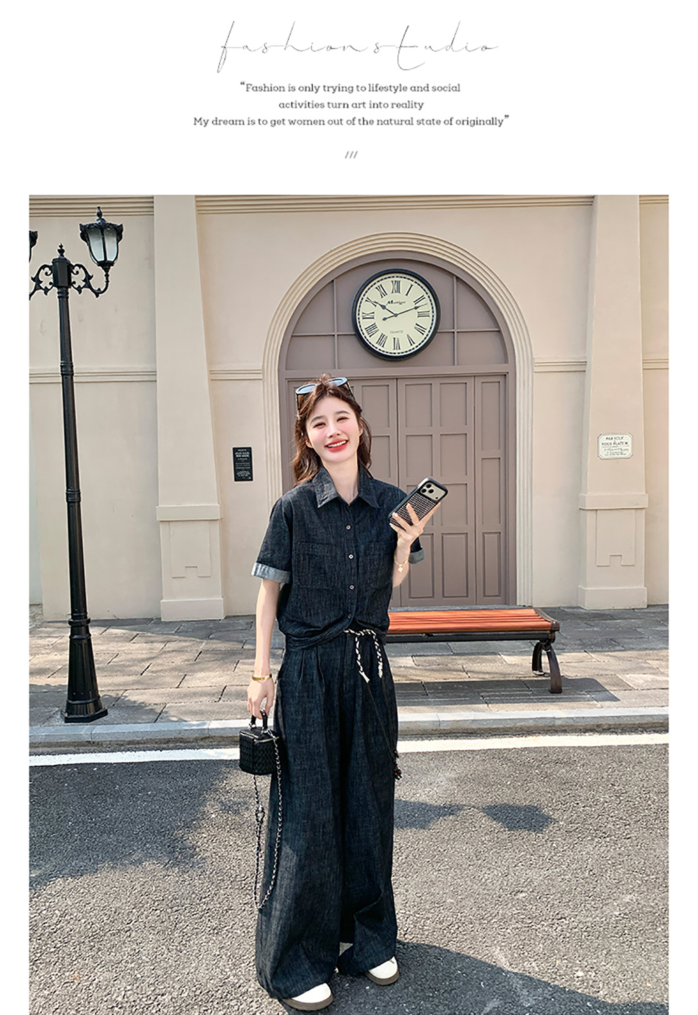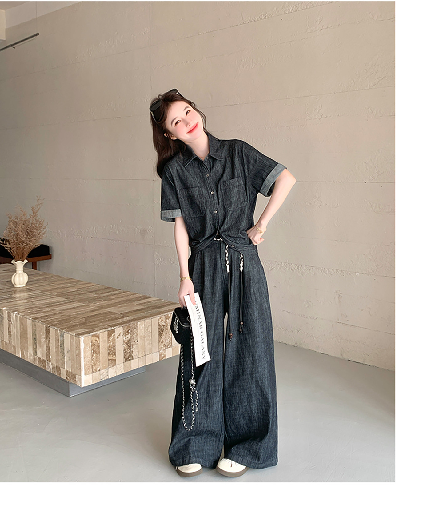 2点セット!【セットアップ】韓国風 ヴィンテージデニム シャツ+ワイドパンツ 上下セット ゆったり リラックス感 カジュアル【JZシリーズ】