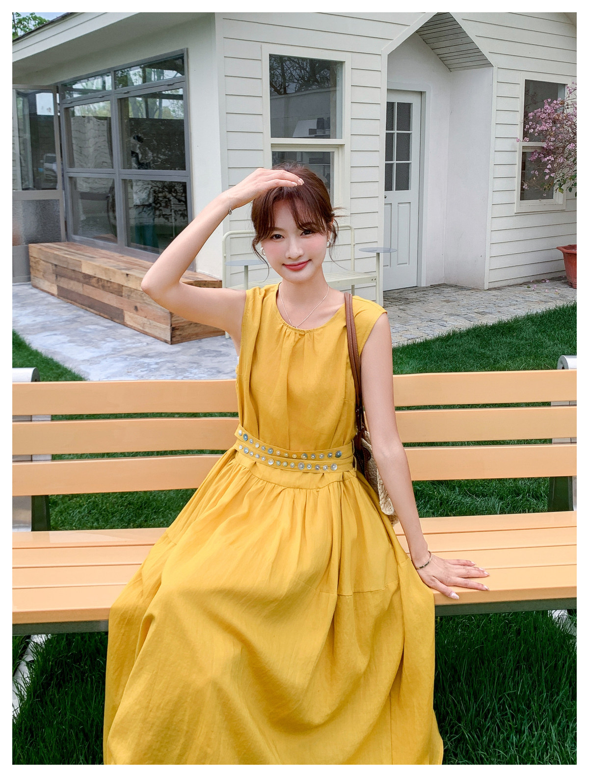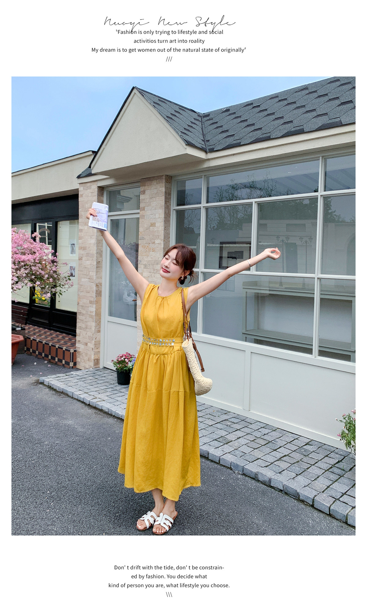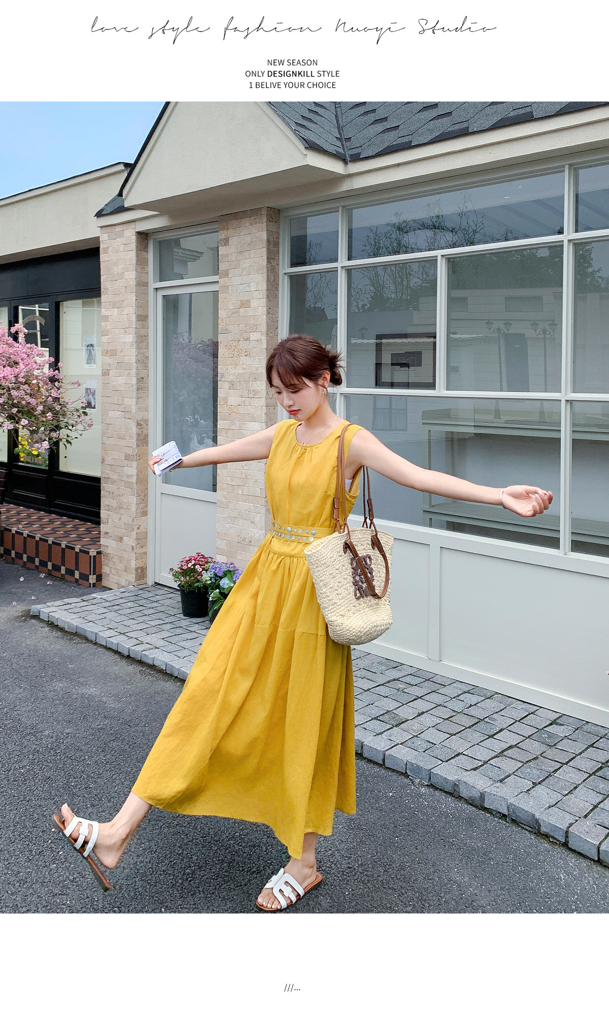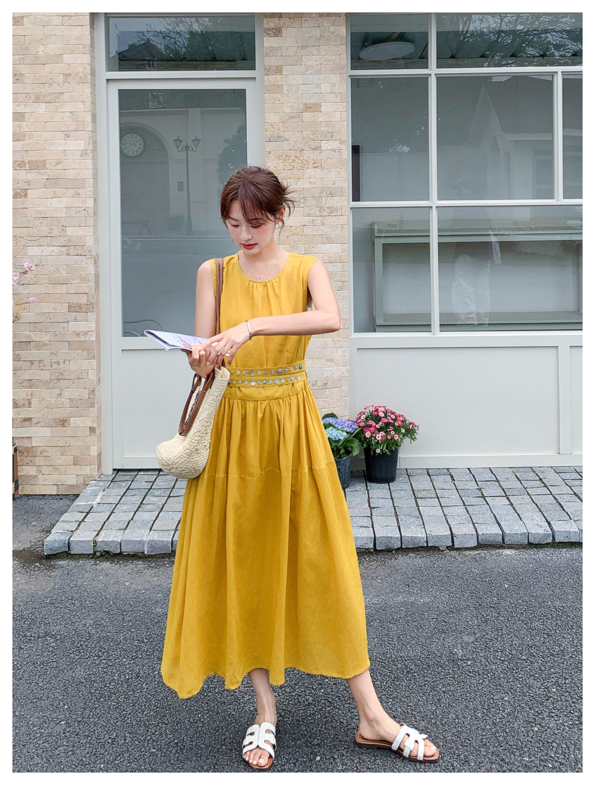 【商品名】【ワンピース】ノースリーブ ワンピース レディース 夏 フレンチ風 ウエストマーク ロングワンピース 細見え 上品 フェミニン【JZシリーズ】