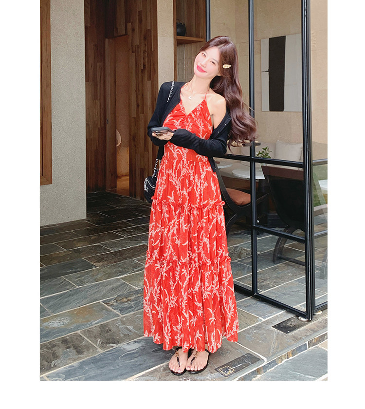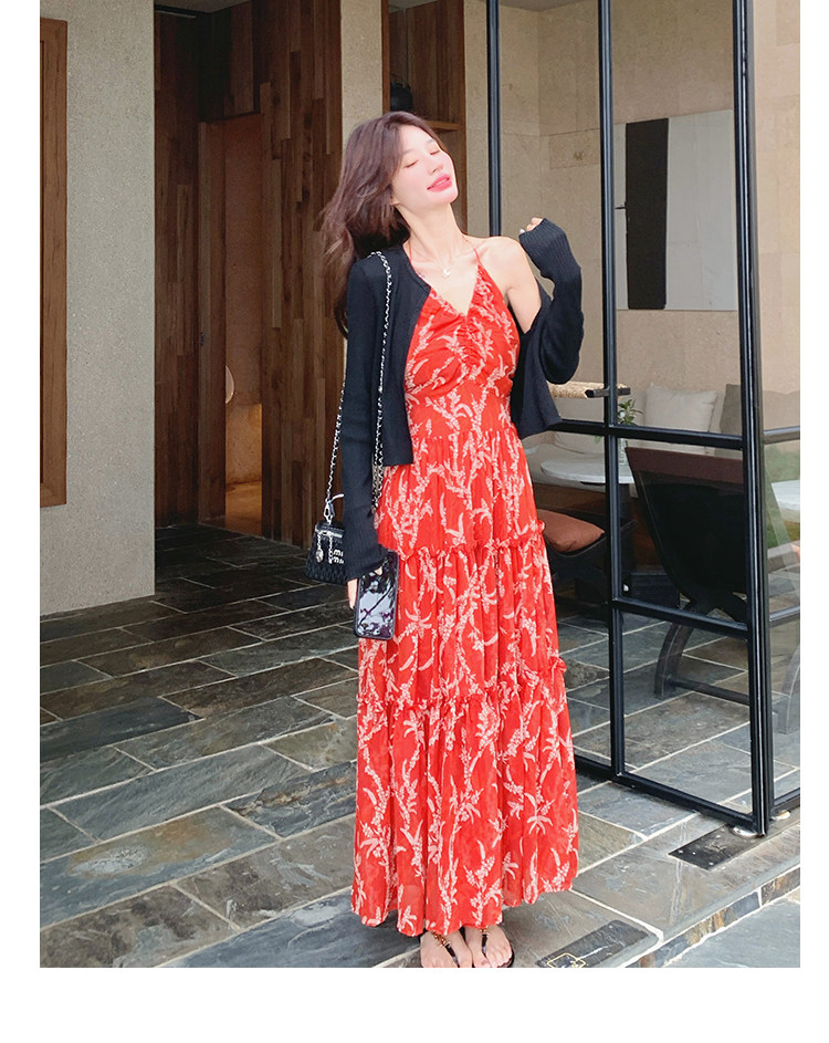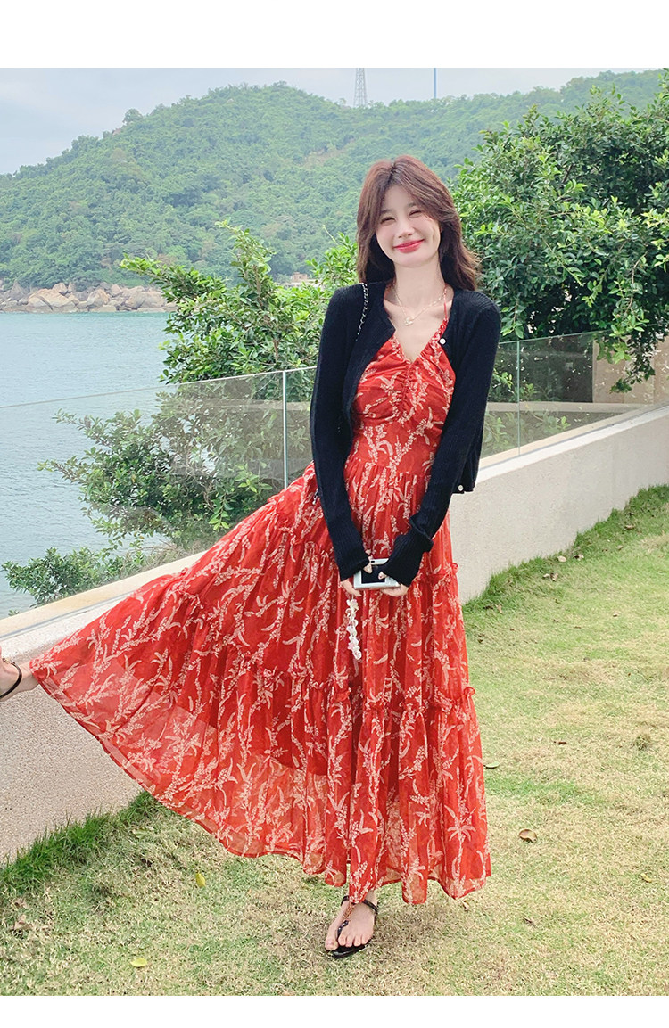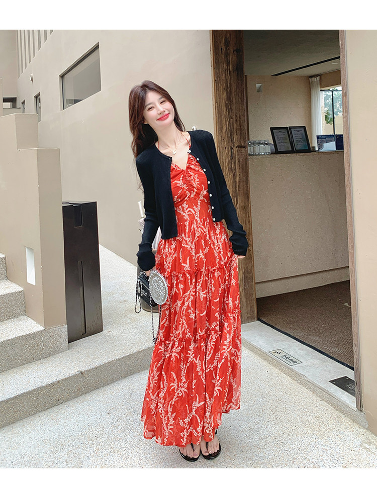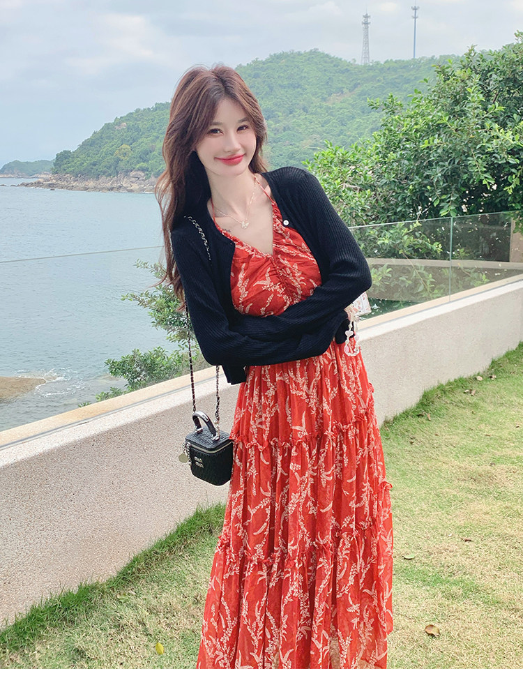 2点セット!【セットアップ】カーディガン+キャミワンピース セットアップ レディース 夏 フラワープリント ロングワンピース リゾート UV対策 2点セット【SHシリーズ】