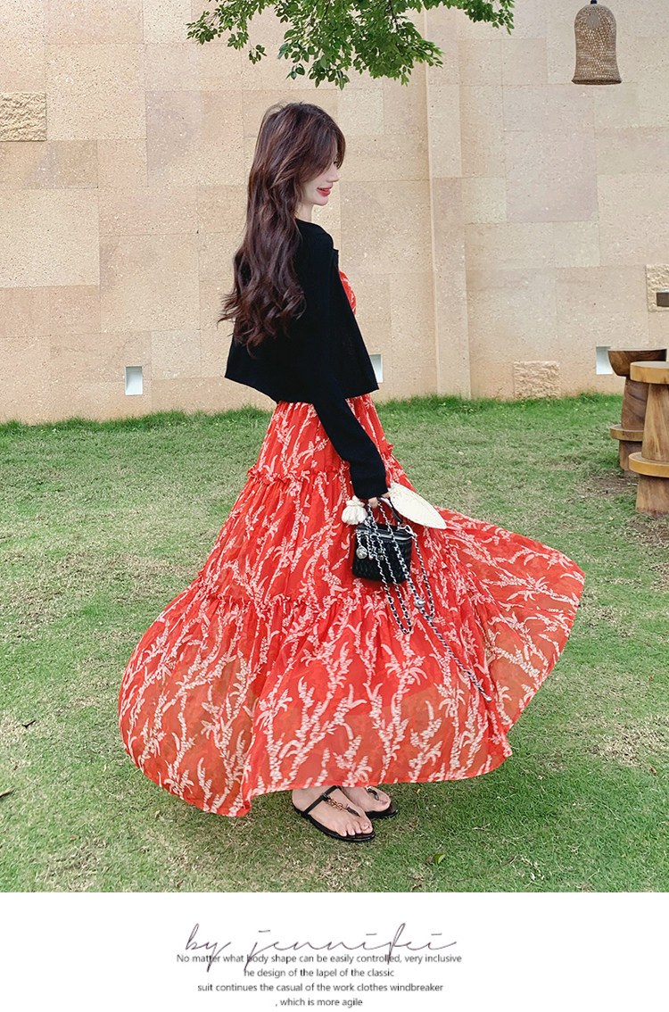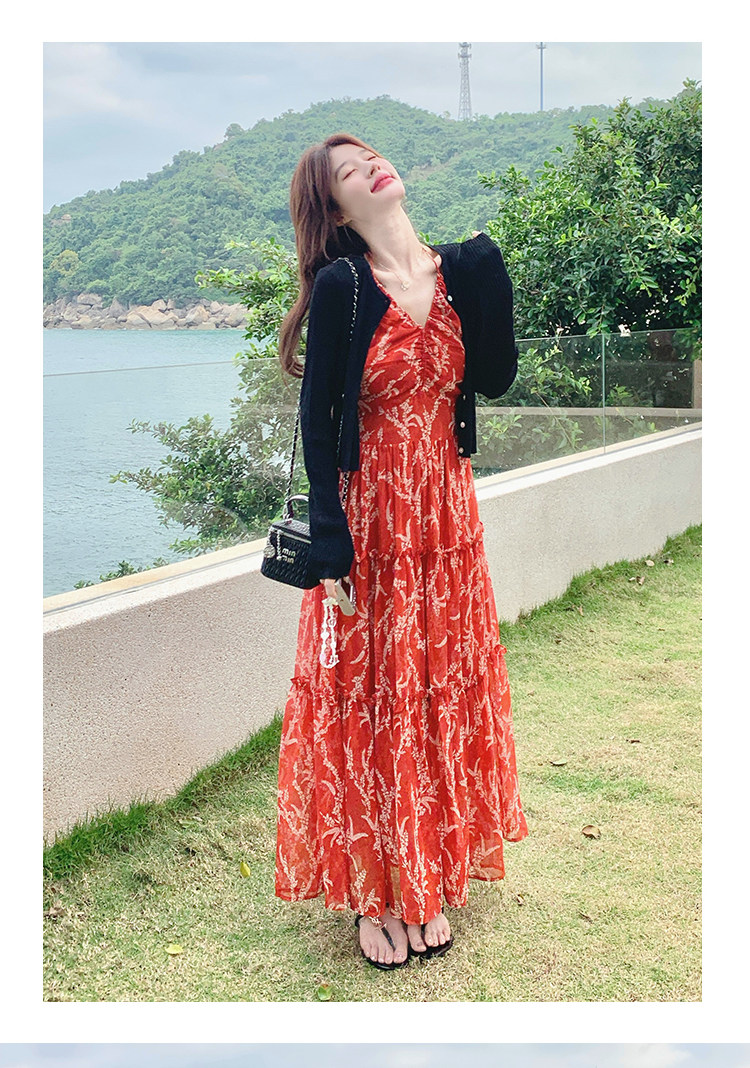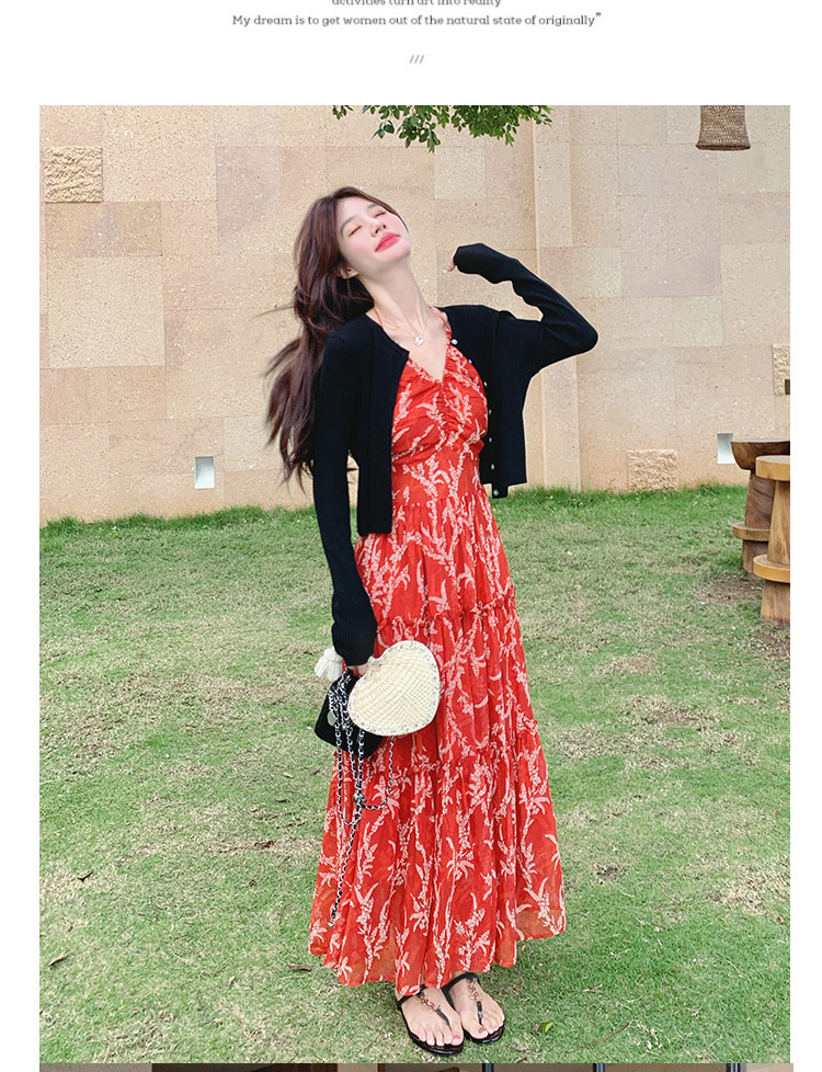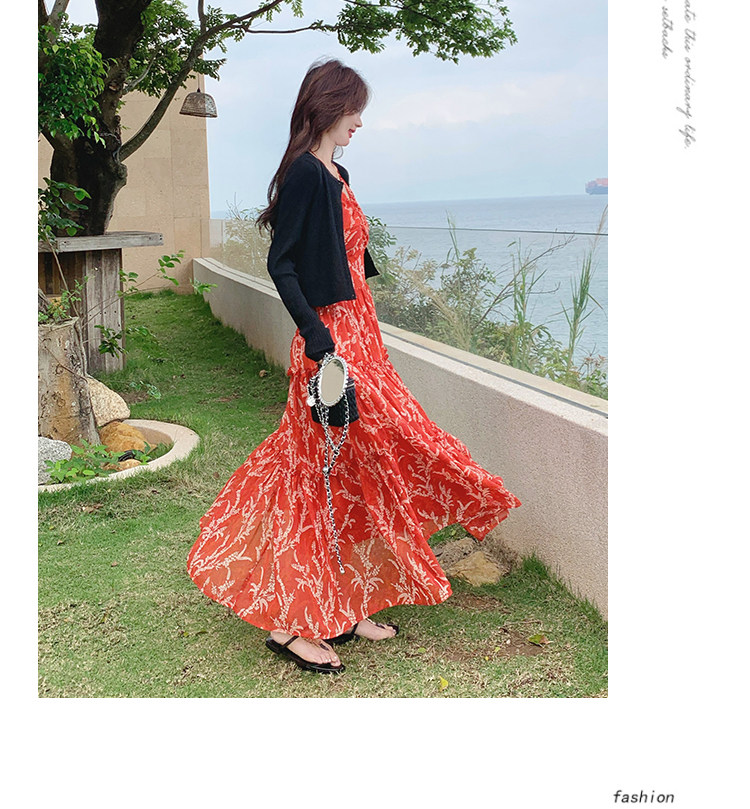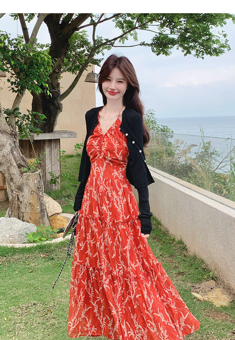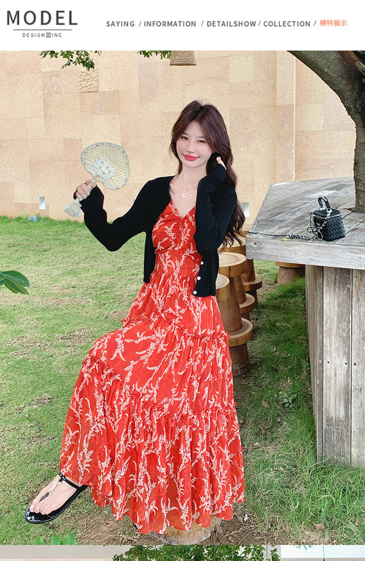 【商品名】2点セット!【セットアップ】カーディガン+キャミワンピース セットアップ レディース 夏 フラワープリント ロングワンピース リゾート UV対策 2点セット【SHシリーズ】