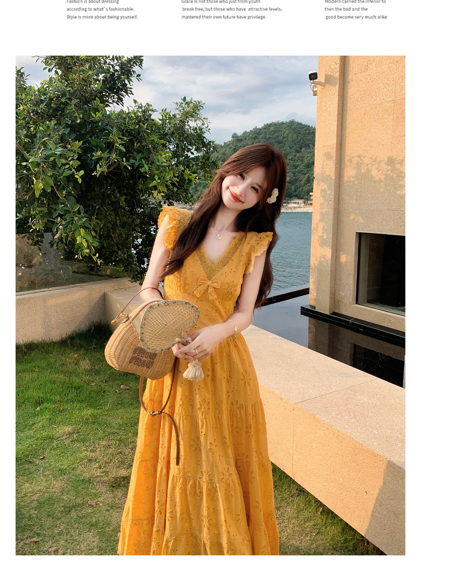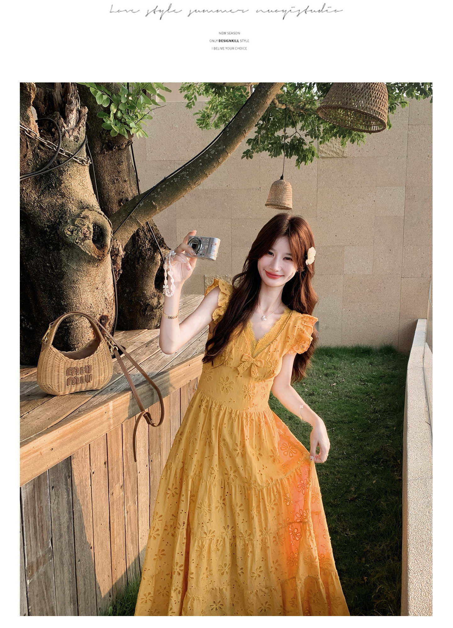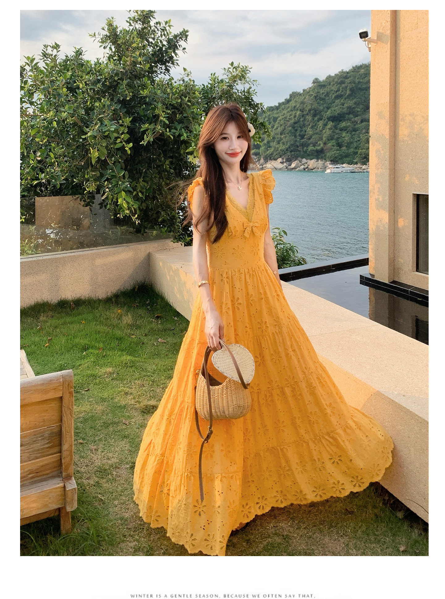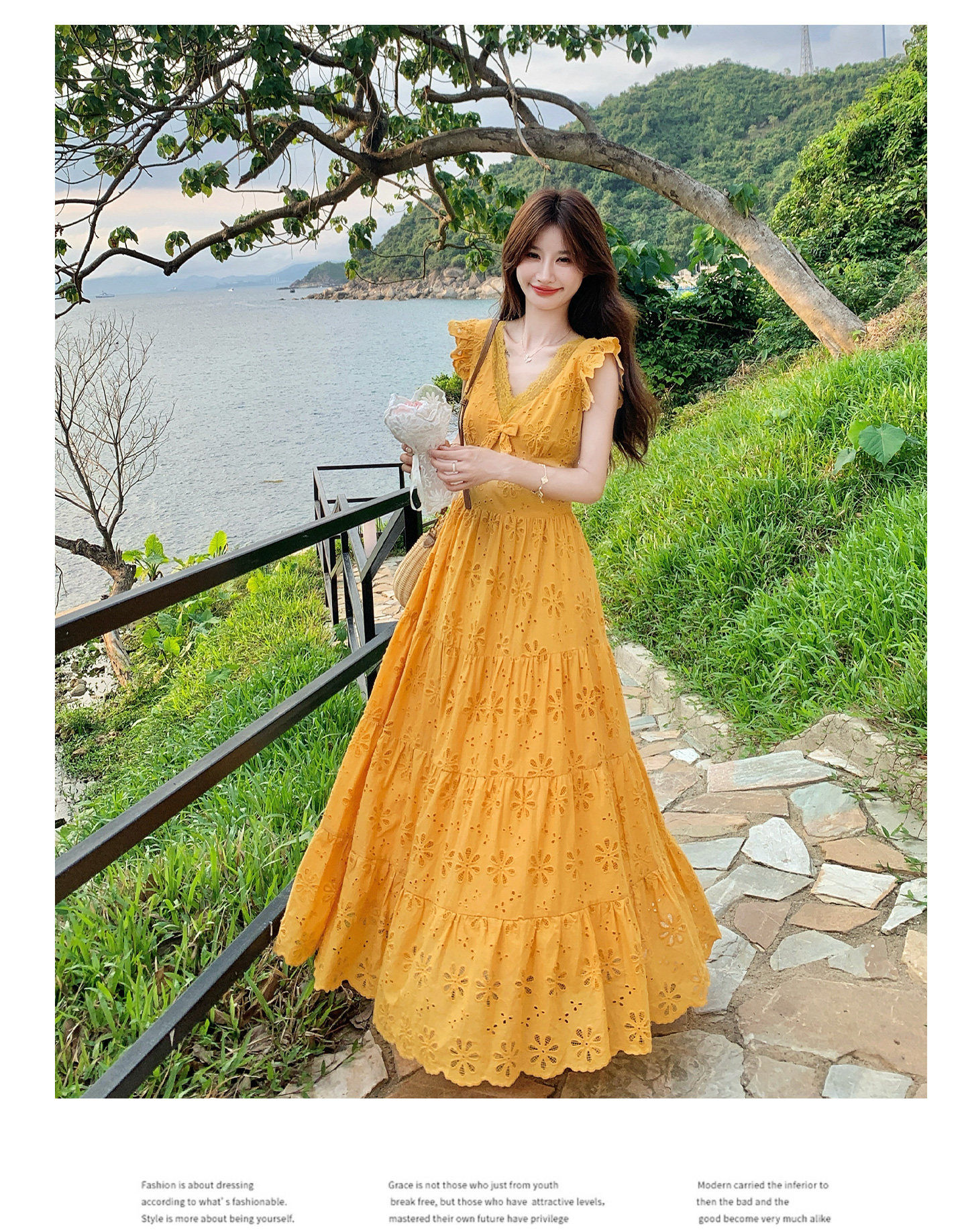 【商品名】【ワンピース】フレンチロマン オレンジ Vネック カットワーク刺繍 フレアワンピース レディース ノースリーブ 夏 大人可愛い リゾートコーデ ゆったり【JZシリーズ】