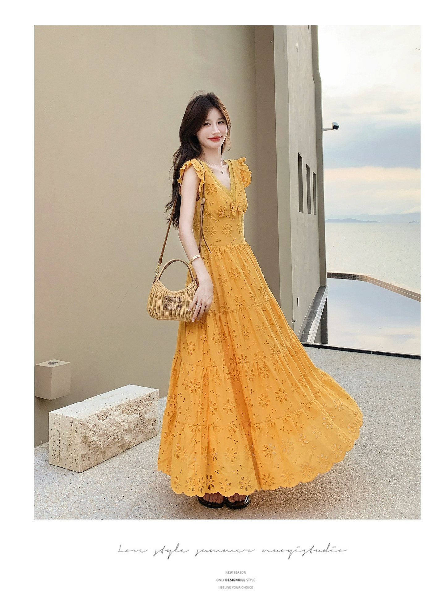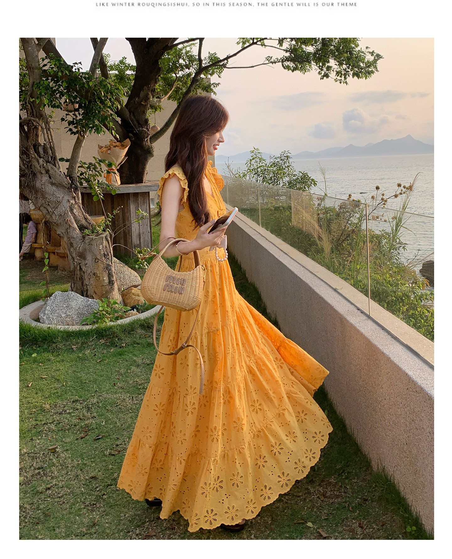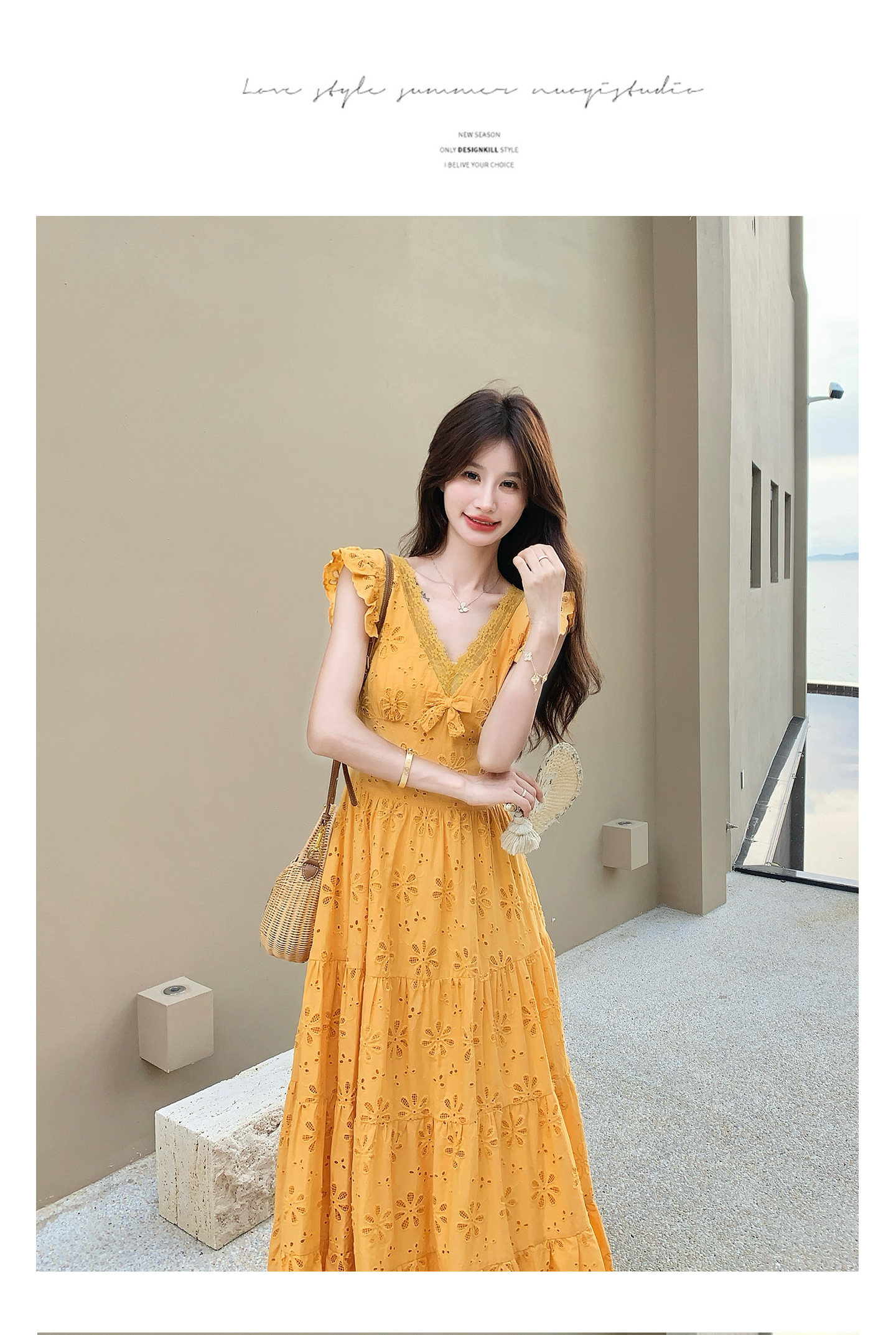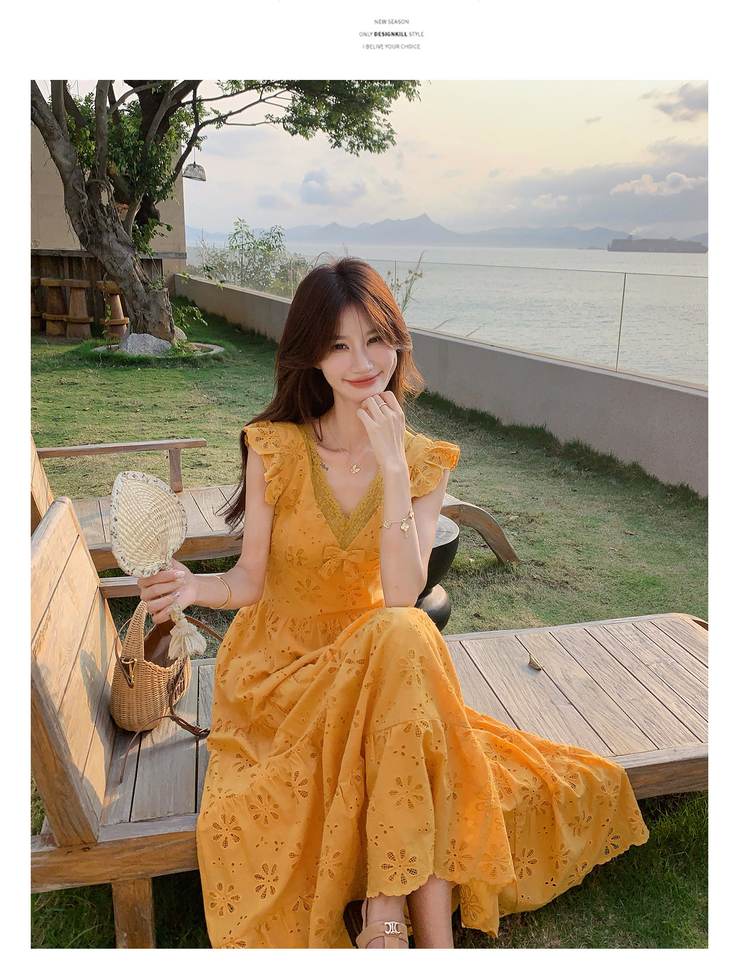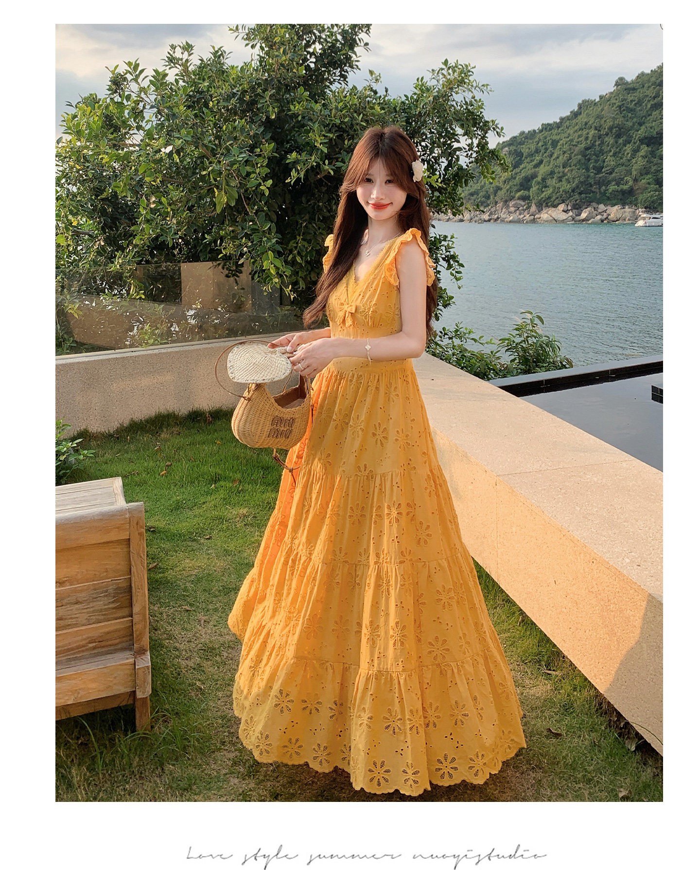 【商品名】【ワンピース】フレンチロマン オレンジ Vネック カットワーク刺繍 フレアワンピース レディース ノースリーブ 夏 大人可愛い リゾートコーデ ゆったり【JZシリーズ】