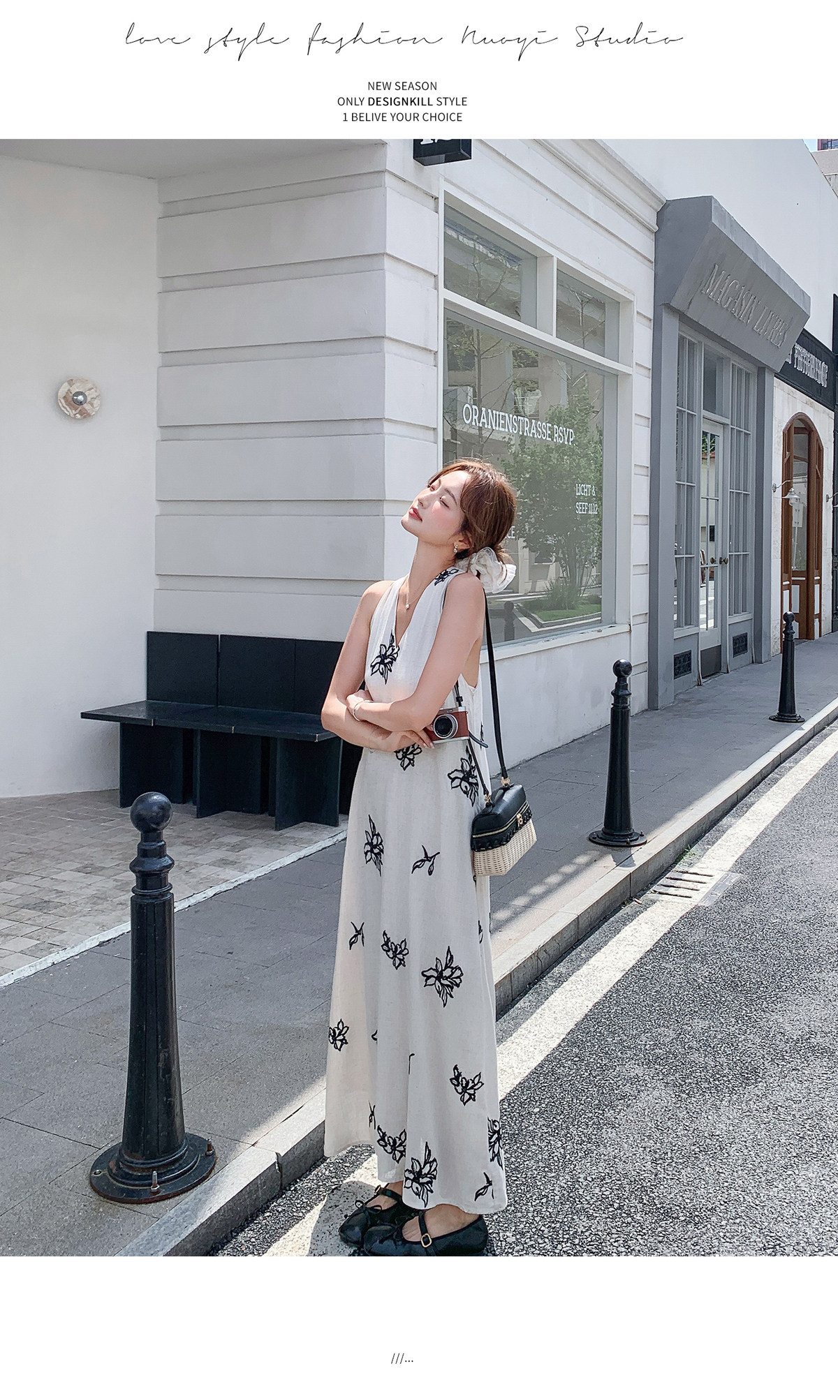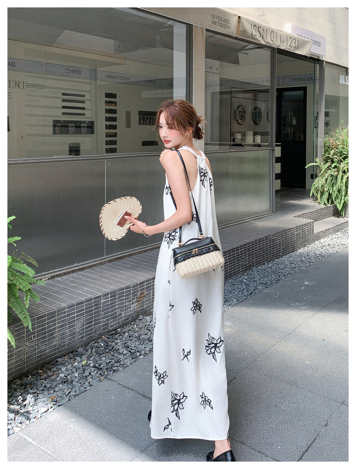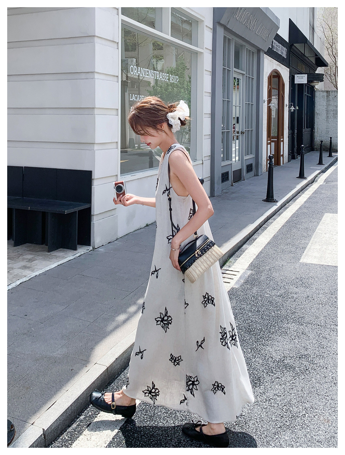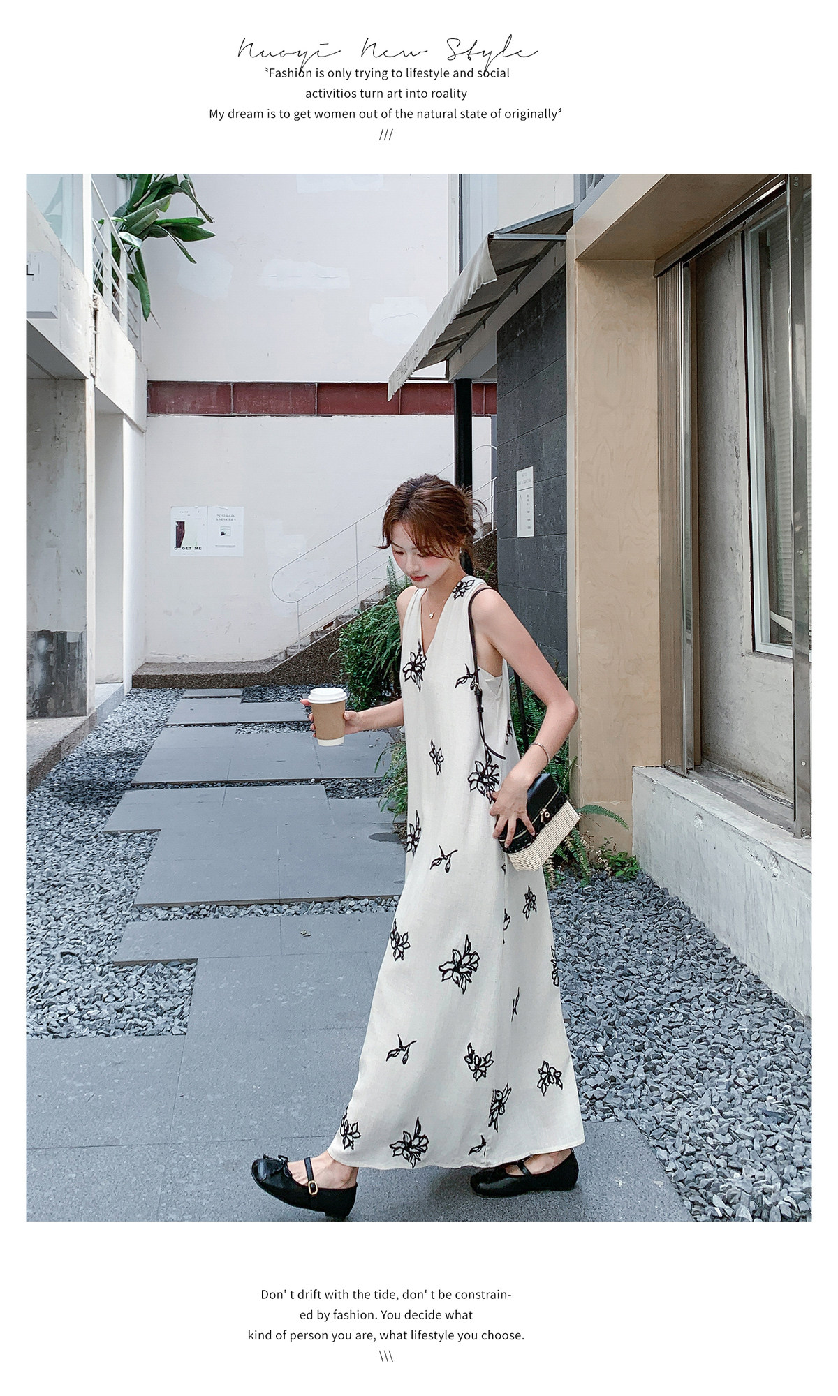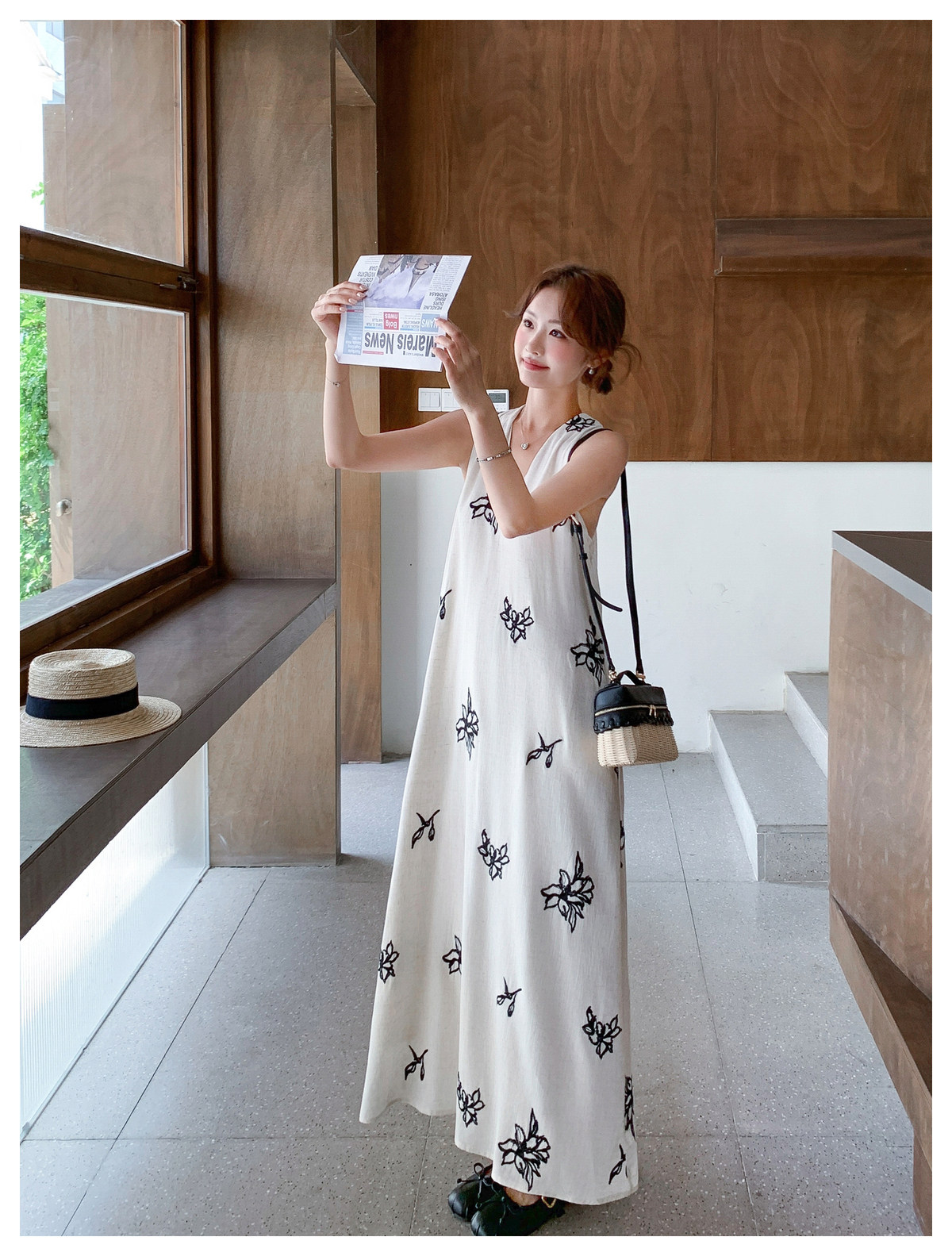 【ワンピース】フレンチ風 刺繍 Vネック ノースリーブワンピース レディース 夏 ロングワンピース リゾート 上品 フェミニン【SHシリーズ】