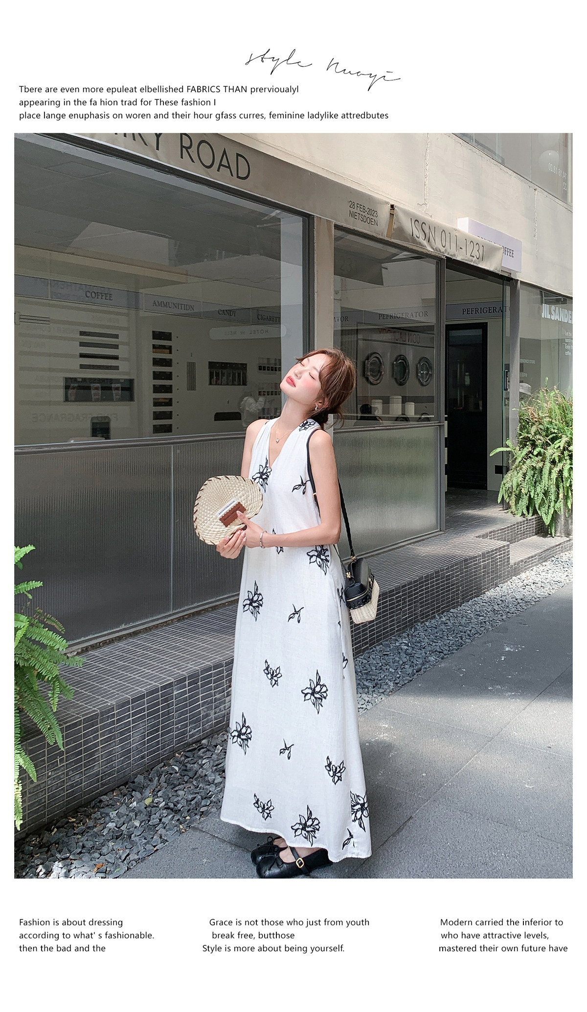 【商品名】【ワンピース】フレンチ風 刺繍 Vネック ノースリーブワンピース レディース 夏 ロングワンピース リゾート 上品 フェミニン【SHシリーズ】