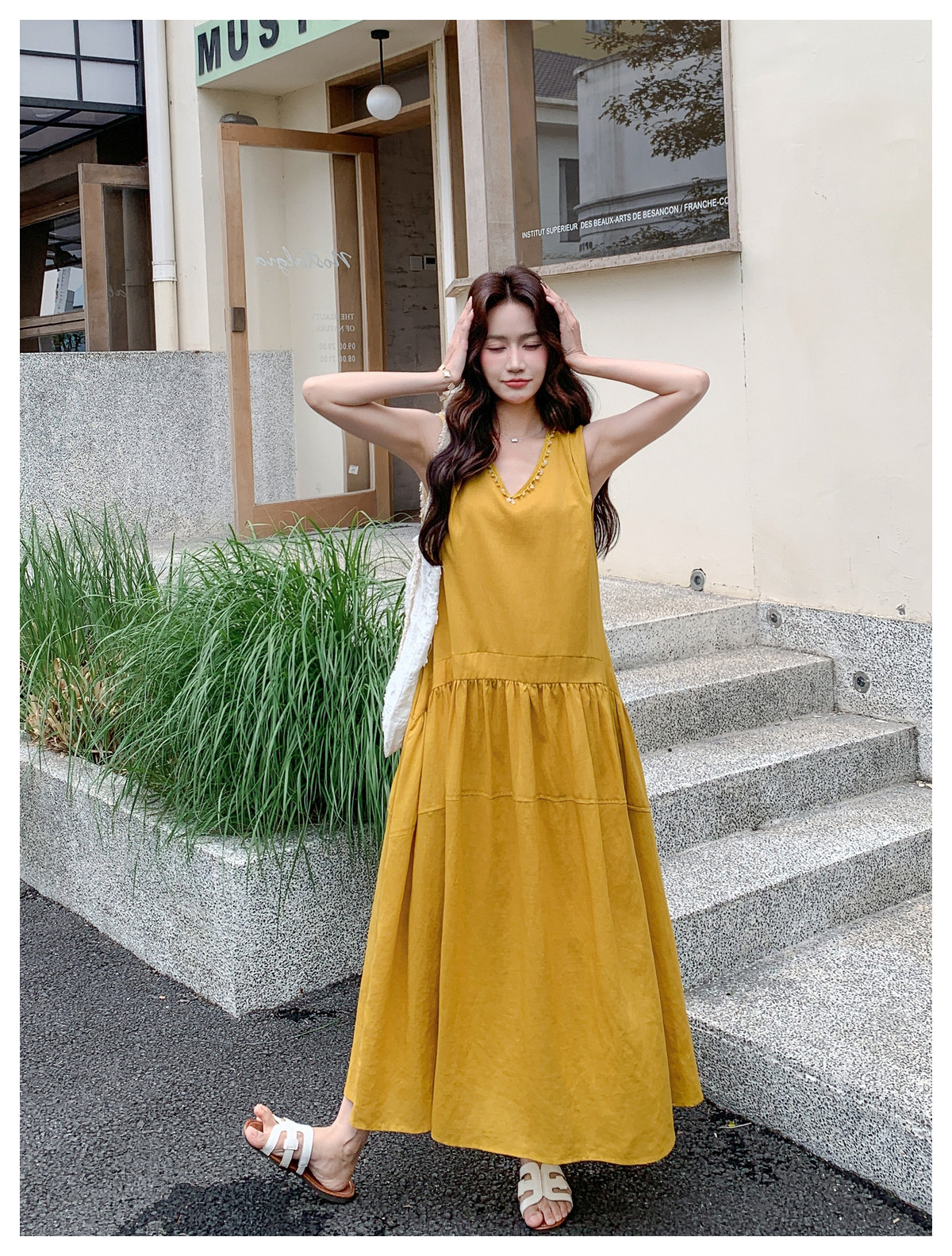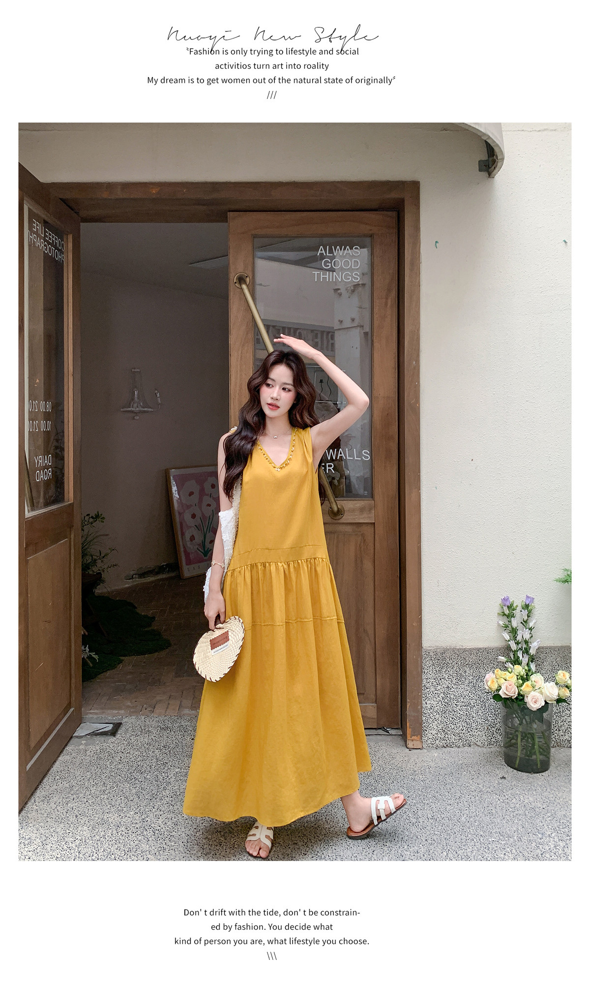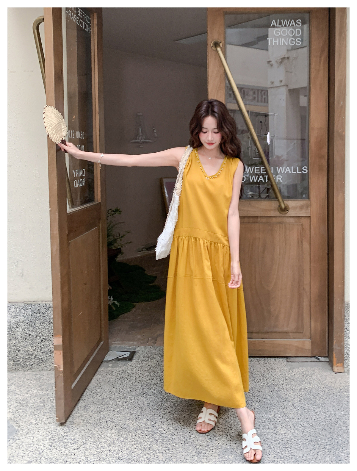 【商品名】【ワンピース】Vネック ノースリーブ ワンピース レディース 夏 ロング丈 ゆったり 体型カバー 抜け感 大人可愛い【JZシリーズ】
