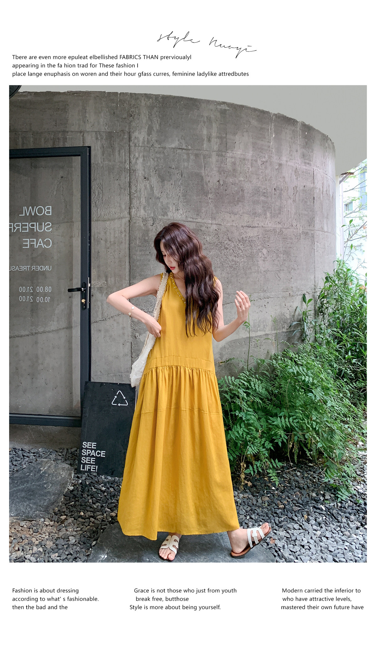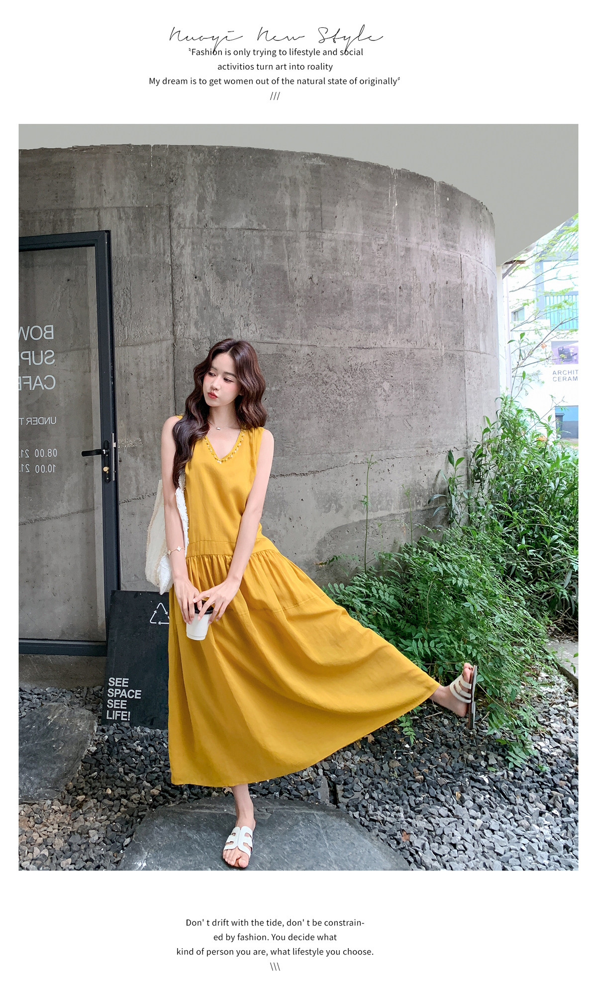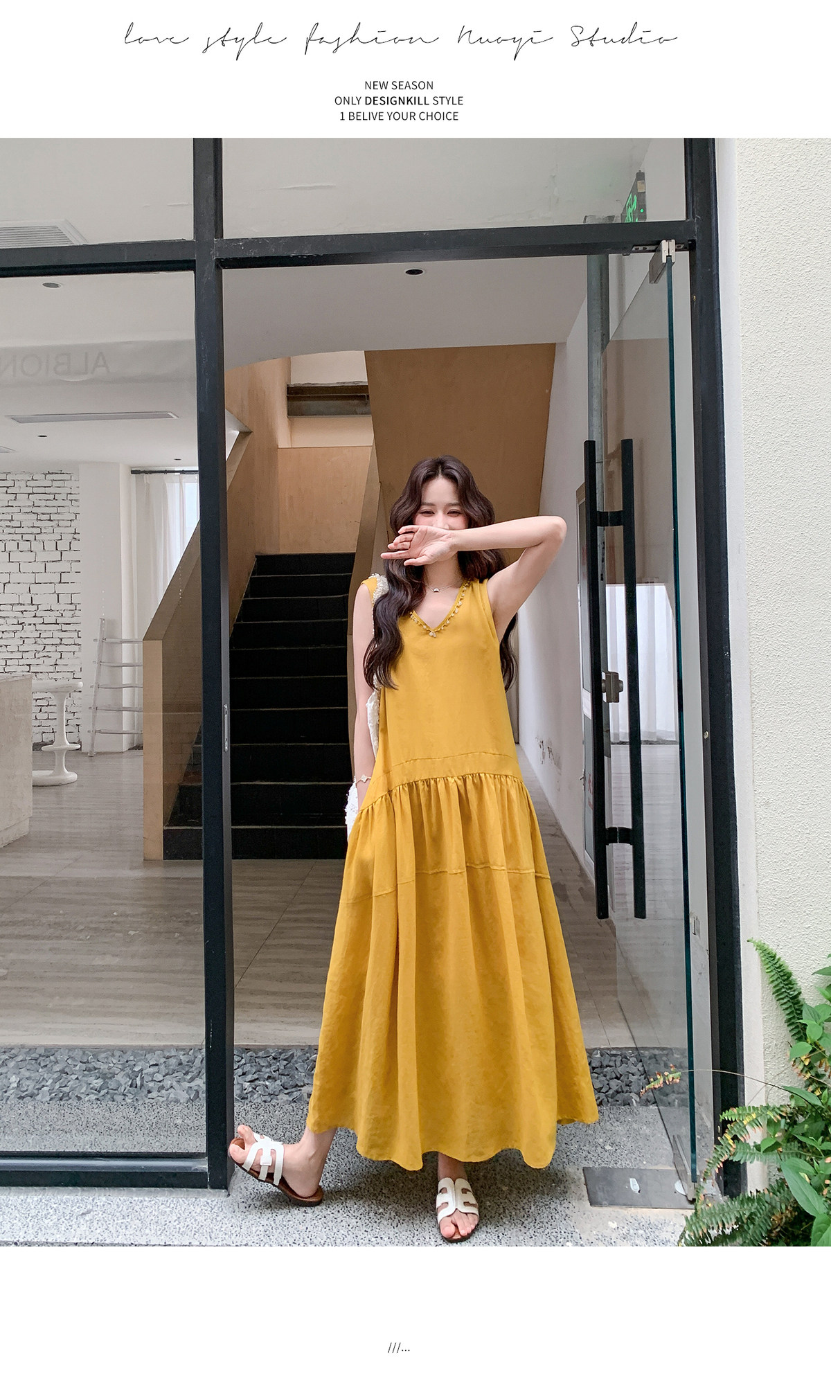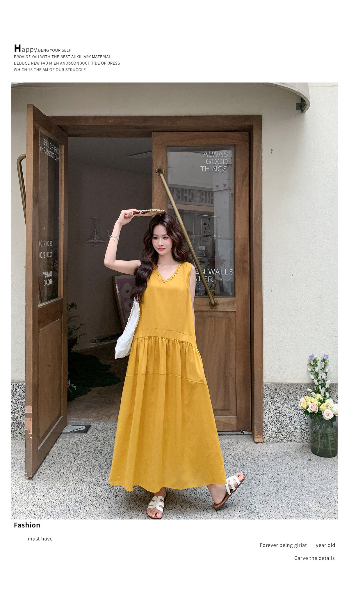 【商品名】【ワンピース】Vネック ノースリーブ ワンピース レディース 夏 ロング丈 ゆったり 体型カバー 抜け感 大人可愛い【JZシリーズ】