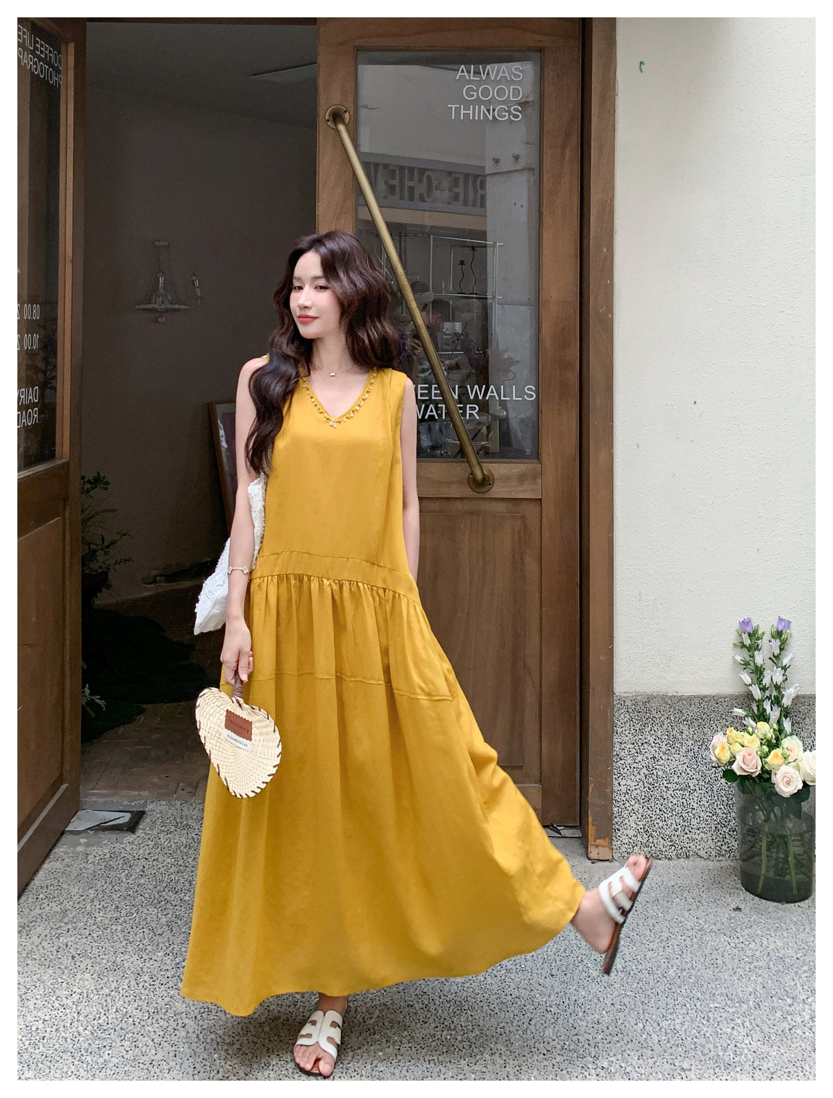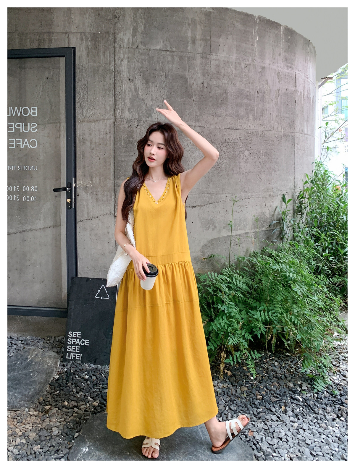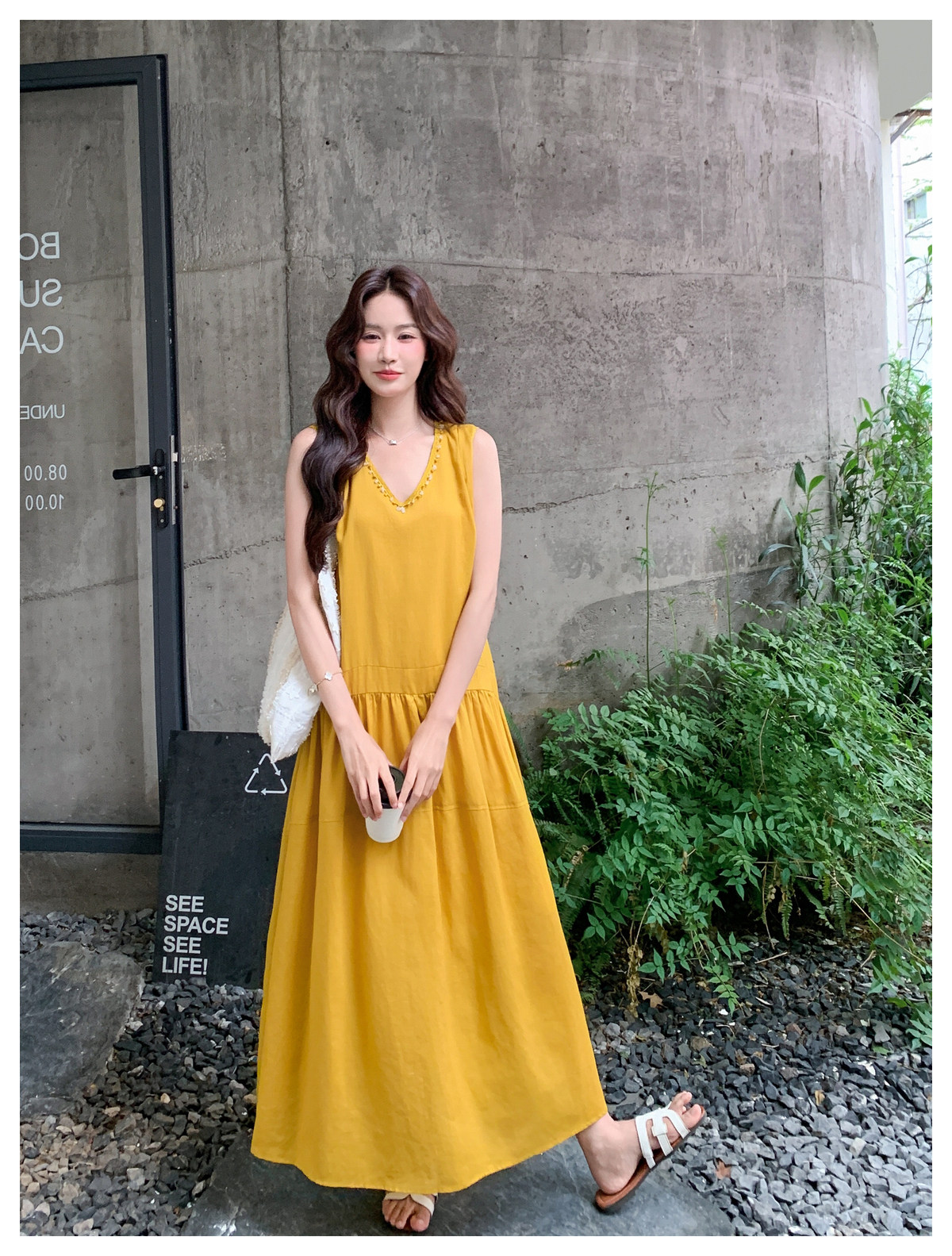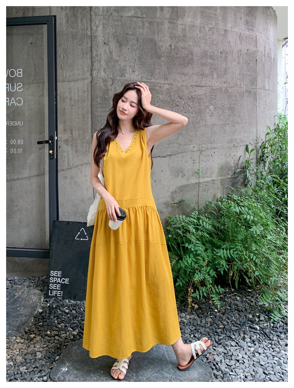 【ワンピース】Vネック ノースリーブ ワンピース レディース 夏 ロング丈 ゆったり 体型カバー 抜け感 大人可愛い【JZシリーズ】