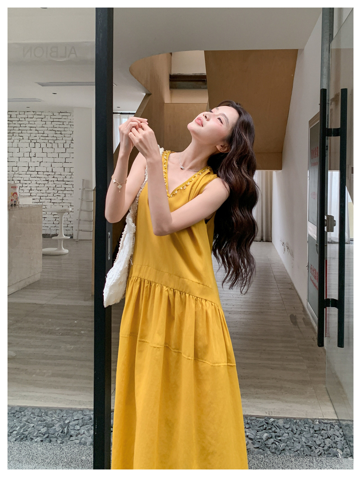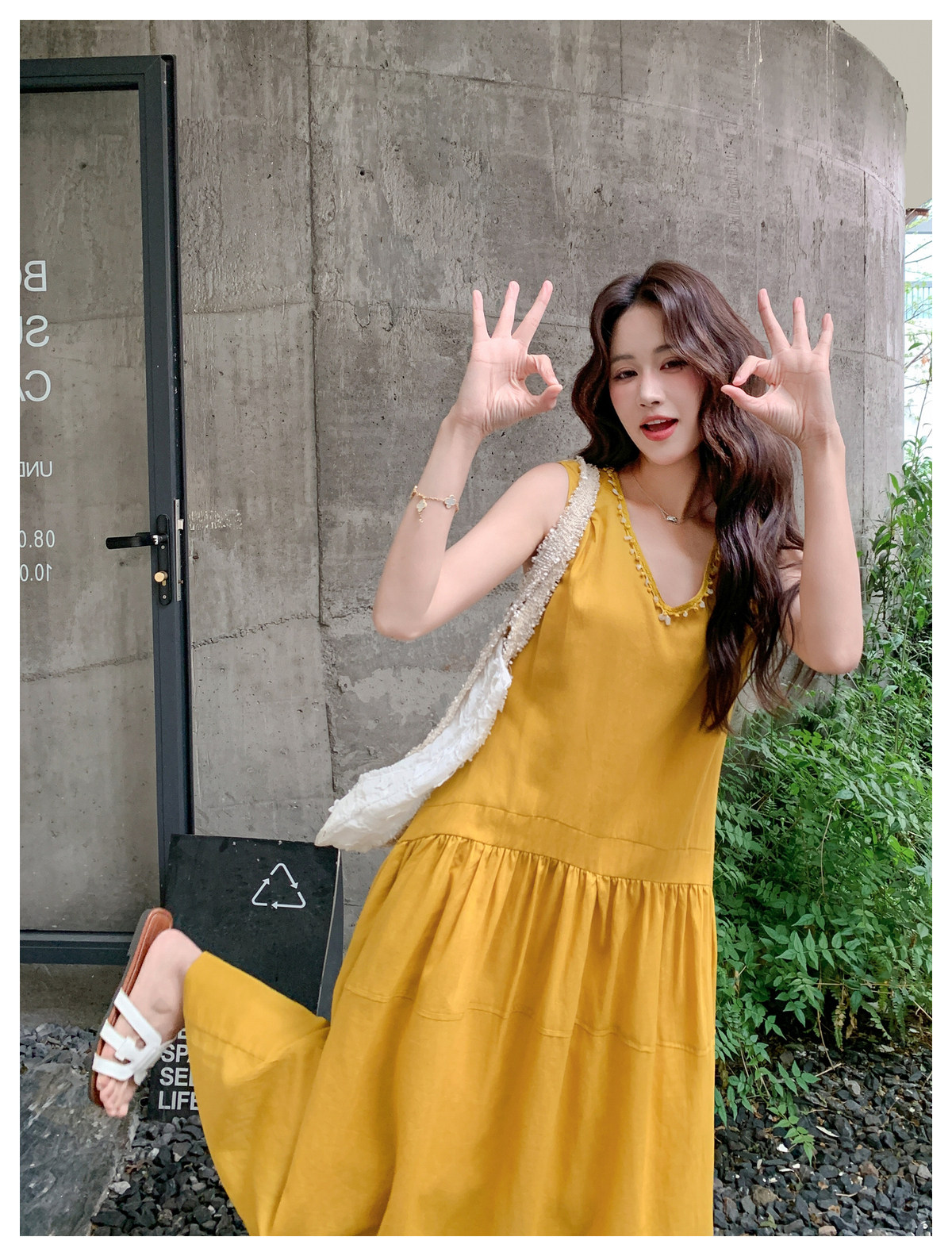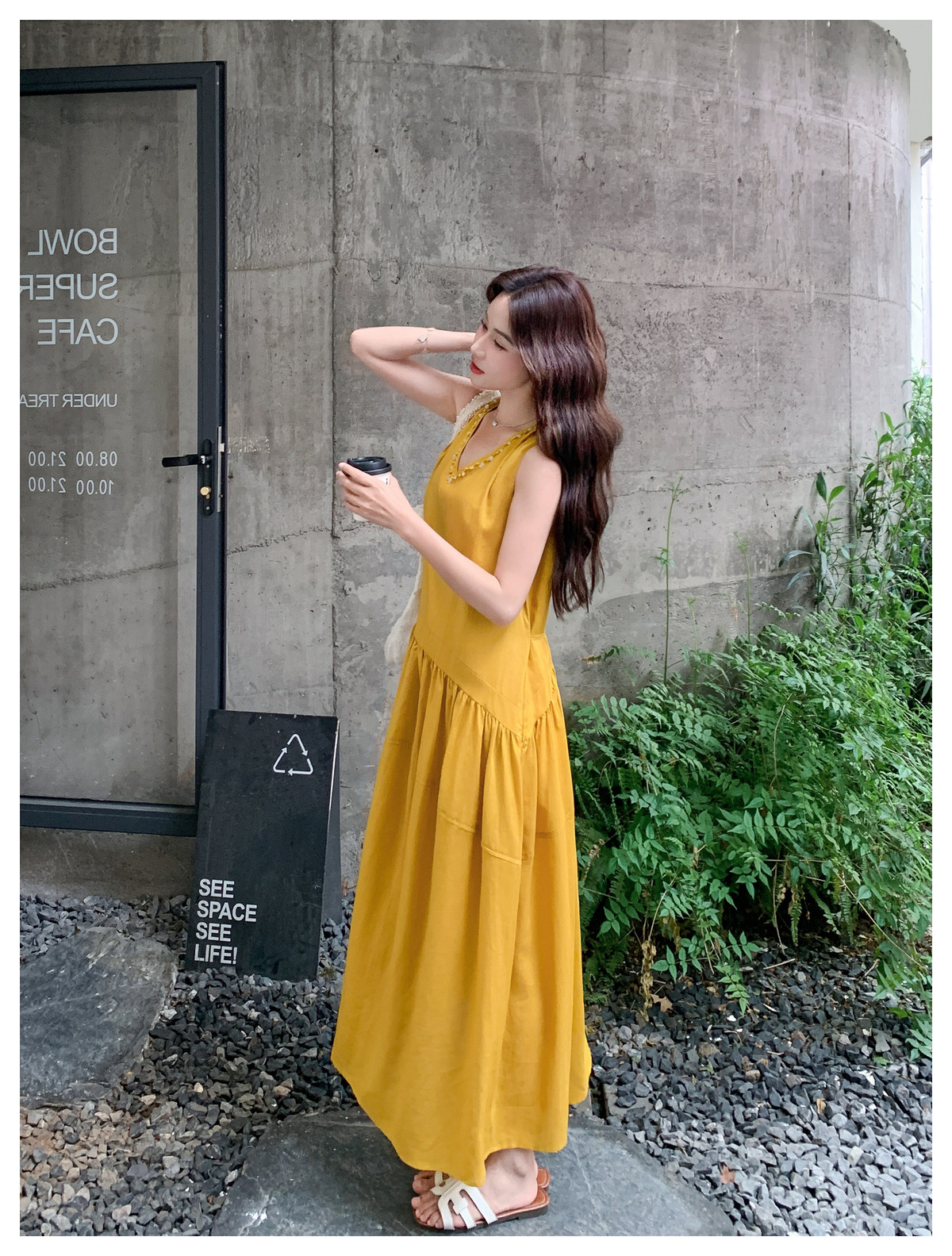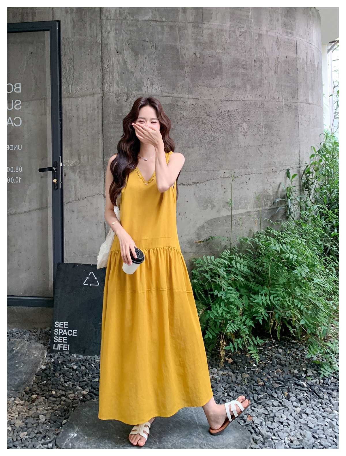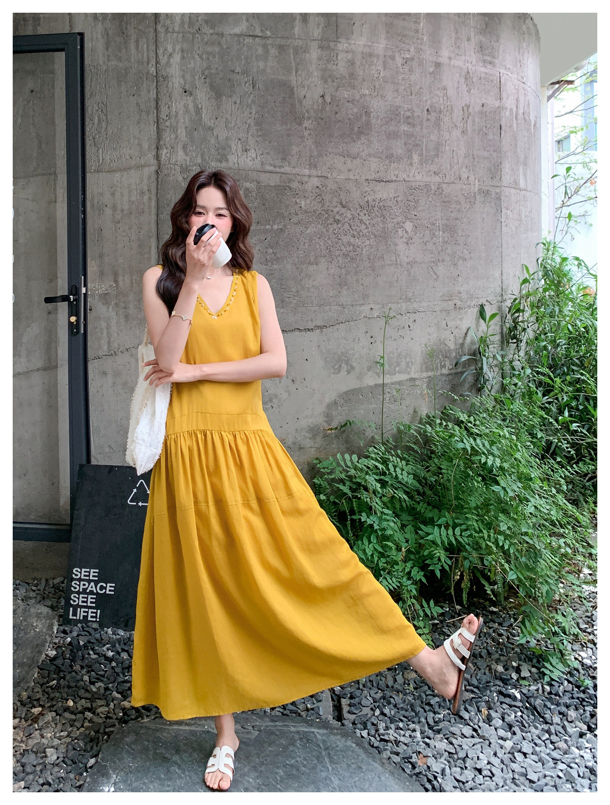 【ワンピース】Vネック ノースリーブ ワンピース レディース 夏 ロング丈 ゆったり 体型カバー 抜け感 大人可愛い【JZシリーズ】