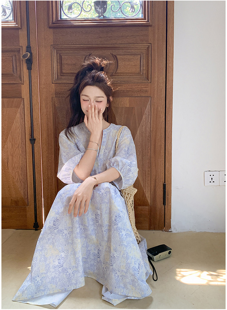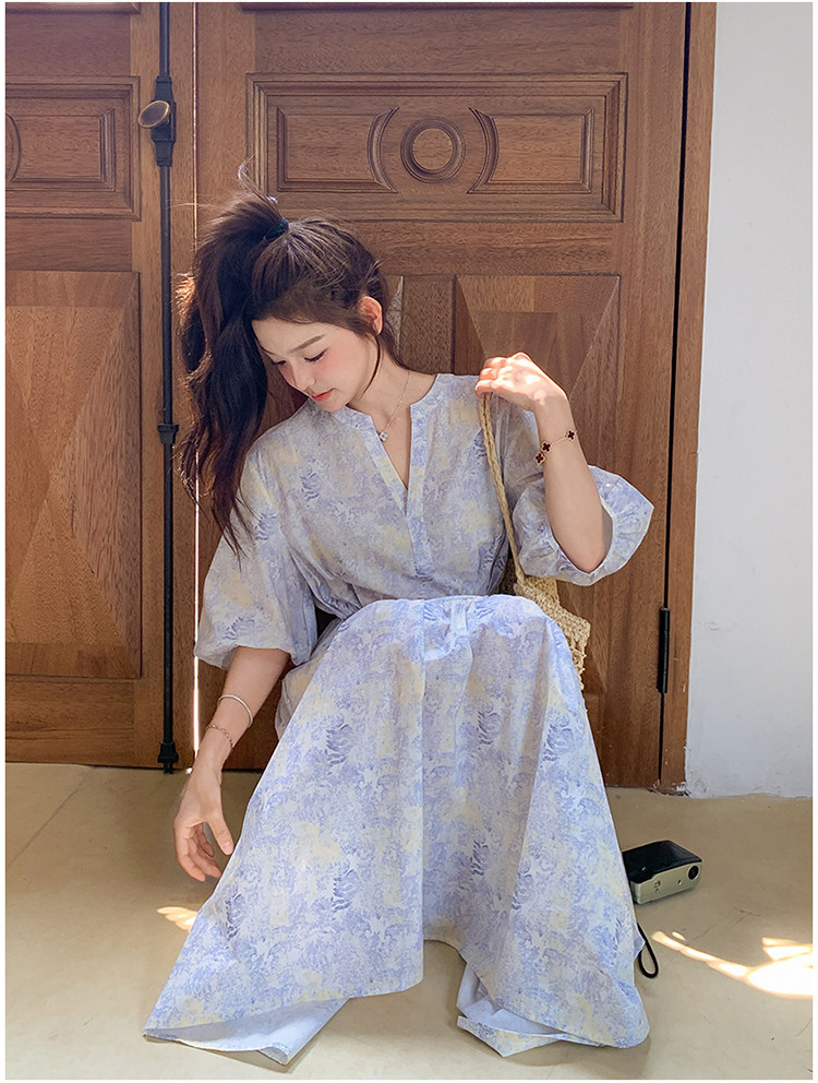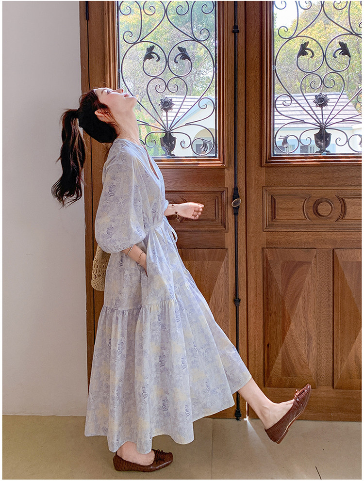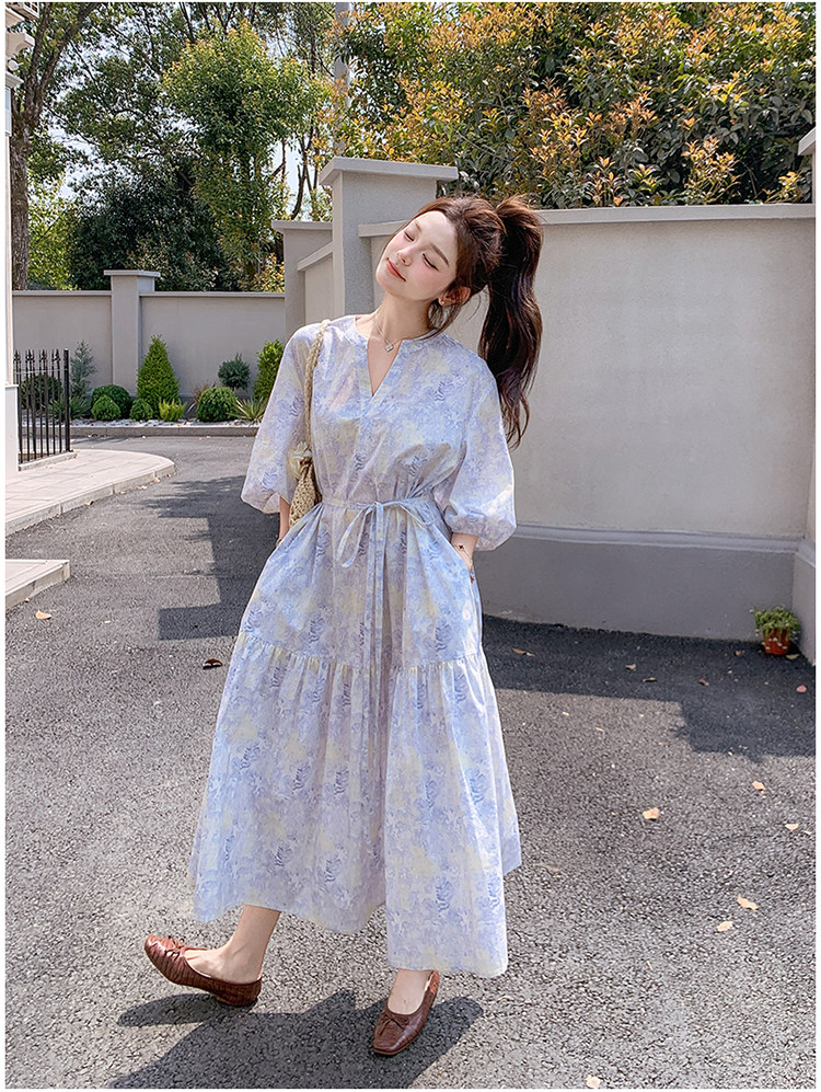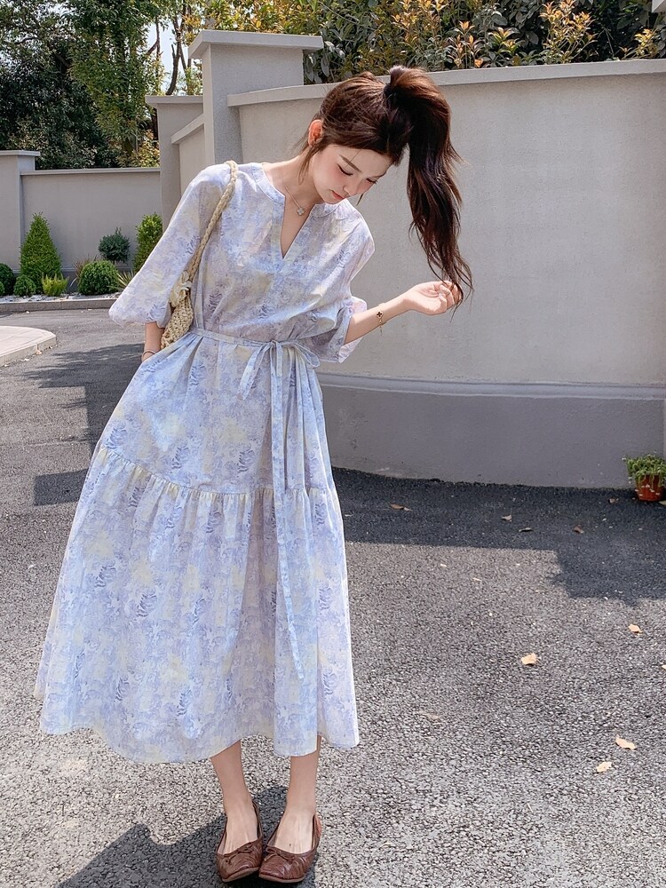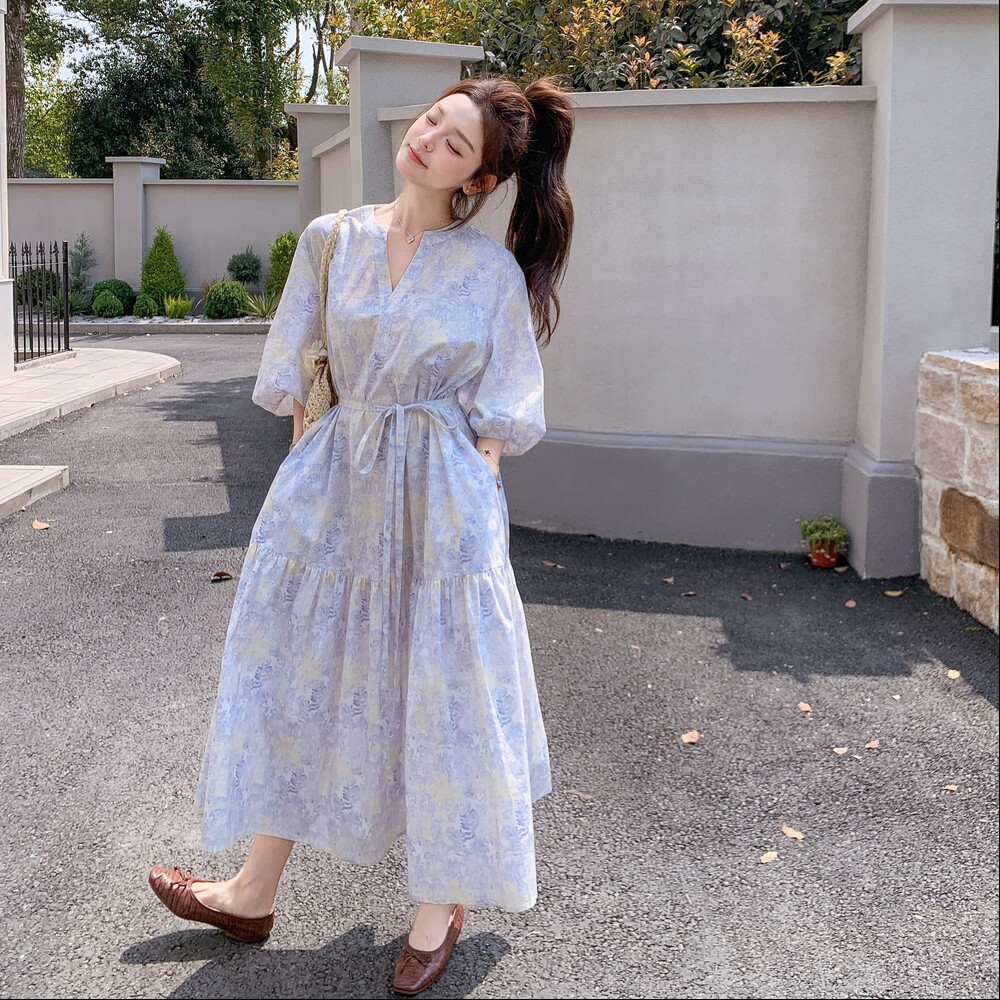 【ワンピース】着回しやすい リボン付き ウエストマーク 小花柄ワンピース 【SHシリーズ】