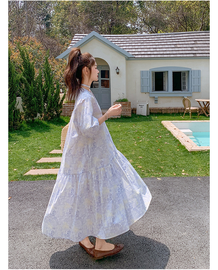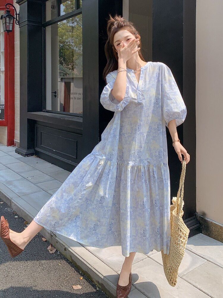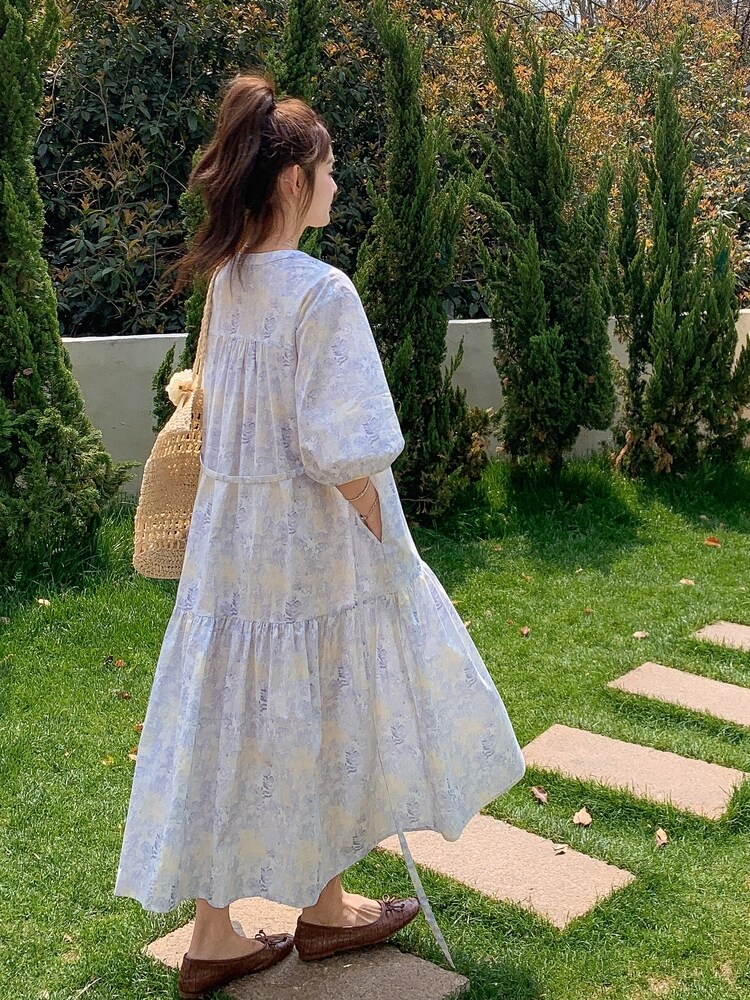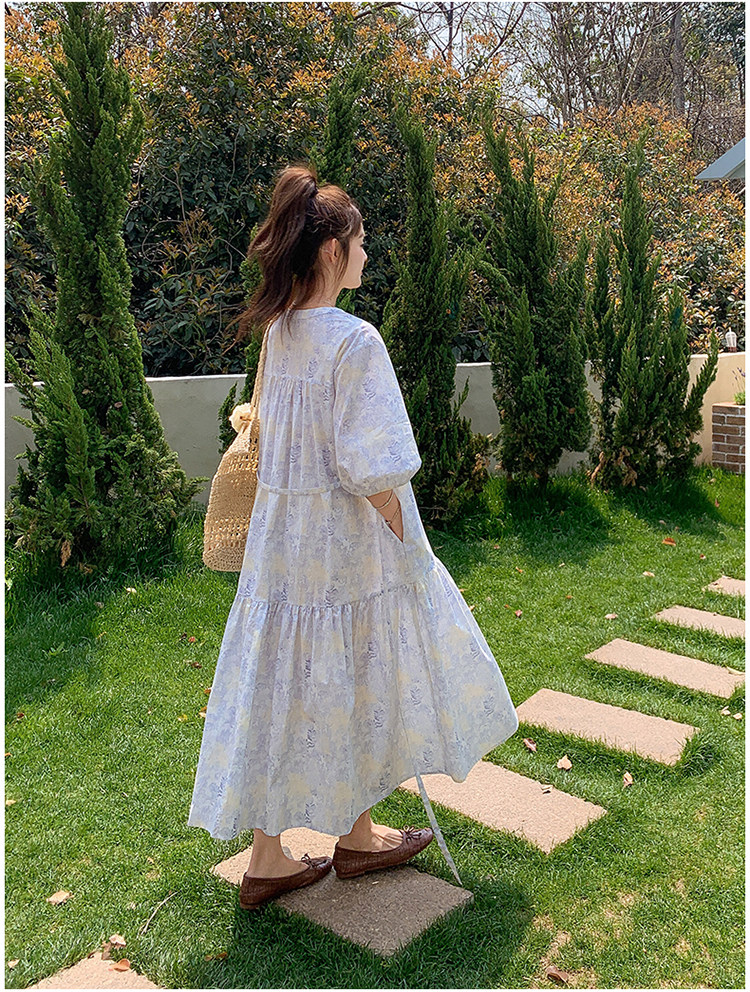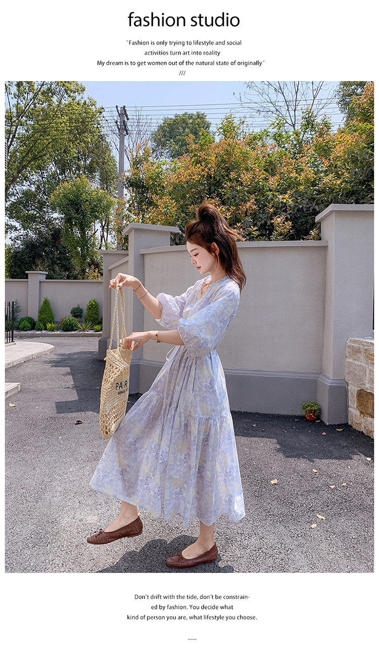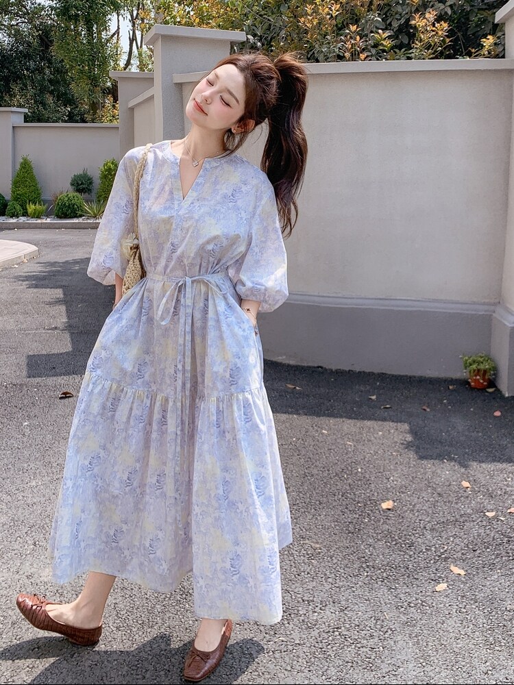 【商品名】【ワンピース】着回しやすい リボン付き ウエストマーク 小花柄ワンピース 【SHシリーズ】