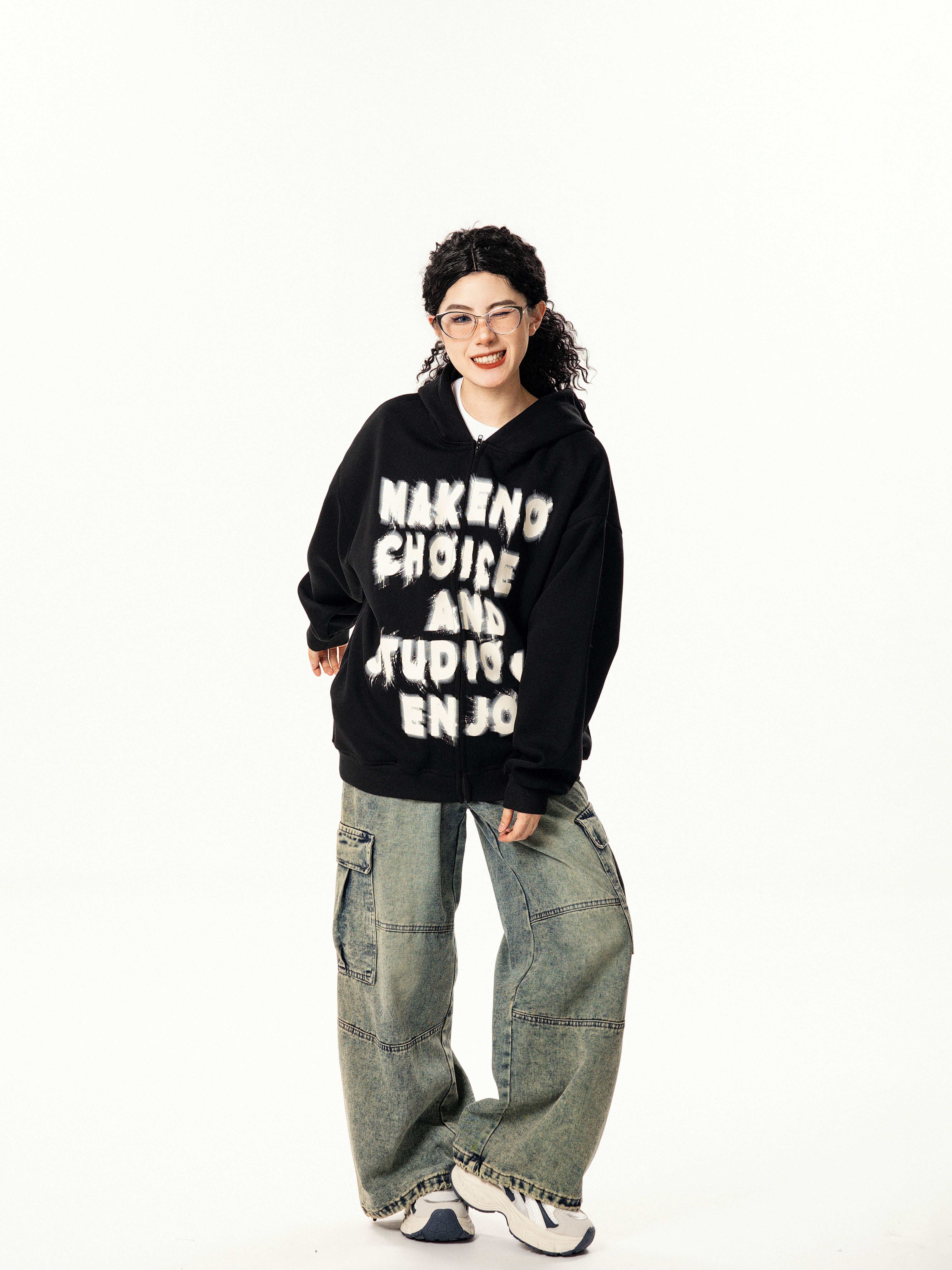 【トップス】アメリカンレトロ ジップアップ フード付きスウェット ゆったりシルエット 万能コーデ 長袖パーカー【FCシリーズ】