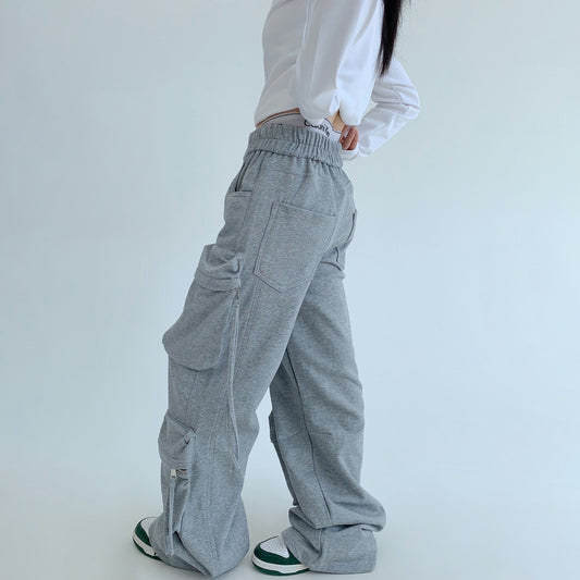 【ボトムス】トレンド感◎ ワークテイスト 多ポケットスウェットパンツ レディース 厚手デザイン【FCシリーズ】