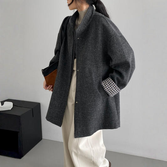 【アウター】春 秋 冬 ミディアムロング 上品 チェック配色 ディアムロング コート 【JZシリーズ】