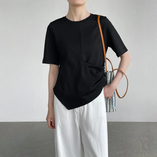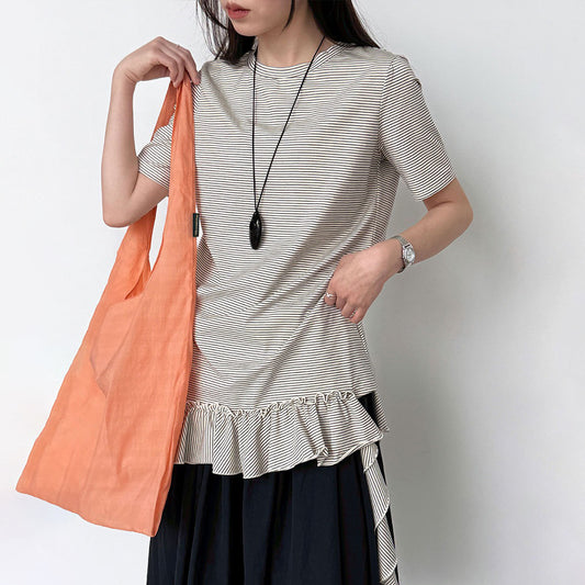 【トップス】韓国風 デザイン感 レディース 2026夏 アシンメトリー フリル裾 ゆったりTシャツ【JZシリーズ】