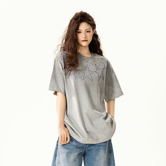 美式復古星星燙鑽T恤|寬鬆顯瘦短袖上衣女|街頭休閒百搭穿搭【FC系列】