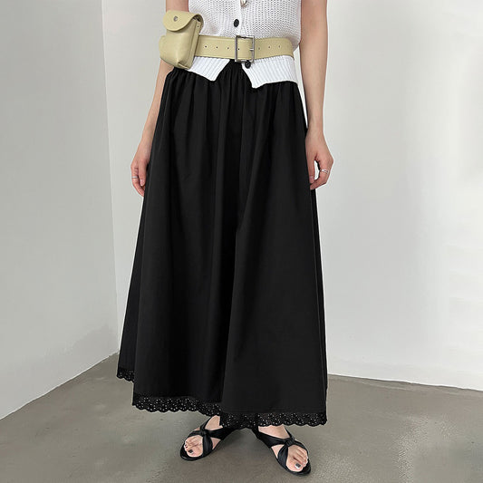 【ボトムス】韓国風 やさしい雰囲気 レースフリル ロングスカート レディース 2026夏 ハイウエスト スリム見え Aラインスカート【JZシリーズ】