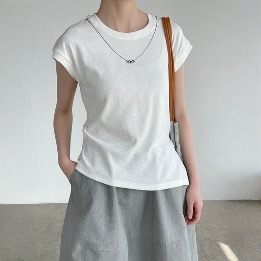 法式簡約修身短袖上衣|顯瘦包肩設計針織T恤女|氣質百搭日常穿搭【JZ系列】