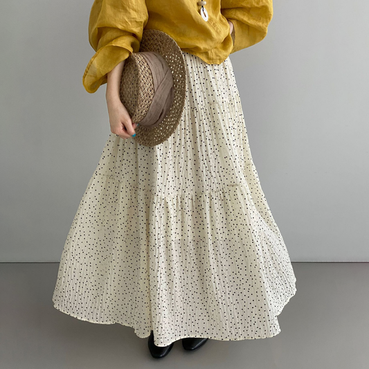 【ボトムス】ドット柄 韓国風 レトロ Aラインスカート レディース ウエストゴム ミモレ丈スカート【JZシリーズ】