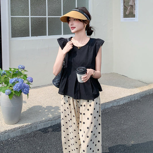 點點圖案套裝|寬鬆闊腿褲兩件套女|顯瘦休閒感日常穿搭【JZ系列】